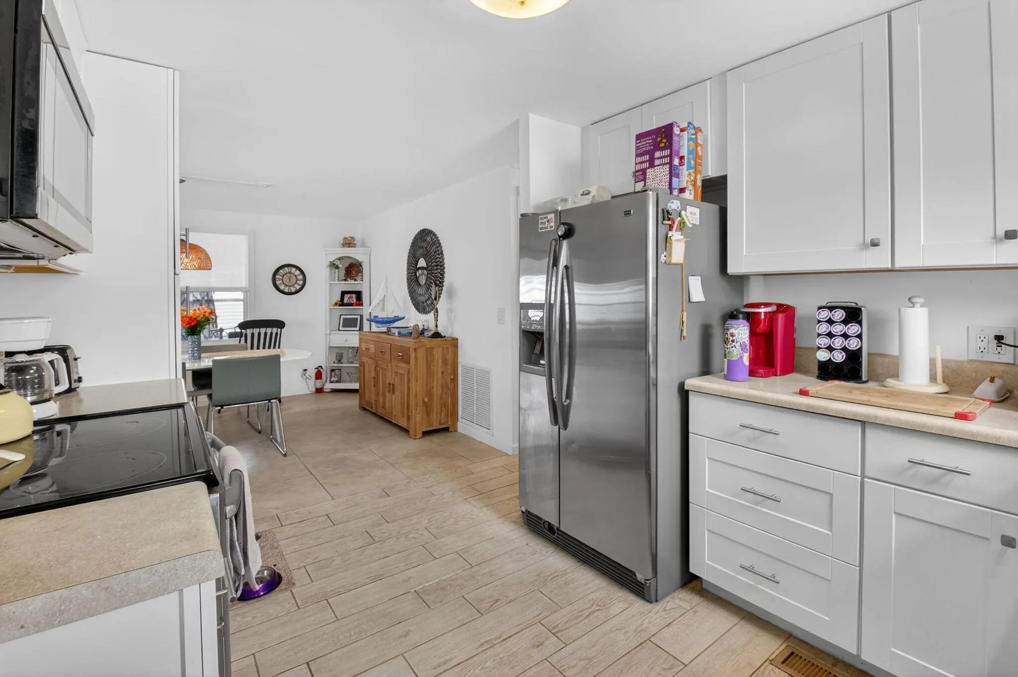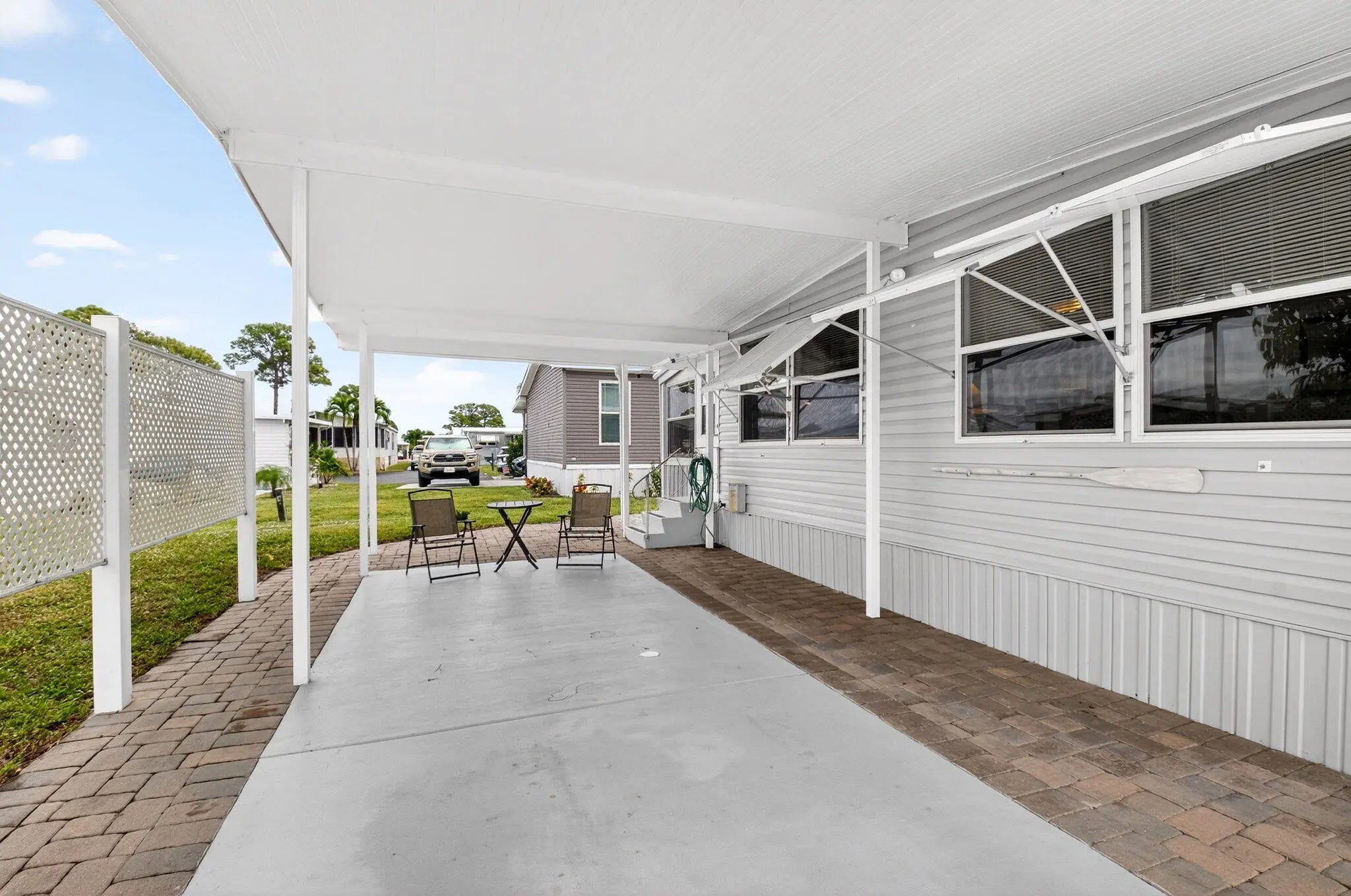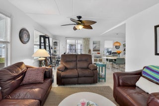 This beautifully maintained and fully furnished 2 bedroom, 2 bath home offers comfort and privacy, with NO land lease. Tucked at the end of a quiet cul-de-sac, the property enjoys abundant green space and a peaceful setting. Inside, the home features tile flooring throughout and drywall-finished walls and ceilings, creating a warm, modern atmosphere. The updated kitchen includes shaker-style cabinetry and stainless steel appliances, while both bathrooms have been tastefully renovated with tile shower in guest bath. An open floor plan connects the kitchen, dining area, and spacious living room, making the home feel bright and inviting. Additional upgrades include a newer A/C system, hot water heater, and a double roof. Both bedrooms are generously sized and furnished with king size beds.