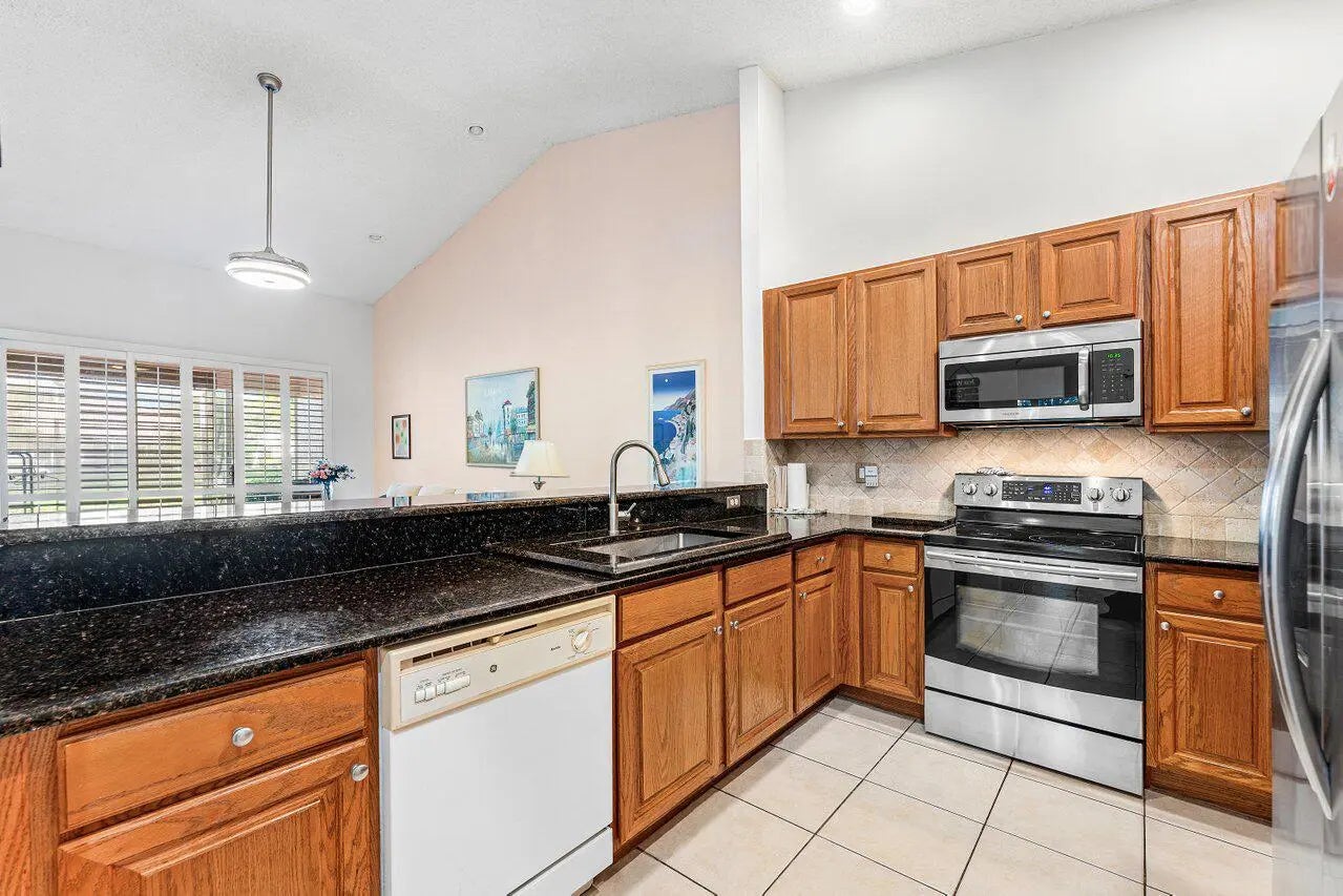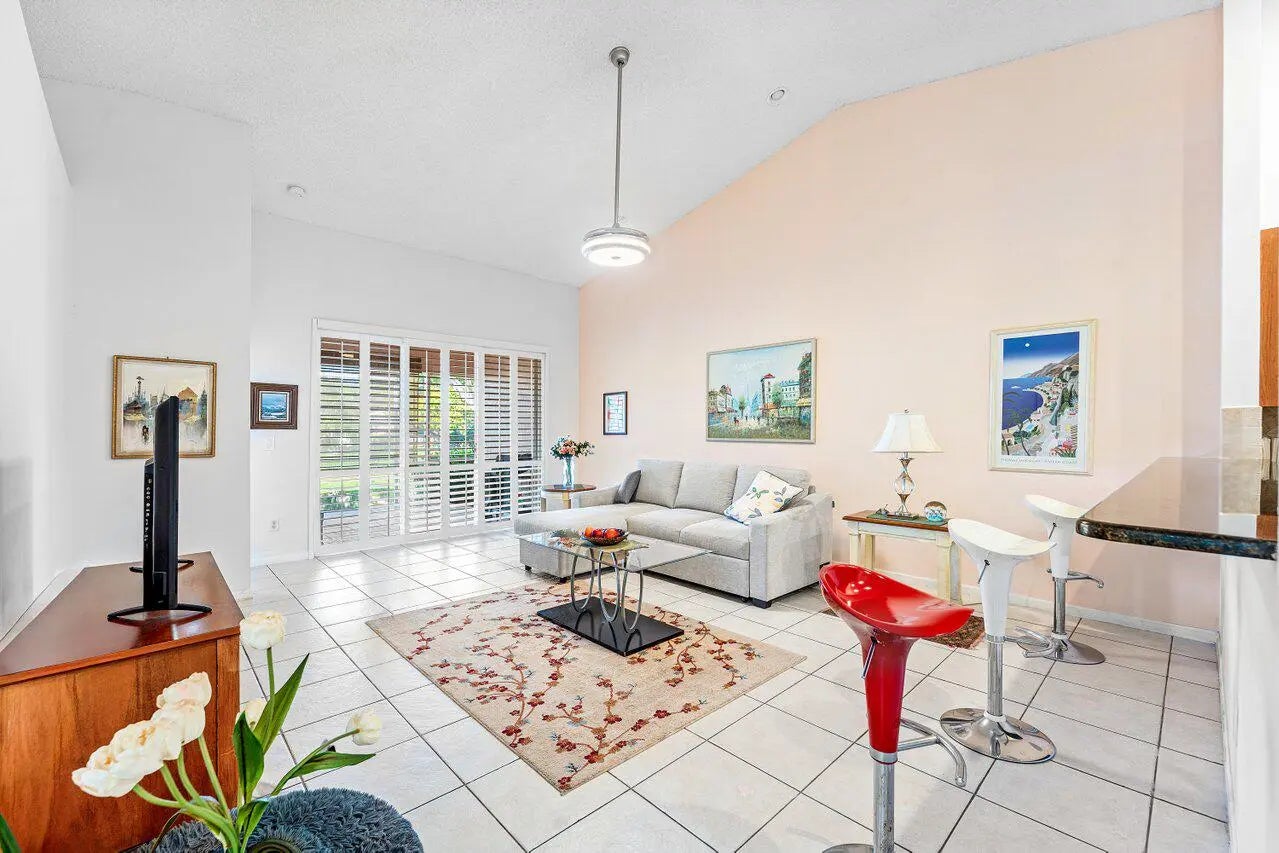 Ideally located just minutes from trendy Atlantic Avenue in Coral Trace, this rarely available and most sought-after Periwinkle model offers the perfect blend of comfort, style, and Florida living! Enjoy a gorgeous lake view, soaring cathedral ceilings, and an open-concept layout with the kitchen flowing seamlessly into the family room and dining area--ideal for everyday living and entertaining. Step outside to an extended screened-in patio with a tiled seating area, perfect for morning coffee or relaxing sunset lake views. Additional highlights include an attached garage and plenty of guest parking. Low HOA fees include landscaping, common area maintenance, cable, internet, trash removal, and full access to community amenities including a pool and spa, tennis courts, fitness center,
