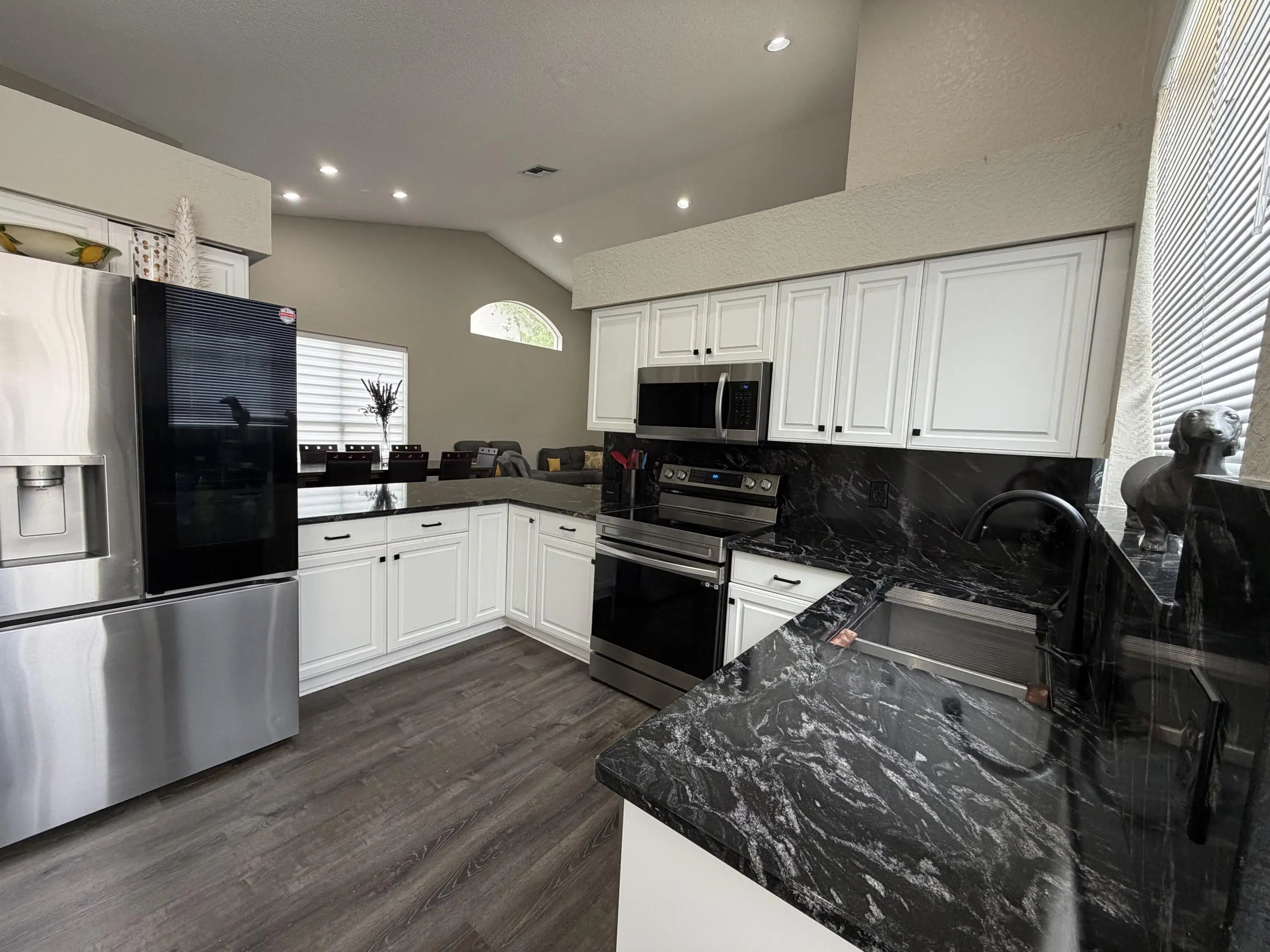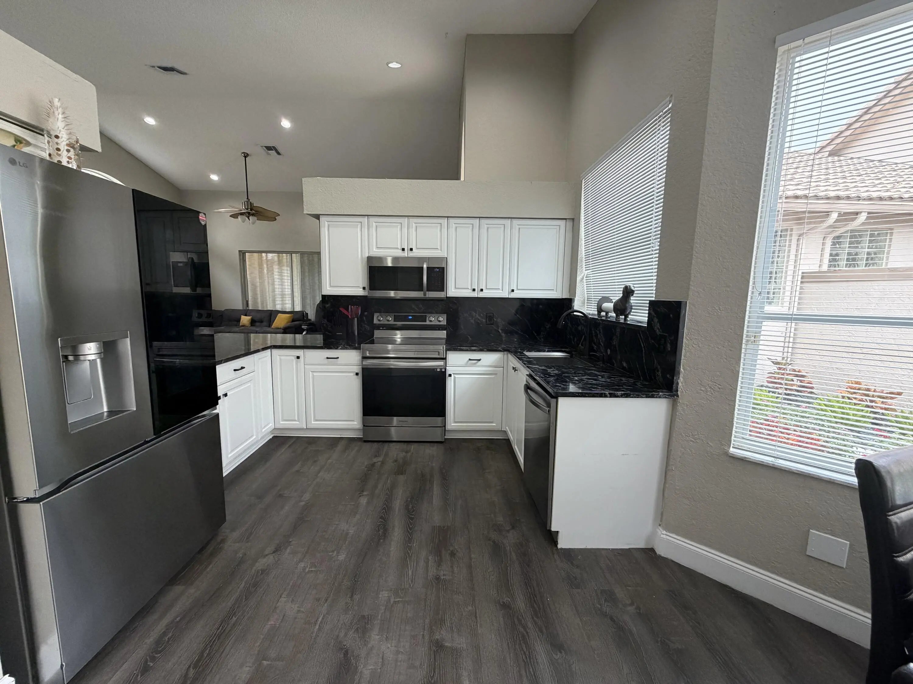 Aberdeen Country Club. Move in ready. This recently remodeled Villa has high ceilings & offers a 3BR-2BA triple split floor plan with an large enclosed Lanai with AC.. Eat-in kitchen that opens to a large living dining area. Newer Granite counter tops, backsplash and sink. The Main bedroom is also good sized with dual closet dual sinks and a shower. Seller installed laminate in all areas except the bathrooms which were recently tiled. This community is man gated with a community pool. Aberdeen is a mandatory membership starting at $90,500 for social with annuals around $15,265. Buyer to verify all info/See. Beautiful18-hole golf course, Tennis courts, pickelball, boce, an amazing gym and resort type pool. There are 2 restaurants and a bar. **Realtor selling own home