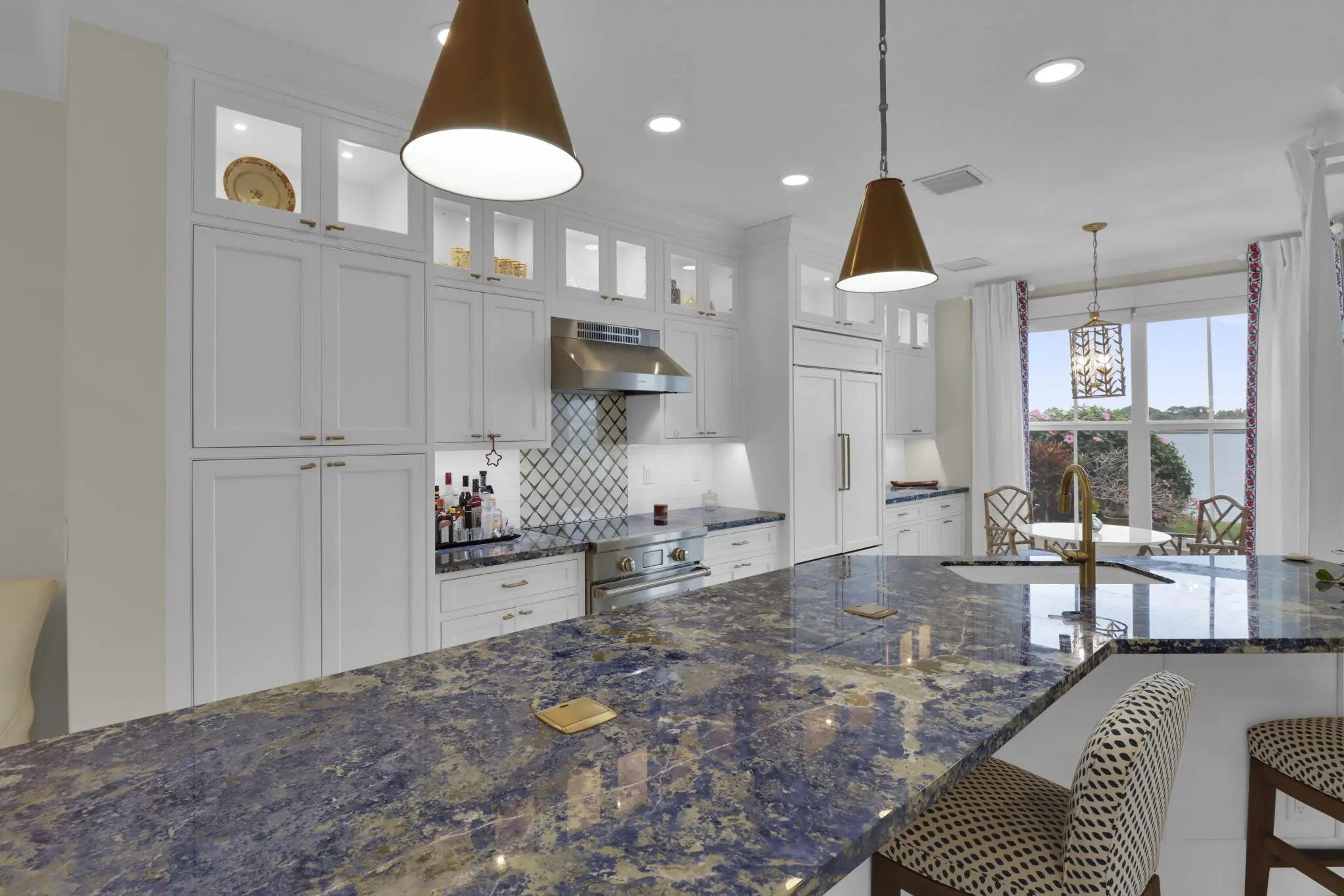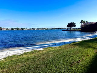 True paradise and rare waterfront-lifestyle opportunity in a private intracoastal community, featuring wide waterway views and a private community beach just steps from your expansive 25' x 17' backyard patio. Inside, a newly remodeled open-concept kitchen showcases Greenfield high-end custom cabinetry, striking quartzite countertops, and a massive custom island perfect for entertaining, along with a Sub-Zero refrigerator, Wolf range, Bosch hood, wine refrigerator, and a beautifully finished downstairs bath. Italian porcelain tile flows throughout the first floor, while premium hardwood flooring highlights every upstairs bedroom. Crown molding, high-volume ceilings, and a luxurious primary suite with vaulted ceilings, sitting area, and custom walk-in closet complete the interior!