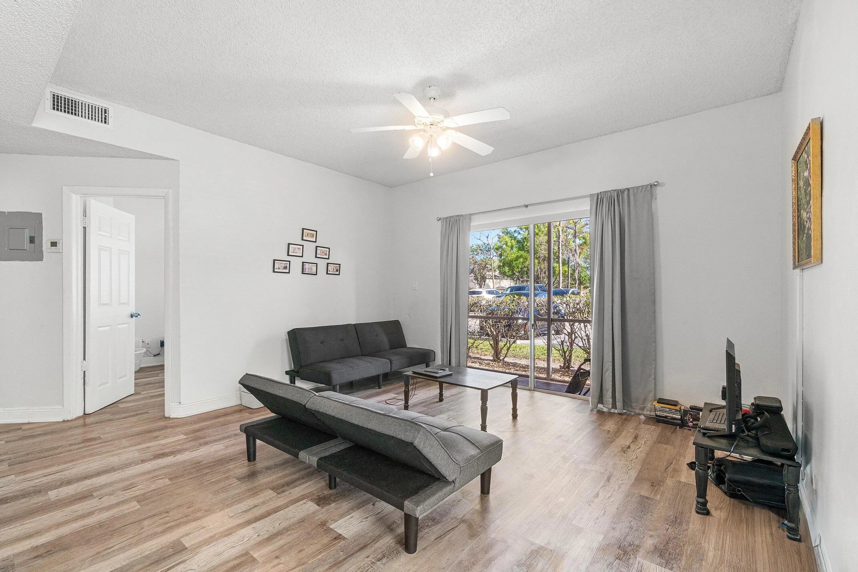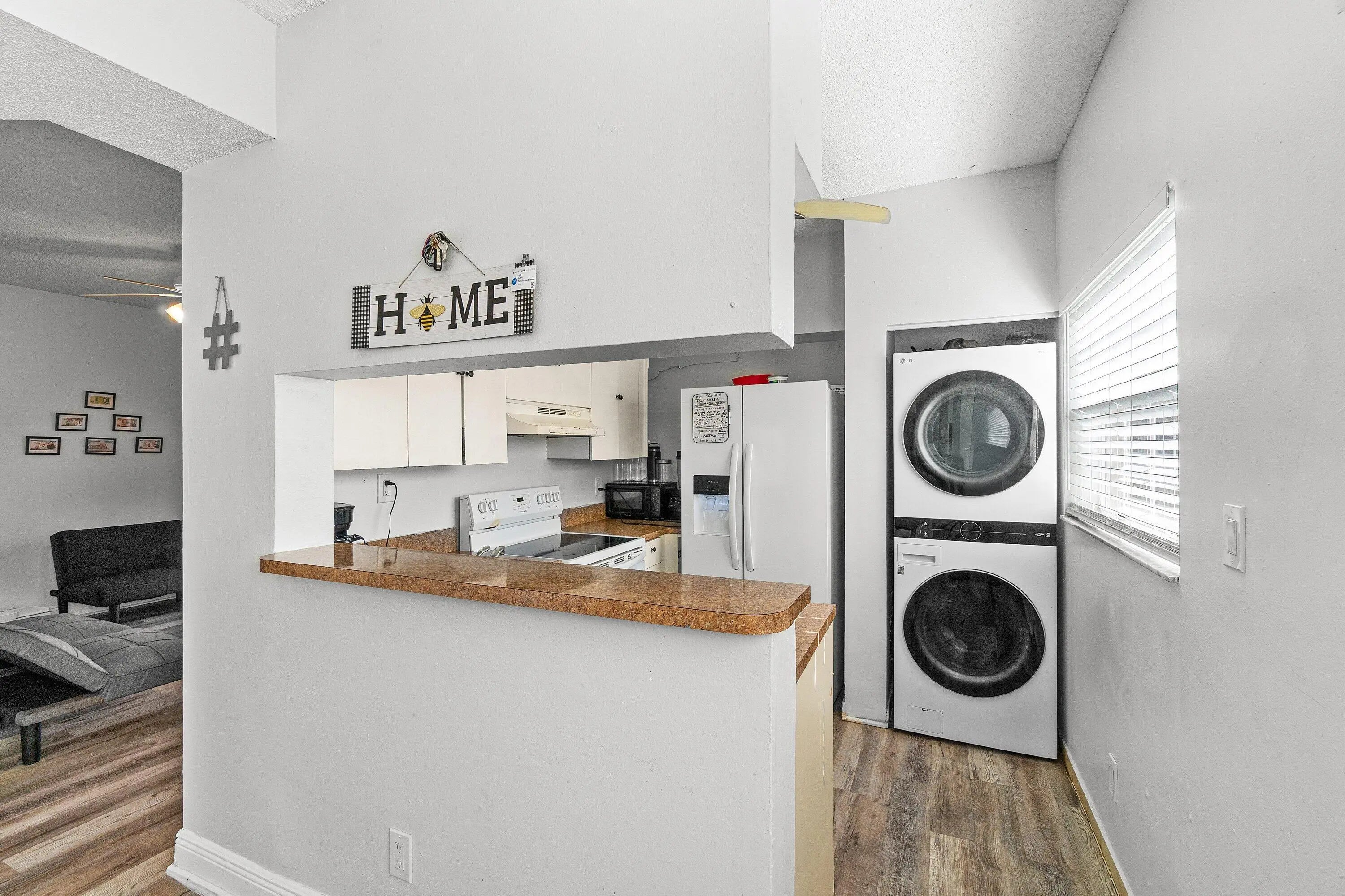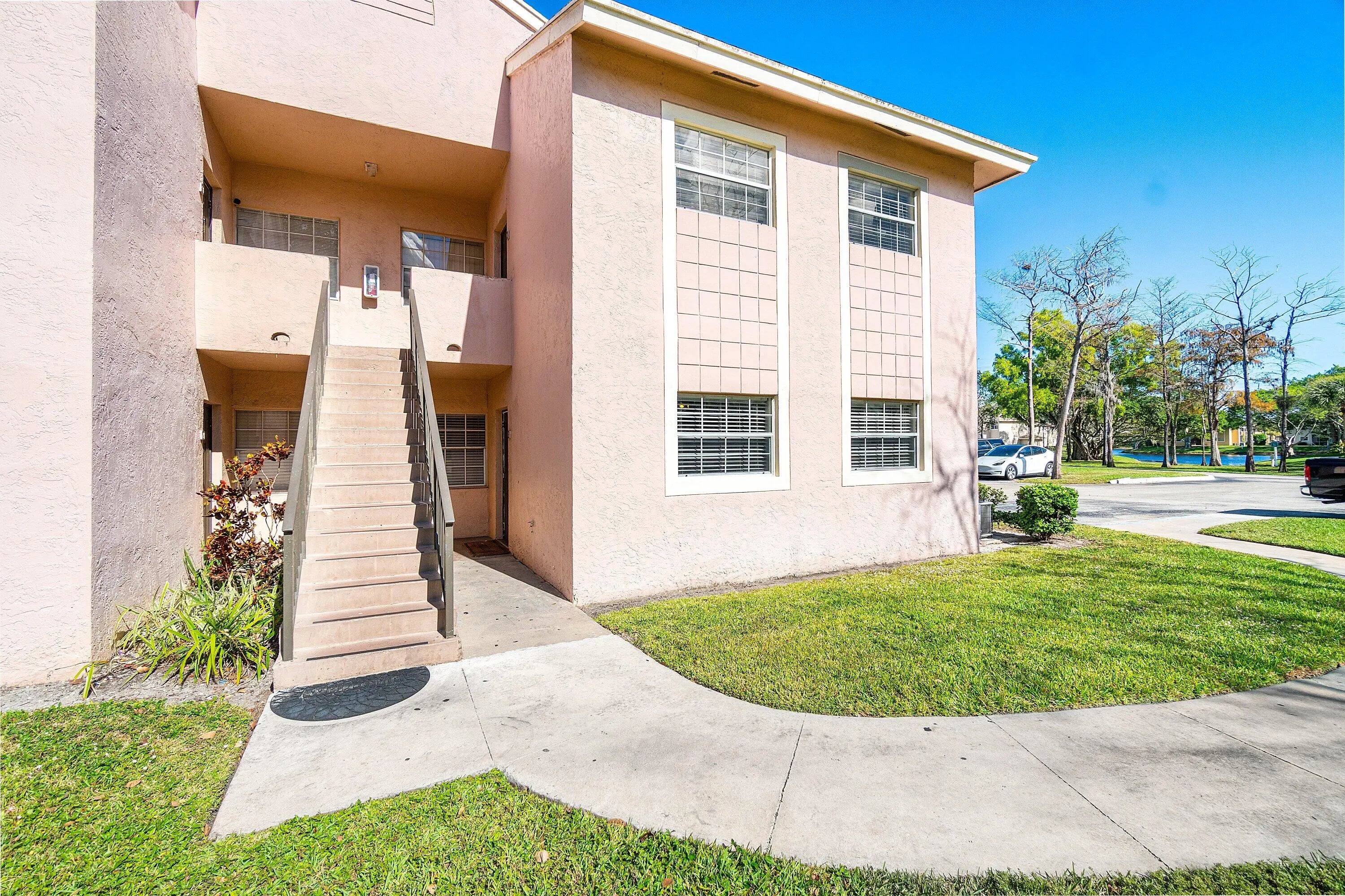 This spacious 3 bedroom 2 bathroom first-floor corner apartment offers carefree Florida living with a bright, open layout and resort-style amenities in the desirable Waters Edge community of Deerfield Beach. This investor and pet-friendly residence features viynl flooring throughout and abundant natural light, creating a comfortable and inviting atmosphere. The home includes two assigned parking spaces conveniently located just outside the screened patio door. Newer in unit washer and dryer, updated bathrooms, and a generous primary suite with a large walk-in closet. The screened patio provides the perfect spot to relax or entertain. Water's Edge is a gated, pet-friendly, all-ages community offering exceptional amenities, including two swimming pools,