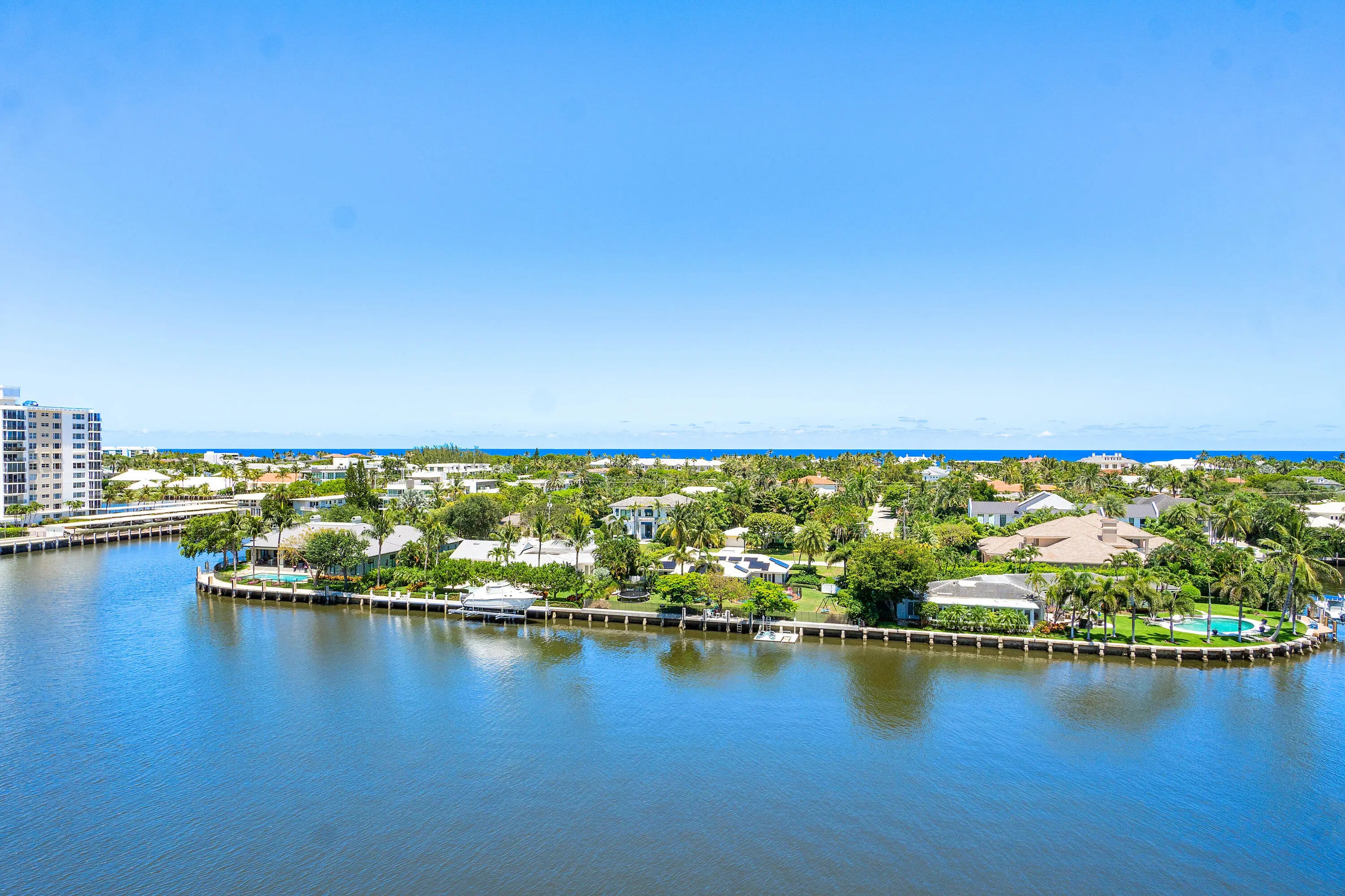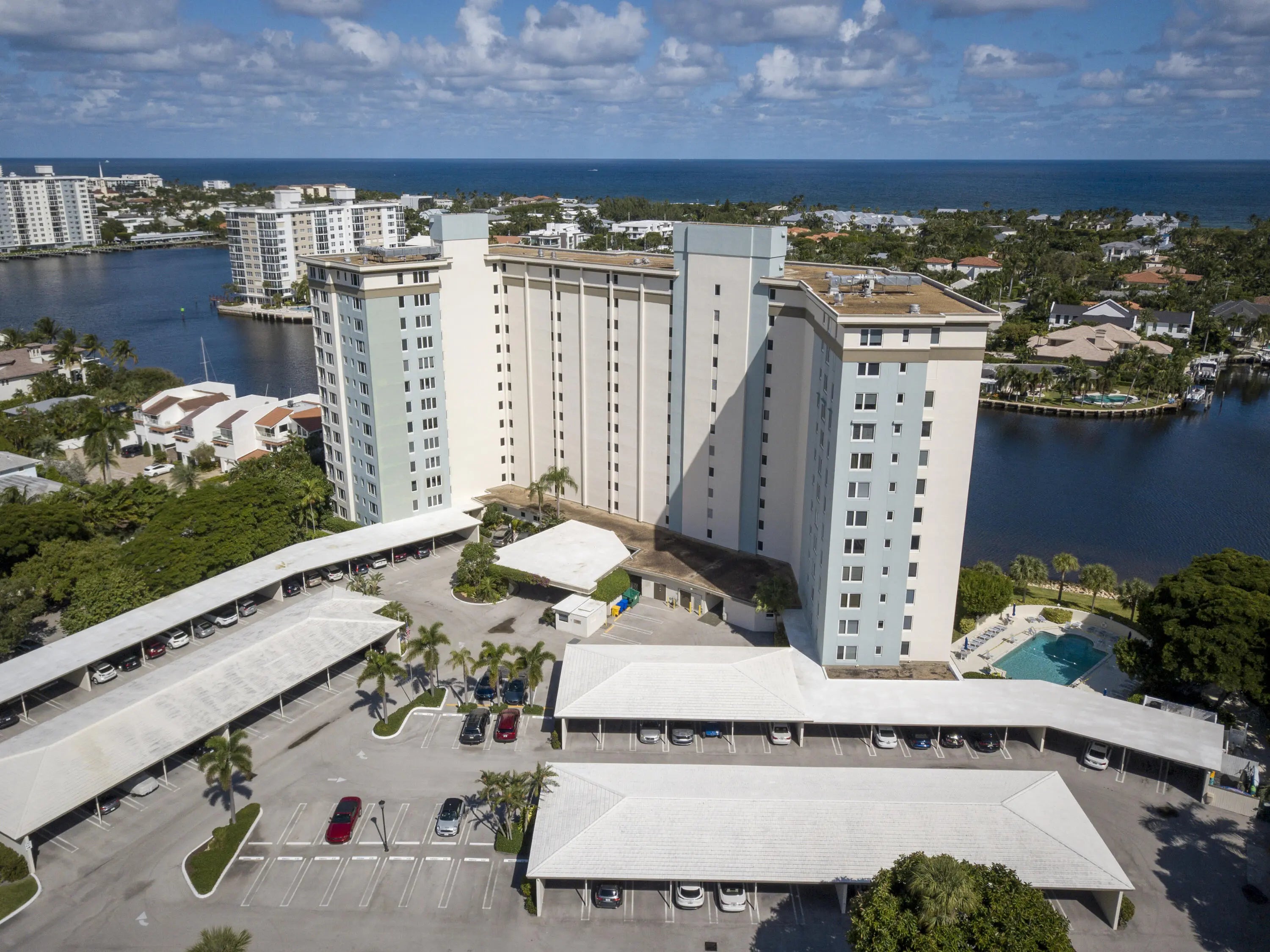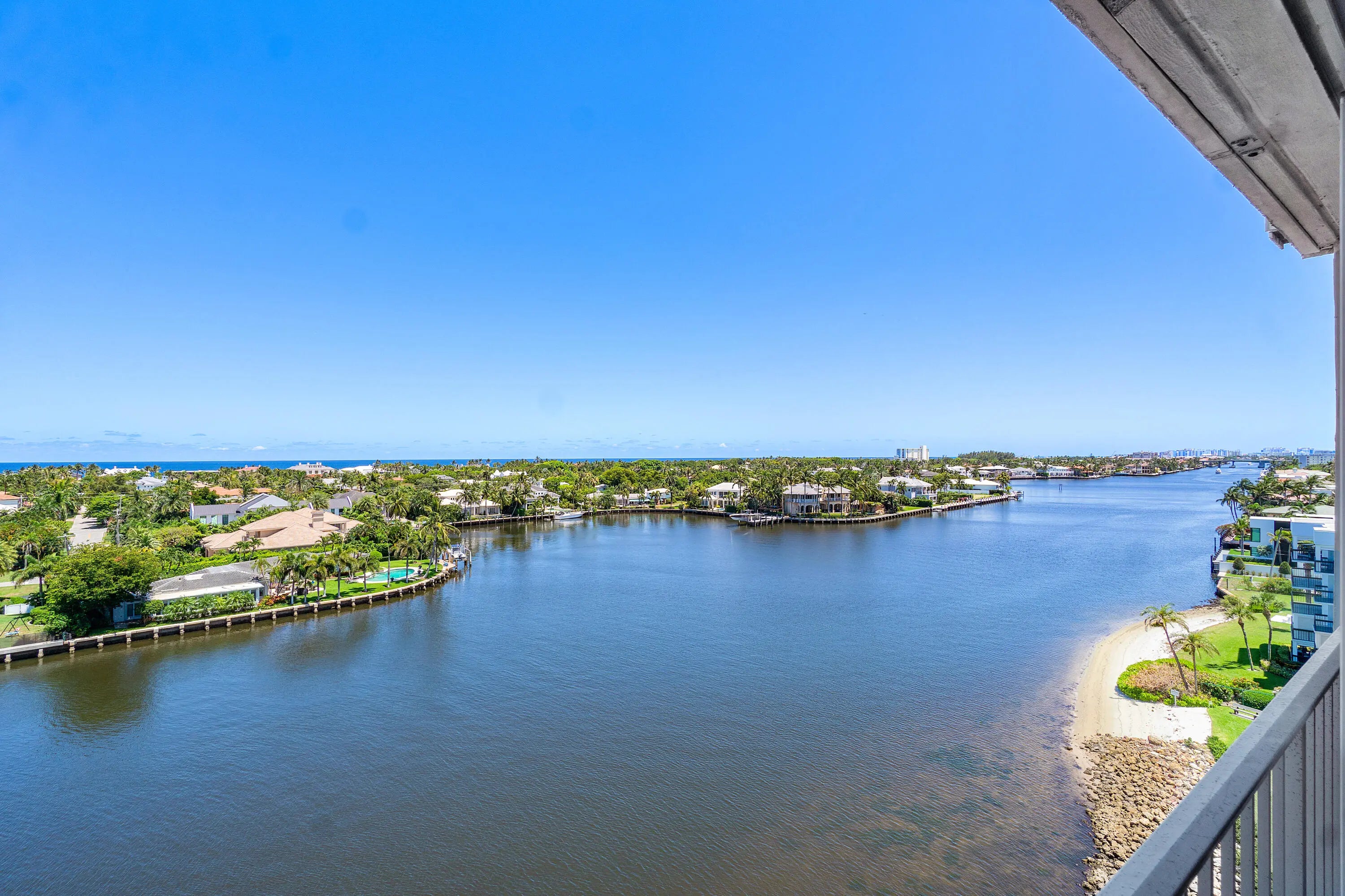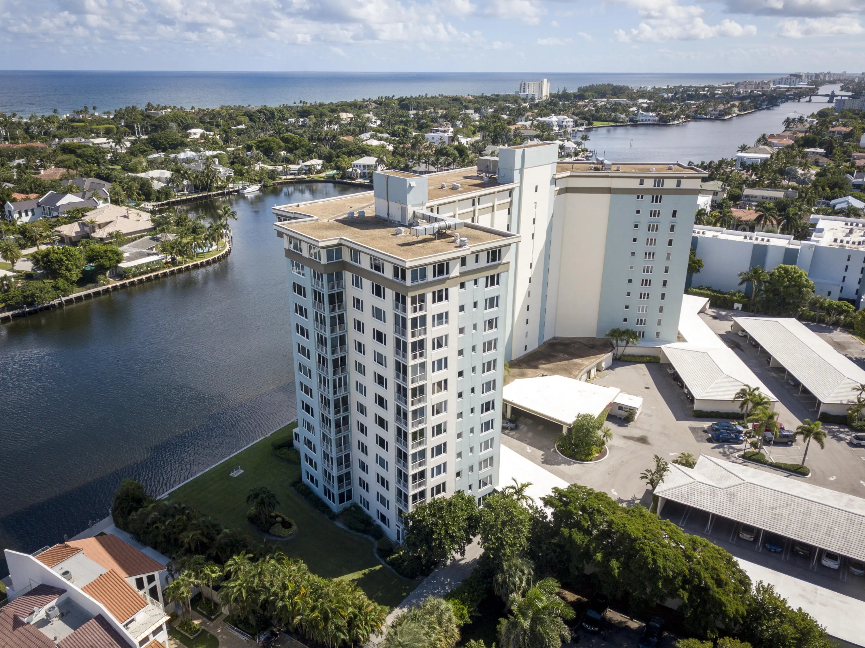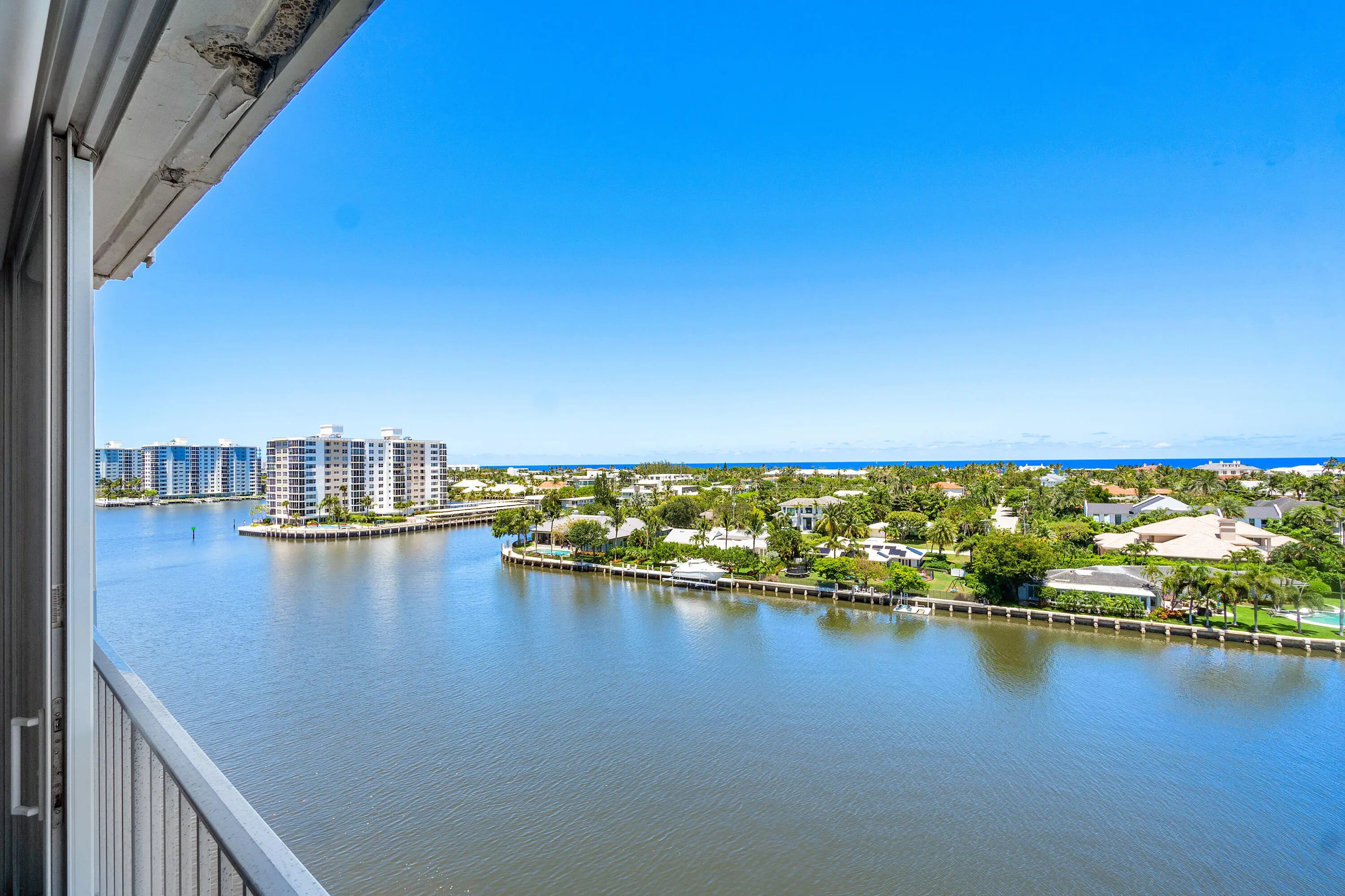Spectacular Ocean and ICW views from this 2/2, renovated 8th floor unit. The remodeled kitchen features custom cabinetry, granite counters, and premium appliances. Spacious living and dining areas. Ample storage space. The master bath is renovated with deluxe tub and glass doors. A carport space is assigned. Short distance (.64 miles) to Atlantic Ave. Short distance (1.2 miles) to the beach. 24/7 security. Impact windows. Application fee is $150 and deposit is a $500 refundable move-in deposit. Financing requires 20% down. No rentals allowed. No Pets. No Washer and Dryer in unit. Common laundry room on each floor. Additional 161 sq. ft. of the enclosed porch area is included in the living sq. ft. All measurements are approximate and subject to error, omission, and changes without notice.