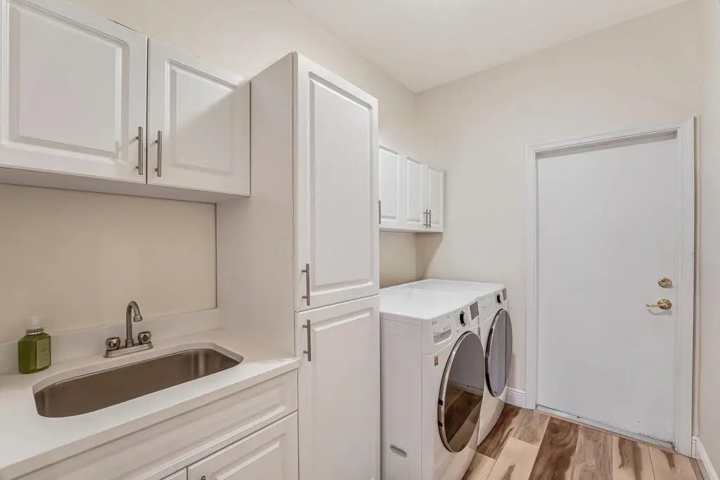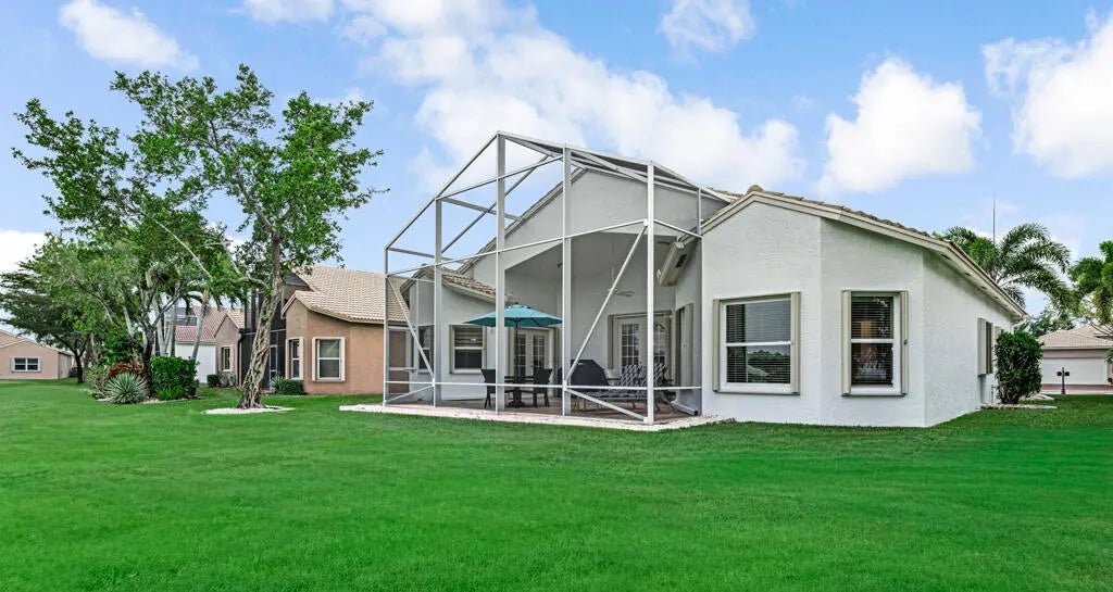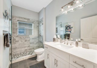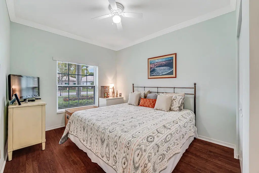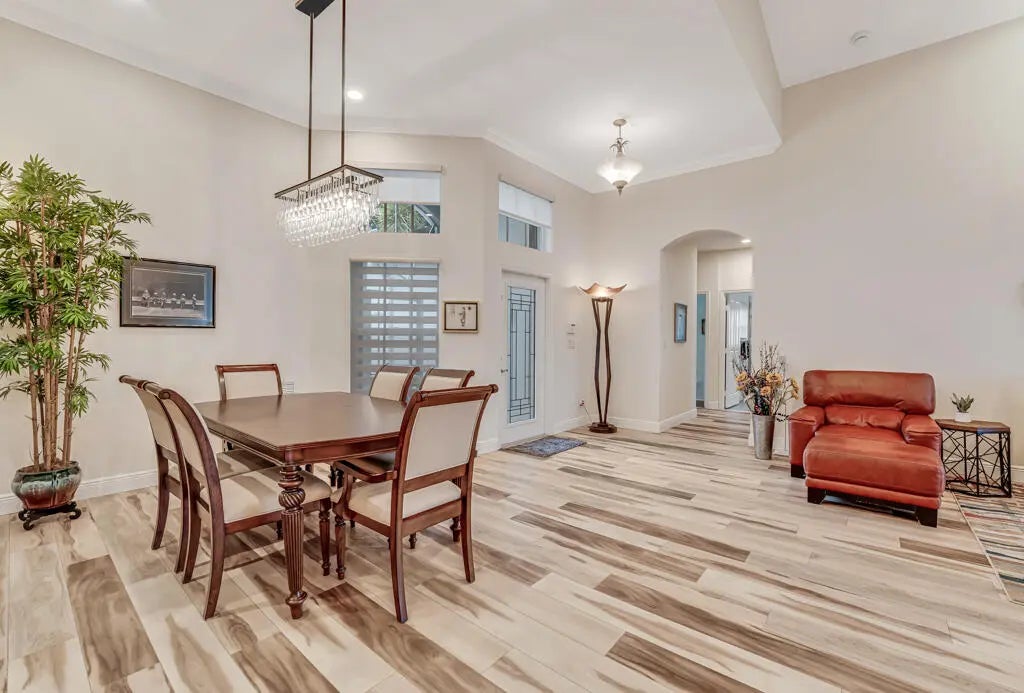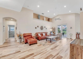 WHAT A BEAUTY!! The list of upgrades and updates goes on & on starting with a beautiful impact glass insert in the front entry door that opens to neutral luxury vinyl flooring that flows throughout the living area. Convenient pull outs in kitchen cabinets, State of the art Bosch kitchen appliances include wall oven, full depth French door fridge, OTR microwave, & an 800 series dishwasher. Added is a Thermador freedom induction cooktop. New cabinets and sink in laundry rm w/ Washer/Dryer is front load LG thin Q. Stylish newer blinds throughout. A/C is 4 ton installed 2022, HWH 2019. 2 new STUNNING BATHROOMS! Beautifully maintenance free renovated extended concrete design patio. Newly painted exterior, outfitted closets, new highhats, new accordion shutters, CLICK MORE TO SEE IMPROVEMENTS