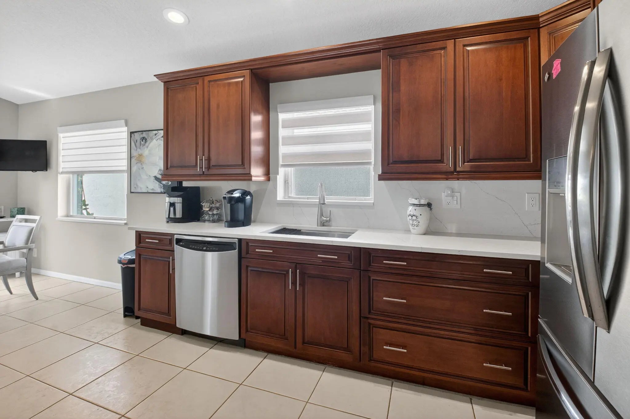 Single story 3/2 beautiful lake view home w/ 2 car (epoxy floor) garage. As you open the sliders leading to a large screened patio and serene lake view, you will enjoy the outdoors year round. Patio has screens for privacy and sun.This light and bright updated home has an eat-in kitchen with quartz counters, large pantry, pull-out drawers, custom cabinets, under cabinet lighting, and more. Large and bright primary suite w/ his and her fitted closets and dual vanities in bathroom. Features:High ceilings, fans, laminate wood floors in BR's, neutral tile in main areas, newer A/C, and newer roof. Live the lifestyle of Cascades. Renovated clubhouse w/ resort style amenities, social activities, clubs, theatre, fitness center, pools, tennis, pickleball, card rooms, cafe, entertainment, and more