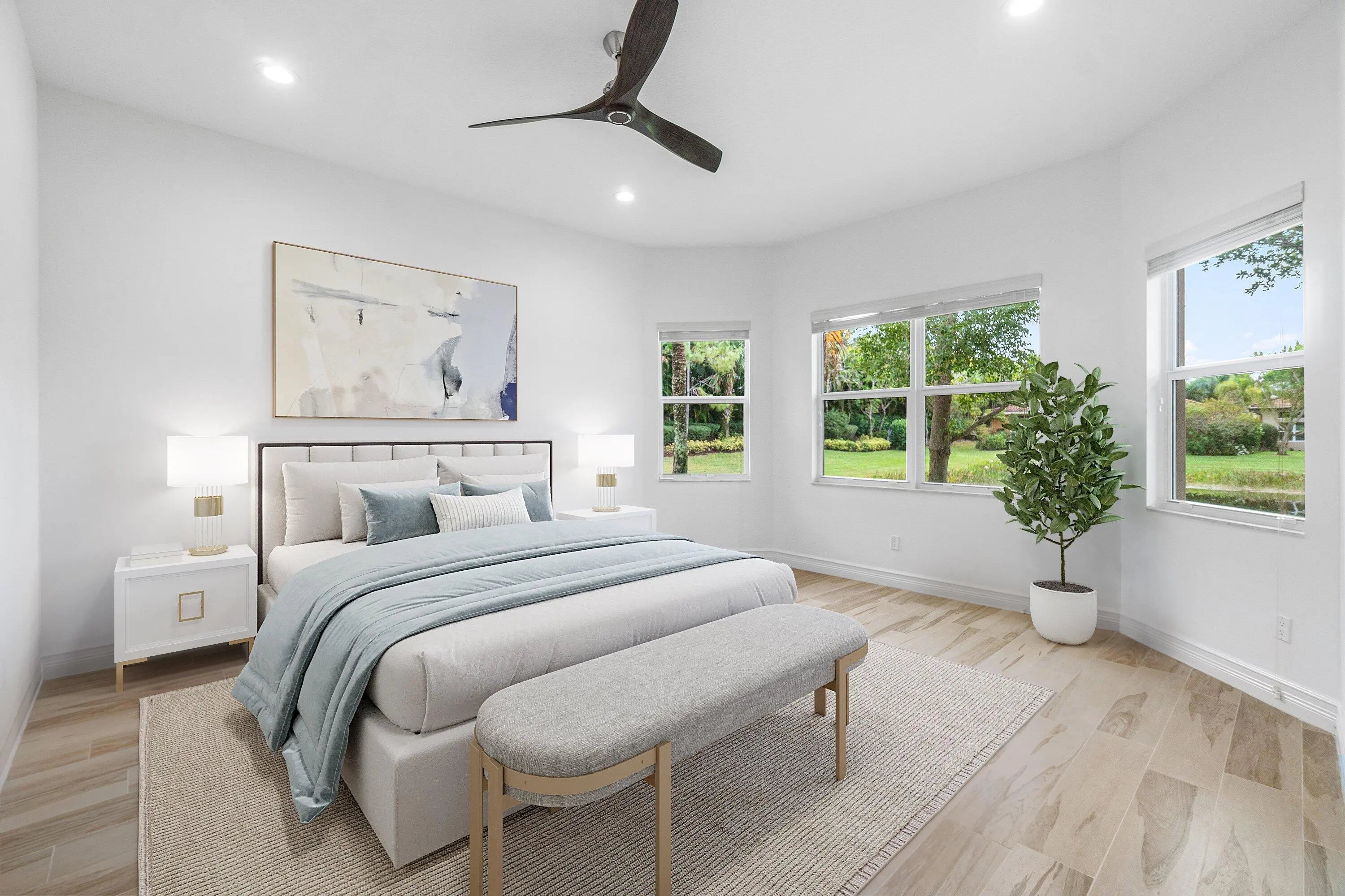 Beautiful upgraded Rebecca model with lakeview. Features include lush landscaping, hurricane impact windows, custom fitted closets and more. 3 bedrooms, 2 baths. Third bedroom set up as office. Entire home freshly painted. High ceilings and neutral porcelain tile flooring throughout. Gorgeous upgraded kitchen with large counter height breakfast bar. Covered screened in patio with add'l extended patio overlooking beautiful serene lakeview. Valencia Cove is a premier 55+ lifestyle community with a spectacular 39,000 sq ft clubhouse and 10 acre outdoor recreational facility. There are many activities, trips, shows and all types of clubs. The clubhouse features an expansive foyer, lobby,grand ballroom with raised stage and dance floor, 4 card rooms, cafe with indoor/outdoor seating,