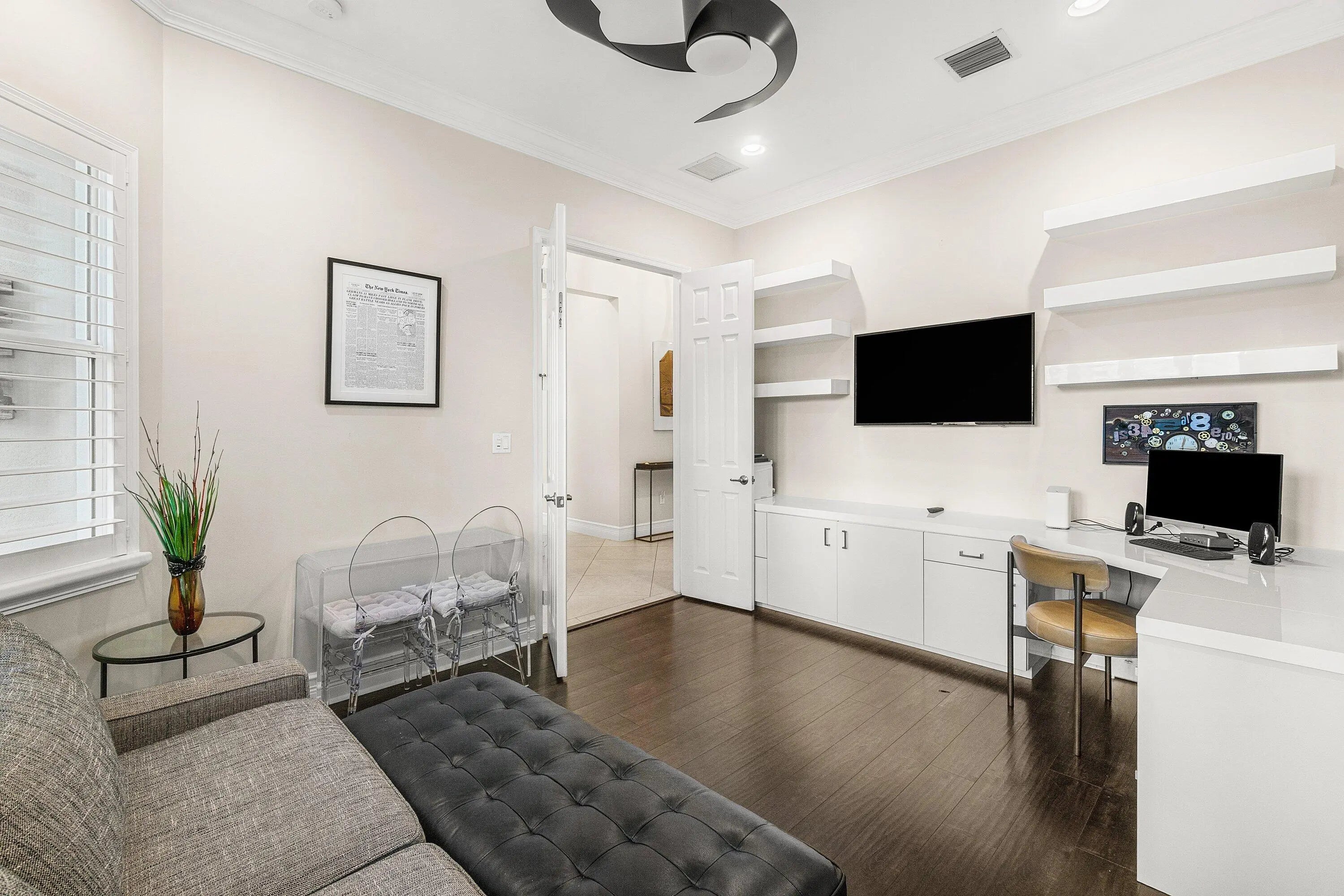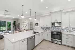 Welcome to this charming waterfront residence, ideally situated on a private cul-de-sac within the highly regarded community of Valencia Bay. Upon entering from the covered patio, you are led from the impressive foyer into a stunning open-concept great room designed for both comfort and entertaining. The gourmet kitchen showcases timeless white shaker cabinetry, quartz countertops, a generously seated peninsula, and abundant storage, seamlessly flowing into a spacious dining area that makes hosting effortless. The great room features a custom-built-in media center and is framed by picturesque lake views, creating a serene and inviting atmosphere. Step outside to the sun-drenched, screened-in patio, where tranquil water views provide the perfect backdrop for relaxation in your own -->