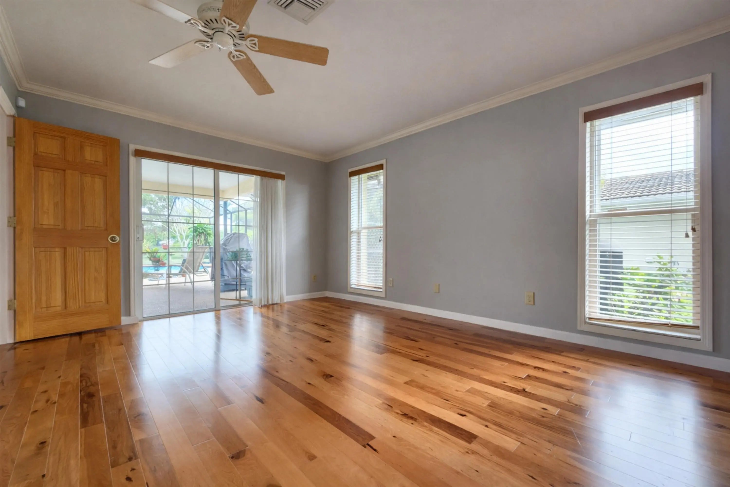 Well-maintained single-story home offering a comfortable layout and inviting Florida outdoor living. Features include a split-bedroom floor plan, a combination of tile and hardwood flooring, crown molding, and abundant natural light throughout. Spacious living and dining areas flow seamlessly, highlighted by a family room with built-ins and a fireplace. The kitchen and adjacent dining space are ideal for everyday living and entertaining. Updated bathrooms include quality finishes and glass-enclosed showers. Enjoy a private screened pool and lanai with ample deck space for relaxing or hosting guests, along with a large backyard offering peaceful green views. Two-car garage and wide driveway. Convenient Coral Springs location near shopping, dining, parks, and major roadways.