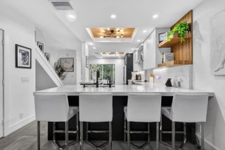 WATCH the VIDEO attached to appreciate this beautifully updated and upgraded townhome in a waterfront community in east Delray Beach. A gated entrance, and intimate pet friendly community with waterfront amenities for residents.This beautiful home was Recreated from a three bedroom to 2 bedrooms creating a larger primary and a second bedroom. Renovated with high end finishes. A home with solid core doors, designer cabinetry with pull outs, Quartz countertops, custom lighting, and all new appliances. The Open kitchen and expanded dining area is a great place for entertaining and has a stunning Custom ceiling with wood coffers. Gorgeous 24 x 48 porcelain tile on first floor and high baseboard moldings. Luxury Laminate wood flooring upstairs. Relax outside and BBQ on your private patio.