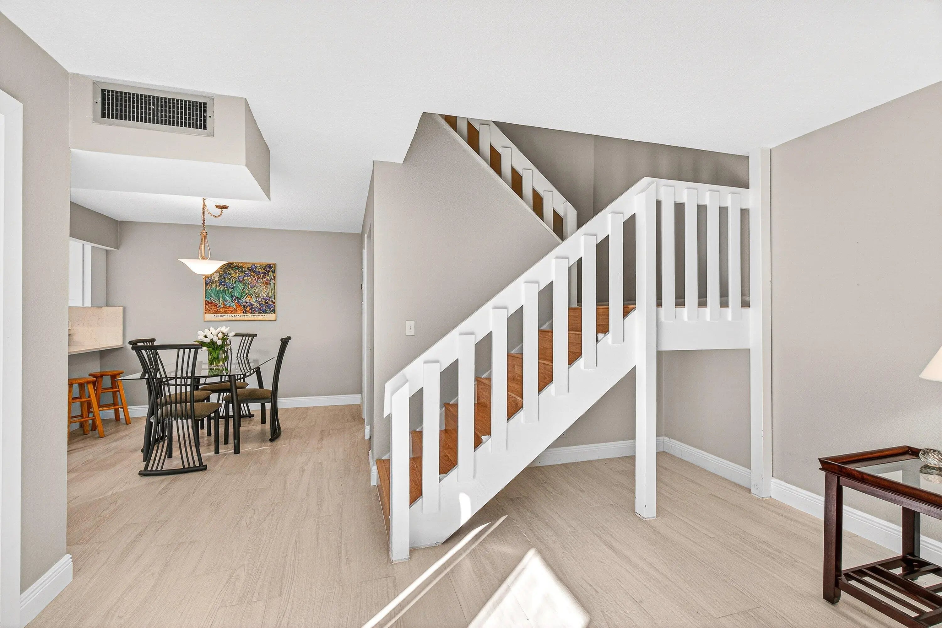 THIS VERY BRIGHT & IMMACULATE 2 BED/ 2.5 BATH TOWNHOME HAS BEEN NICELY UPDATED, HAS A HUGE COURTYARD PATIO & IS STEPS TO THE CLUBHOUSE! THE KITCHEN HAS AN OPEN CONCEPT FEELING & HAS BEEN UPDATED w/ WHITE SHAKER WOOD CABINETS & QUARTZ COUNTERTOPS (room for 3 barstools). HURRICANE IMPACT WINDOWS & DOORS! NEW GORGEOUS PORCELAIN FLOORING DOWNSTAIRS & WOOD LAMINATE UPSTAIRS. NEW A/C 2023, W/H 2023 & THE ROOF IS 2019. UPSTAIRS YOU WILL FIND TWO VERY LARGE PRIMARY BEDROOMS w/ ONE OF THE PRIMARY BATHROOMS BEING COMPLETELY REMODELED! RAINBERRY BAY IS A GATED COMMUNITY w/ TONS OF AMENITIES INCLUDING 5 RESORT POOLS, FITNESS CENTER, BILLIARDS, CARD TABLES & CLUBS TO JOIN, ART STUDIO, YOGA, BOCCE & A SEPARATE SHOW HALL FOR ENTERTAINMENT! THERE IS A TENNIS & PICKLEBALL CENTER w/ 8 PICKLEBALL COURTS!