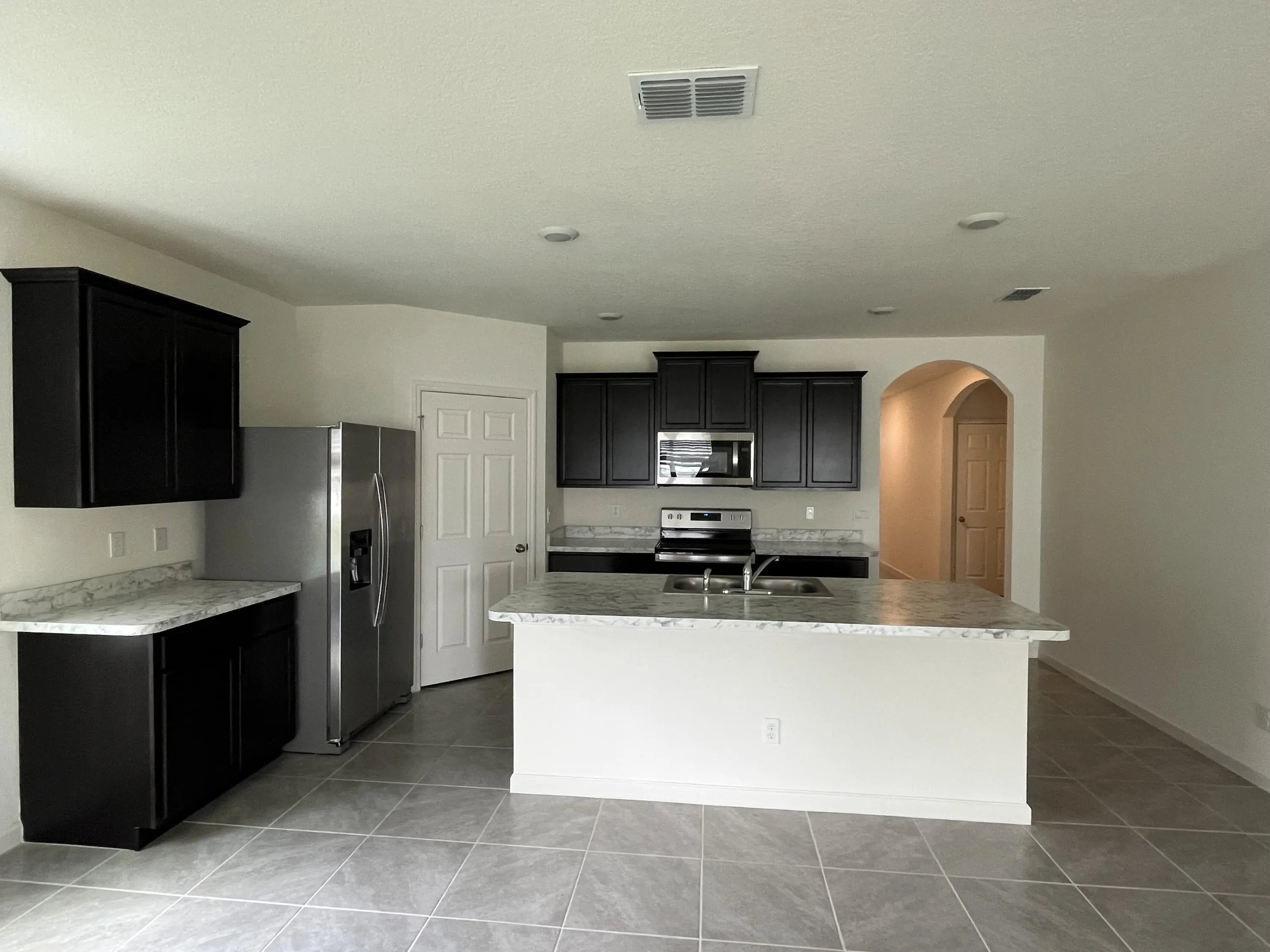 Bedroom, 2 bath, 2 car garage. Open floor plan with large kitchen island and walk in pantry. Primary bedroom easily fits king size furniture and more, with an oversized walk-in closet and large linen closet. Tile everywhere except the bedrooms. Kitchen boasts 36'' cabinets, all stainless steel appliances and washer and dryer.