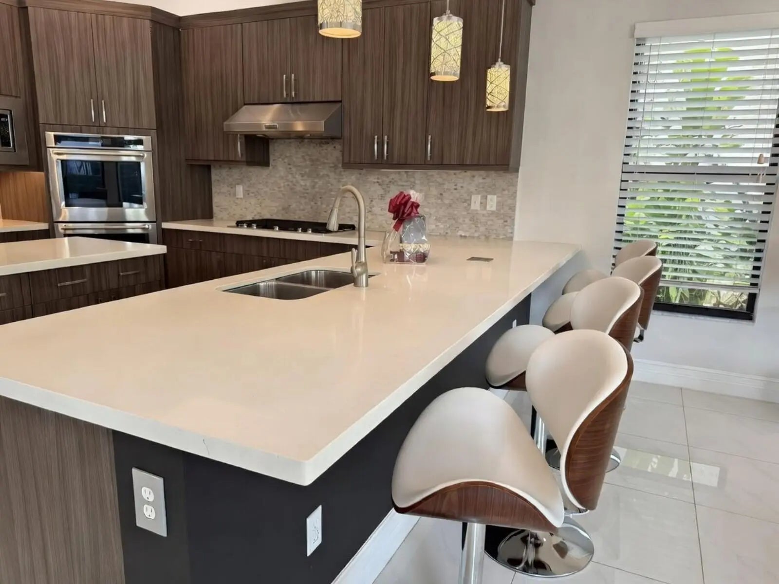 MUST SEE in SEVEN BRIDGES FURNISHED and PRIVATE POOL. EMBRACE SPACE & LUXURY. One of the Most Desirable Waterfront Homes Available Today. Rare opportunity, homes like this don't last. Elevate your living standards in this expansive 4,672 sq. ft. residence, offering significantly more space and immediate enjoyment compared to other properties. 2-story designer-furnished home features a fully completed private pool and a natural gas outdoor kitchen, ready for your immediate move-in. ALL INCLUDED in the rent: Cable + high-speed internet, security alarm, pool cleaning & maintenance, lawn care, and interior/exterior pest control, truly worry-free living. Stunning *waterfront* with 4 bed/5bath residence with luxury upgrades, and an exceptional open layout.Tenant occupied until April 3rd, 2026.
