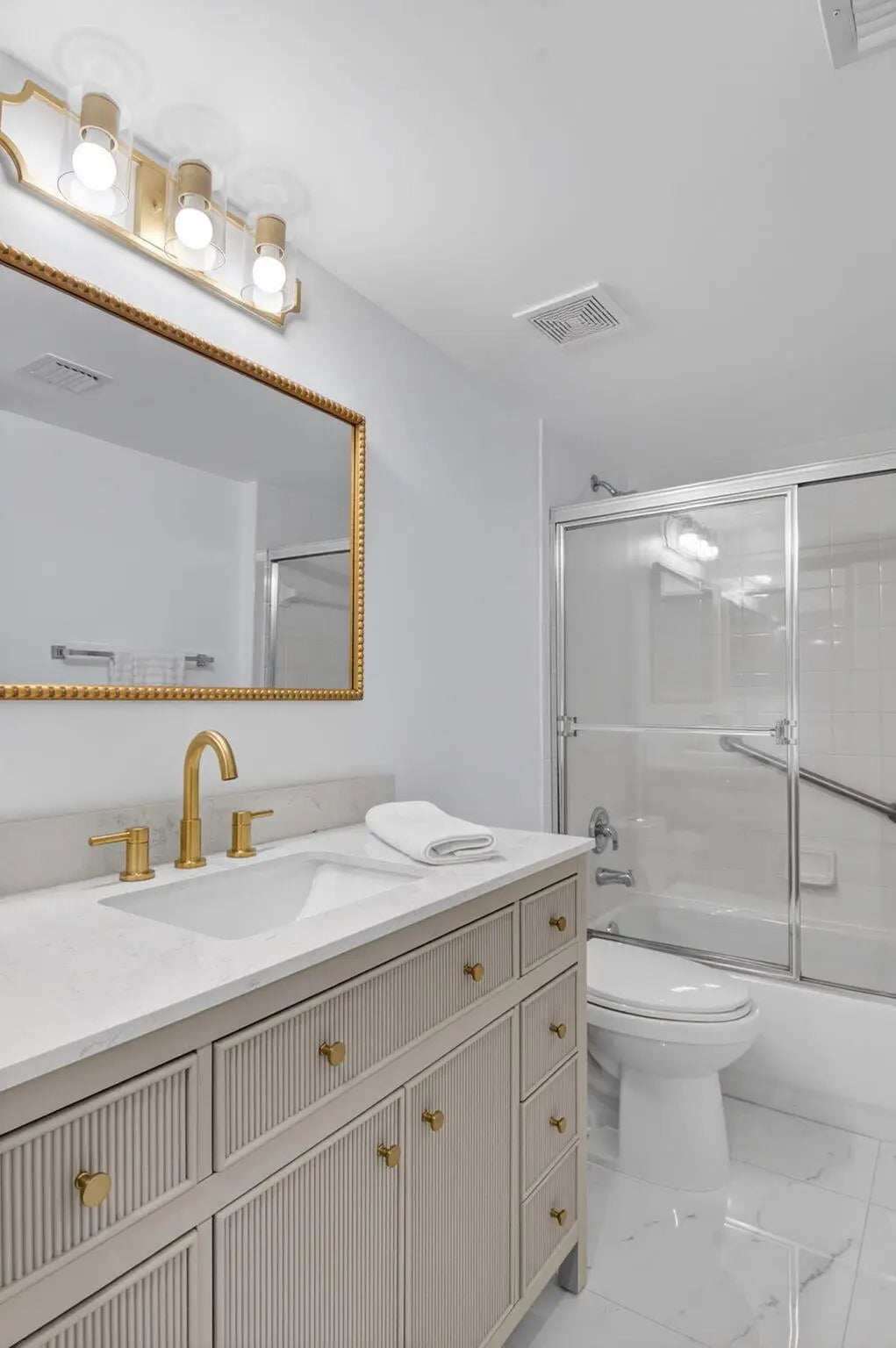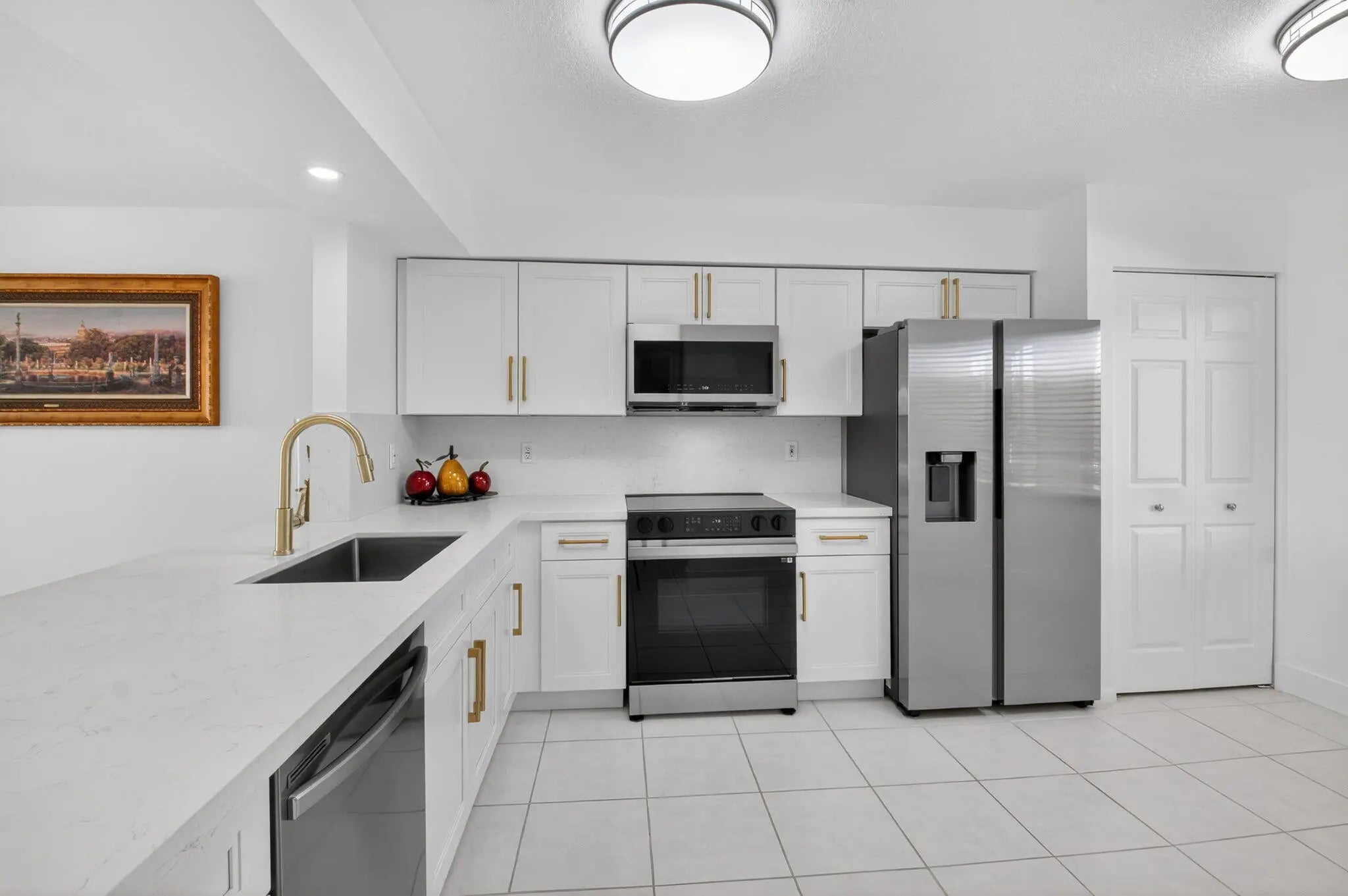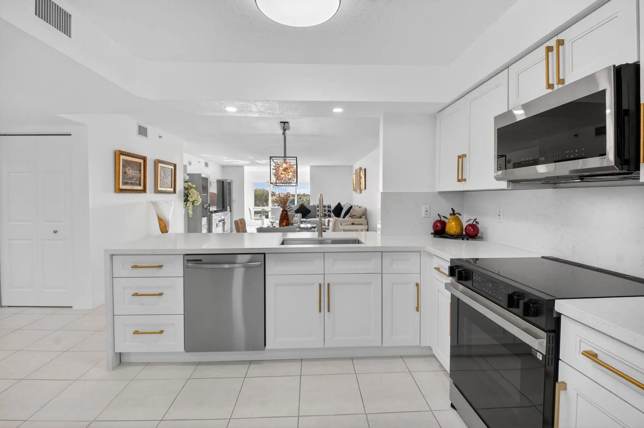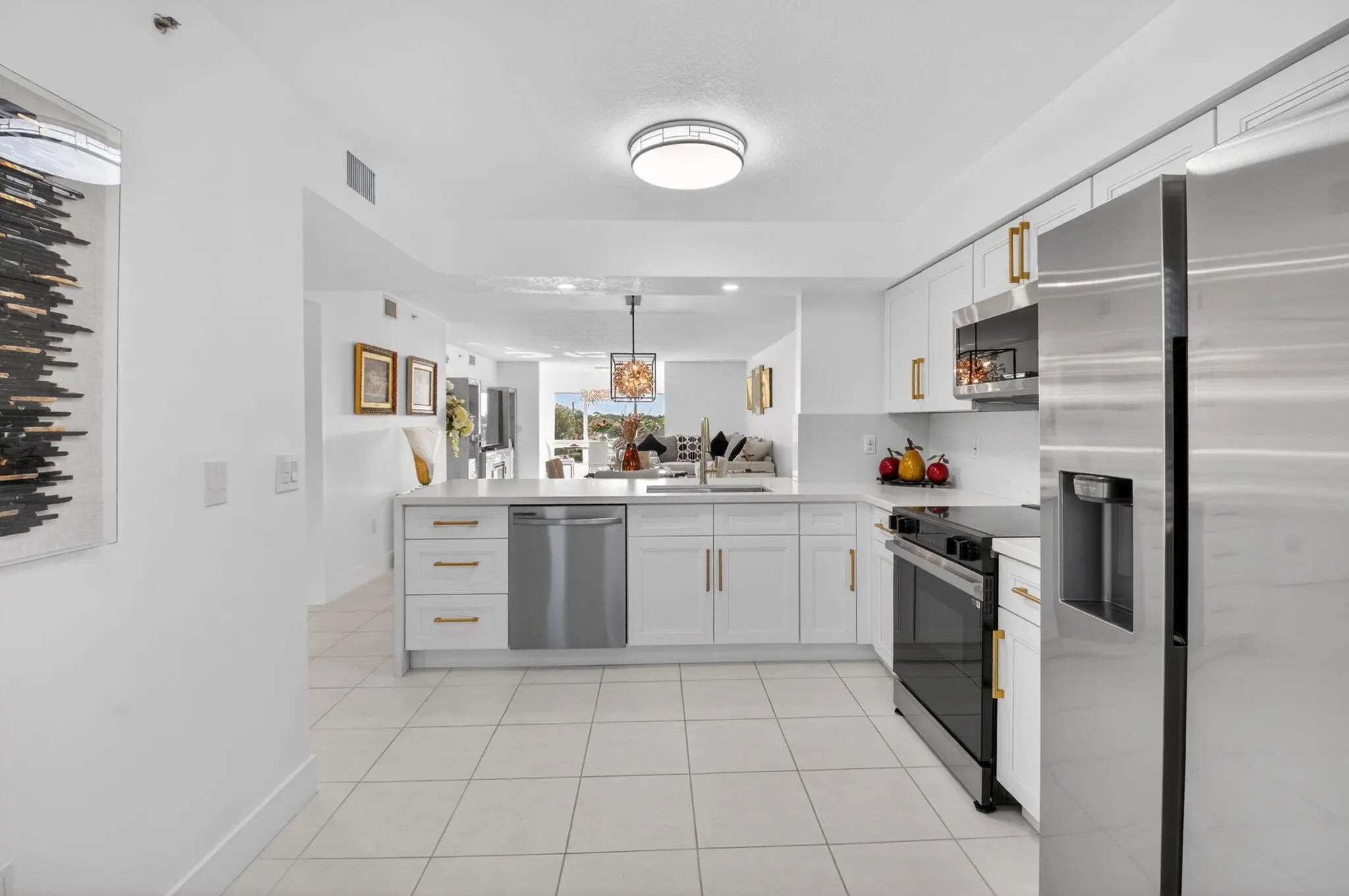 RENOVATED PENTHOUSE WITH UNPARALLELED LAKE VIEWS!Experience the best of Country Club-style living without the Country Club fees in this spacious 1,800+ SF penthouse residence offering 3 bedrooms / 2 baths (third bedroom currently used as a den) and breathtaking, serene lake views.The fully renovated kitchen showcases white shaker cabinetry, quartz countertops, and stainless-steel appliances, creating a bright and modern culinary space. Custom chandeliers throughout add elegance and architectural interest, while tile flooring in the main living areas and luxury laminate flooring in the bedrooms provide a cohesive, upscale look--no carpet in this unit. LA related to the Seller.