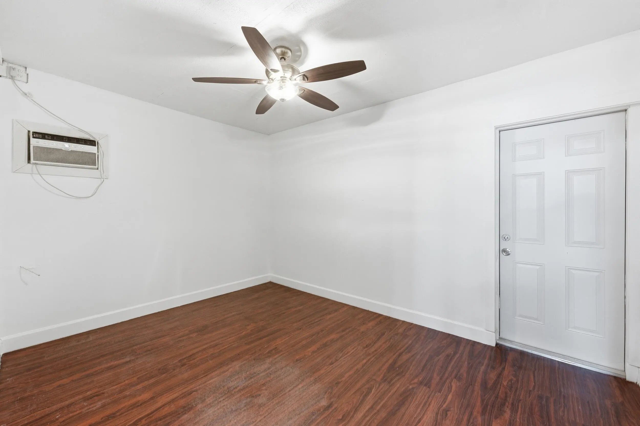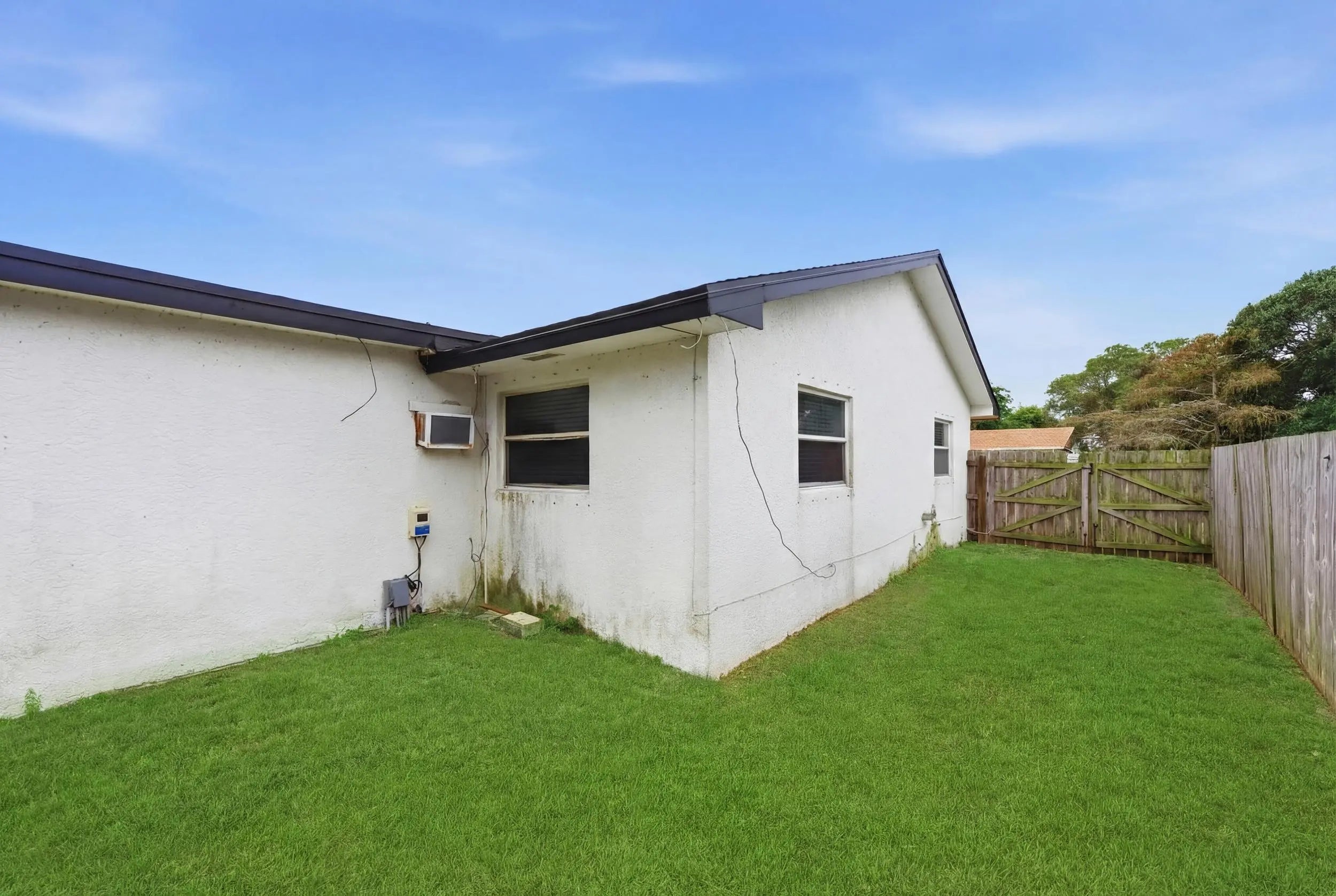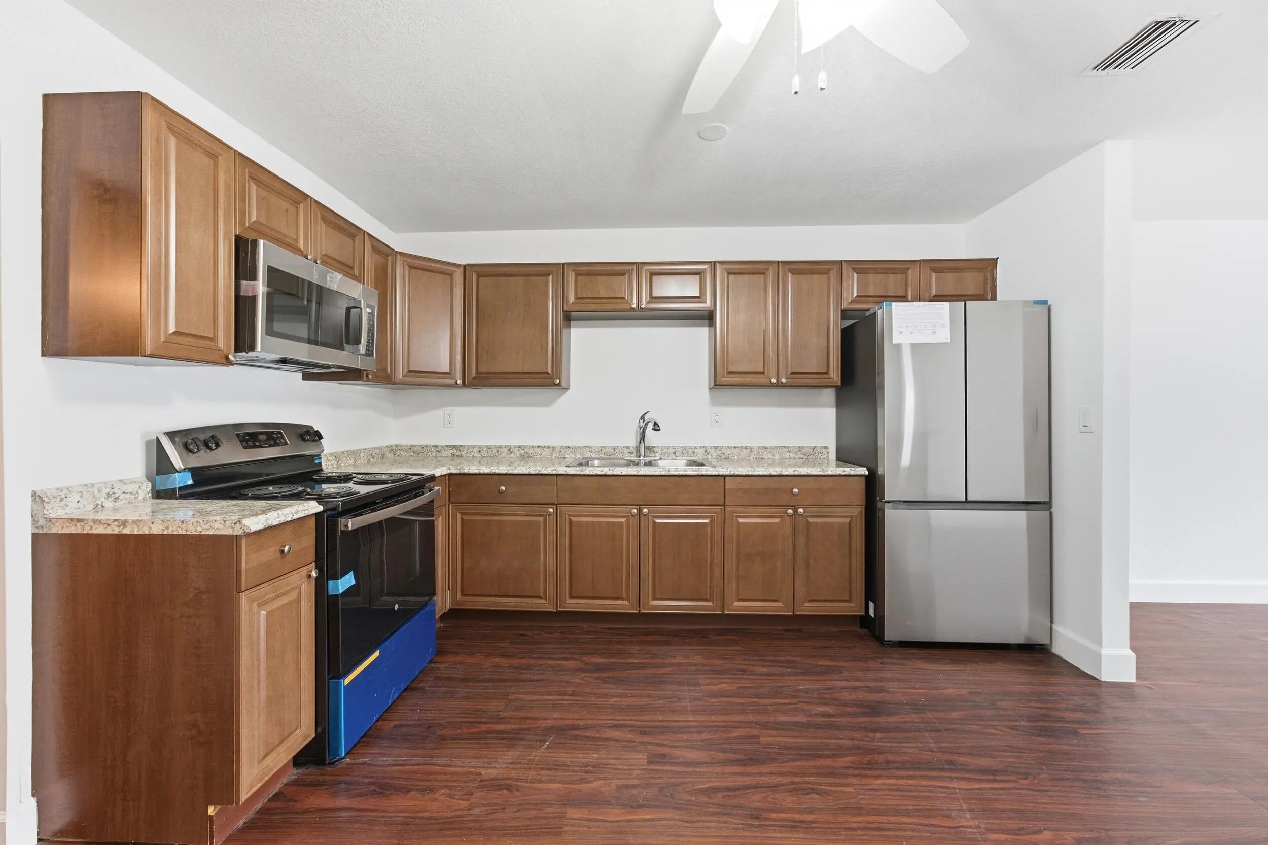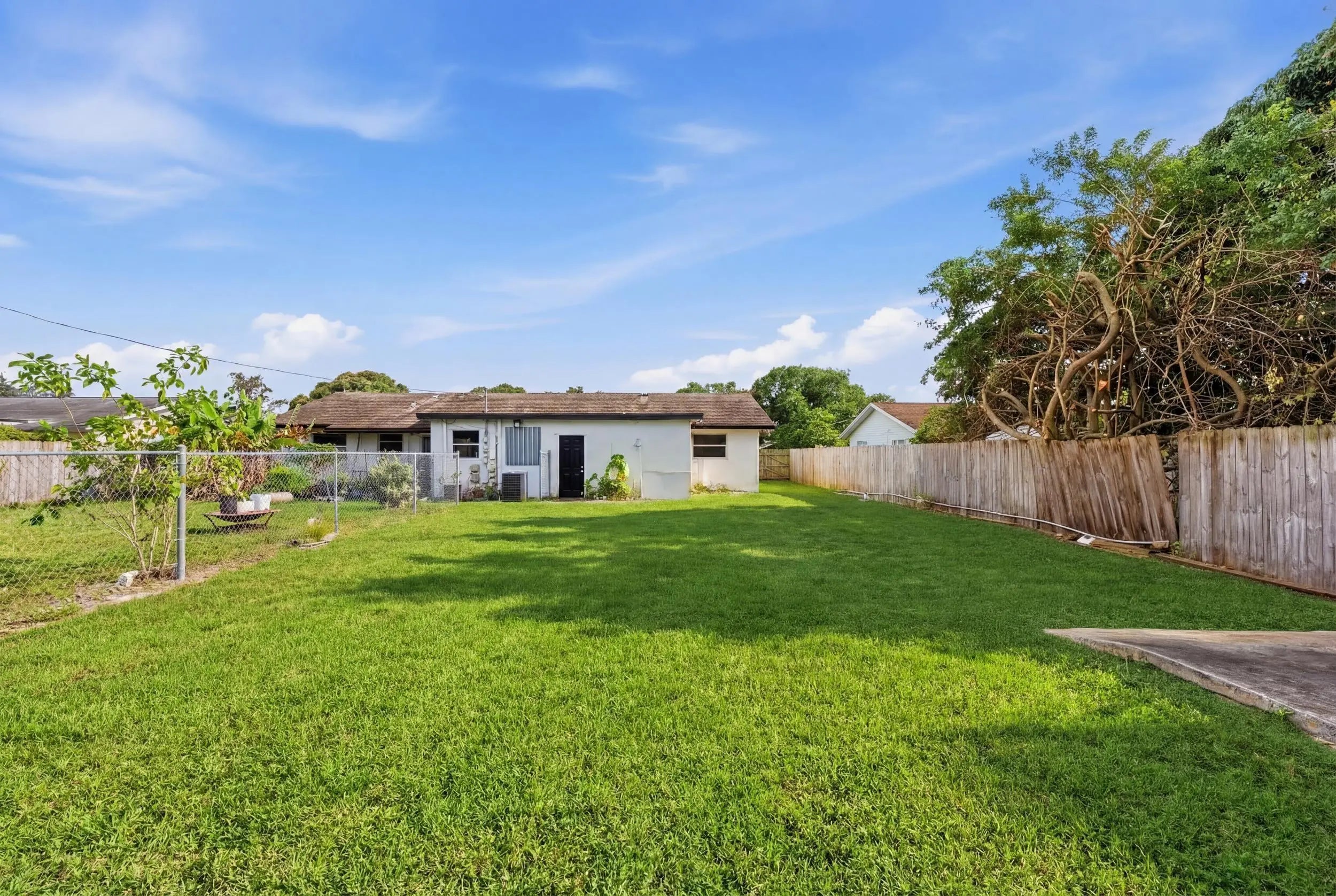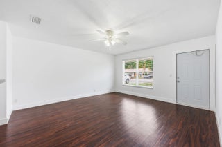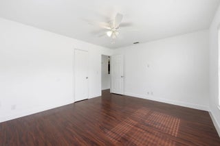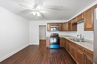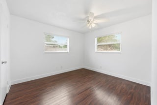 Welcome home to this beautifully updated 2-bedroom, 1-bath open-concept villa featuring an oversized private backyard and no HOA.As you enter, you'll immediately notice the tasteful upgrades throughout, including wood-look vinyl flooring, an updated kitchen, and brand-new stainless steel appliances.The spacious kitchen offers solid wood shaker cabinetry, granite-look countertops, new GE and Samsung stainless steel appliances, an oversized dual sink with updated hardware, and ample cabinet space. The kitchen flows seamlessly into the living area, which features updated trim and an abundance of natural light from large front windows, creating a bright and inviting space.Both bedrooms are generously sized and include wood-look vinyl flooring, updated trim, walk-in closets,