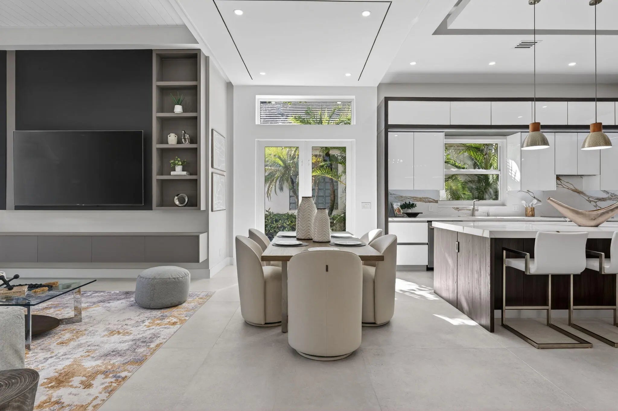 Fabulous, fully redesigned and updated home featuring 3 bedrooms, 3 bathrooms (all ensuite), plus a private office/den. This residence offers complete impact glass windows and doors, a full-house generator, and a quick-recovery hot water heater. Additional upgrades include a new roof with gutters. Enter through double glass doors into a spacious foyer that opens to a large Great Room. The kitchen showcases an oversized center island, abundant storage, brand-new stainless steel appliances, a microwave drawer, and elegant quartzite countertops. The family room features a custom built-in wall unit and 12-foot impact glass sliding doors that lead to an extended patio deck with stunning golf course views.This home features a partial golf membership.