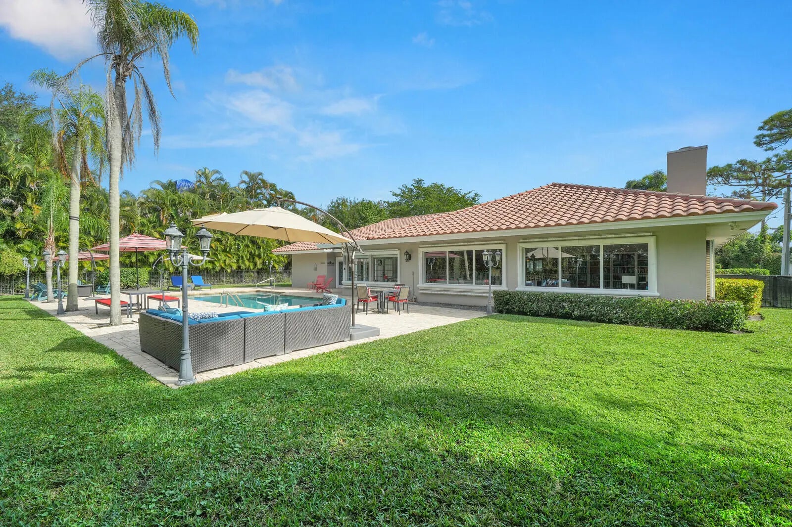 Situated on a nearly half-acre, fully fenced lot in a quiet section of Pine Tree Country Club Estates, this residence combines privacy, thoughtful upgrades, and striking curb appeal. The home is set away from the neighborhood traffic, offering a peaceful setting within the gated community. It welcomes you with an appealing double-door entrance set within a charming front alcove, creating a warm and inviting first impression. Light-filled rooms throughout the home are enhanced by numerous windows and elegant French doors that open directly onto the backyard, seamlessly connecting indoor and outdoor living. While the surrounding golf course enhances the community's scenery and sense of openness, it is independently operated, and homeownership does not include or require club