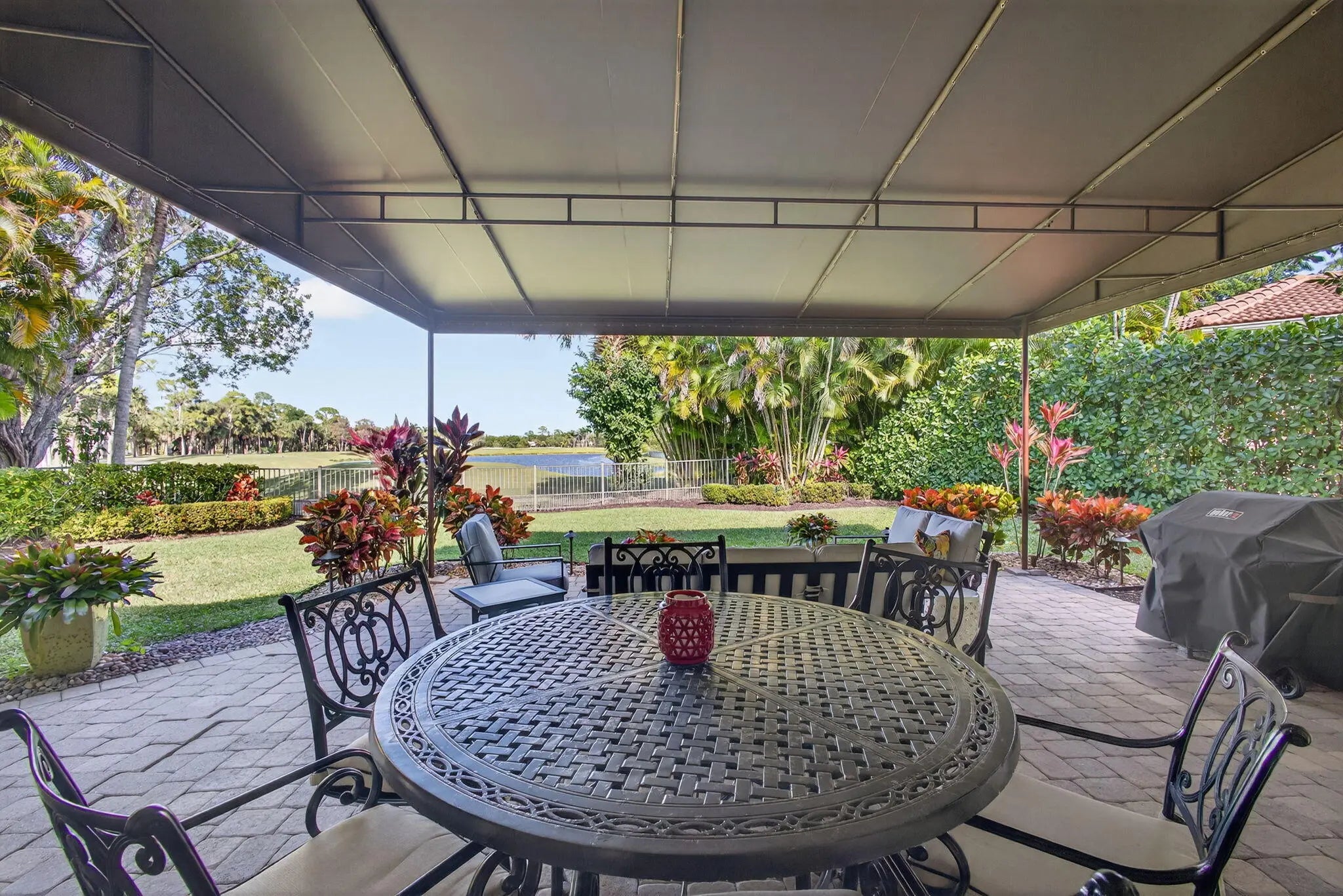This is a fabulous home located in Ironhorse Golf and Country Club overlooking the 18th hole of Arthur Hills designed Golf Course. This home sits on a .37 acre lot with beautiful new landscaping and great privacy. Large patio which is covered with a Hurricane grade awning. Hardwood floors in the den and bedrooms, tile throughout, central vacuum system. Many upgrades. Plantation shutters, NEW ROOF 2025, NEW GUTTERS 2024, Hurricane front doors. Newly painted interior, Newly landscaped side and back yard, exterior landscape lighting. AC and HWH 2016, W/D 2016.Membership is not mandatory but very affordable.
