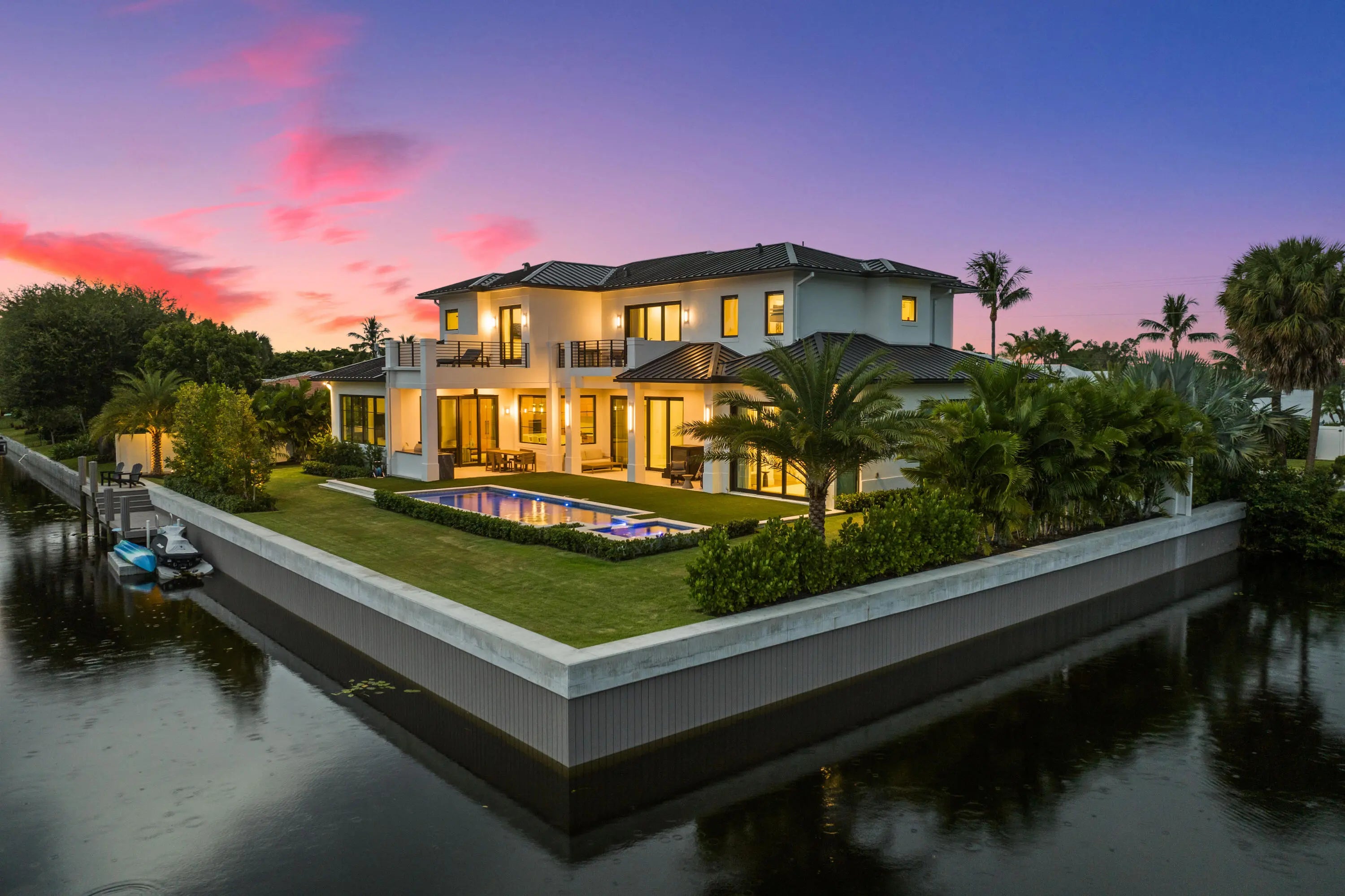 A rare south-facing point lot on Lake Shore Drive meets masterful design by Carrie Lee & Gulfstream Builders. This new construction estate pairs architectural elegance with cutting edge control 4 technology. Voluminous interiors, wolf-appointed chef's kitchen, Lutron lighting, and a sleek marble trimmed gas fireplace flow to an outdoor paradise with saltwater pool, jacuzzi, summer kitchen and covered loggia. Three balconies capture sparkling Lake Ida views, while a seawall and private dock grant effortless access to the water. An address of distinction for the most discerning buyer. Live the quintessential Lake Ida lifestyle here, with direct access to the endless recreational pleasures of Lake Ida & Lake Eden. Launch your paddleboard, kayak, or boat right from your own private dock.
