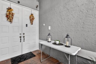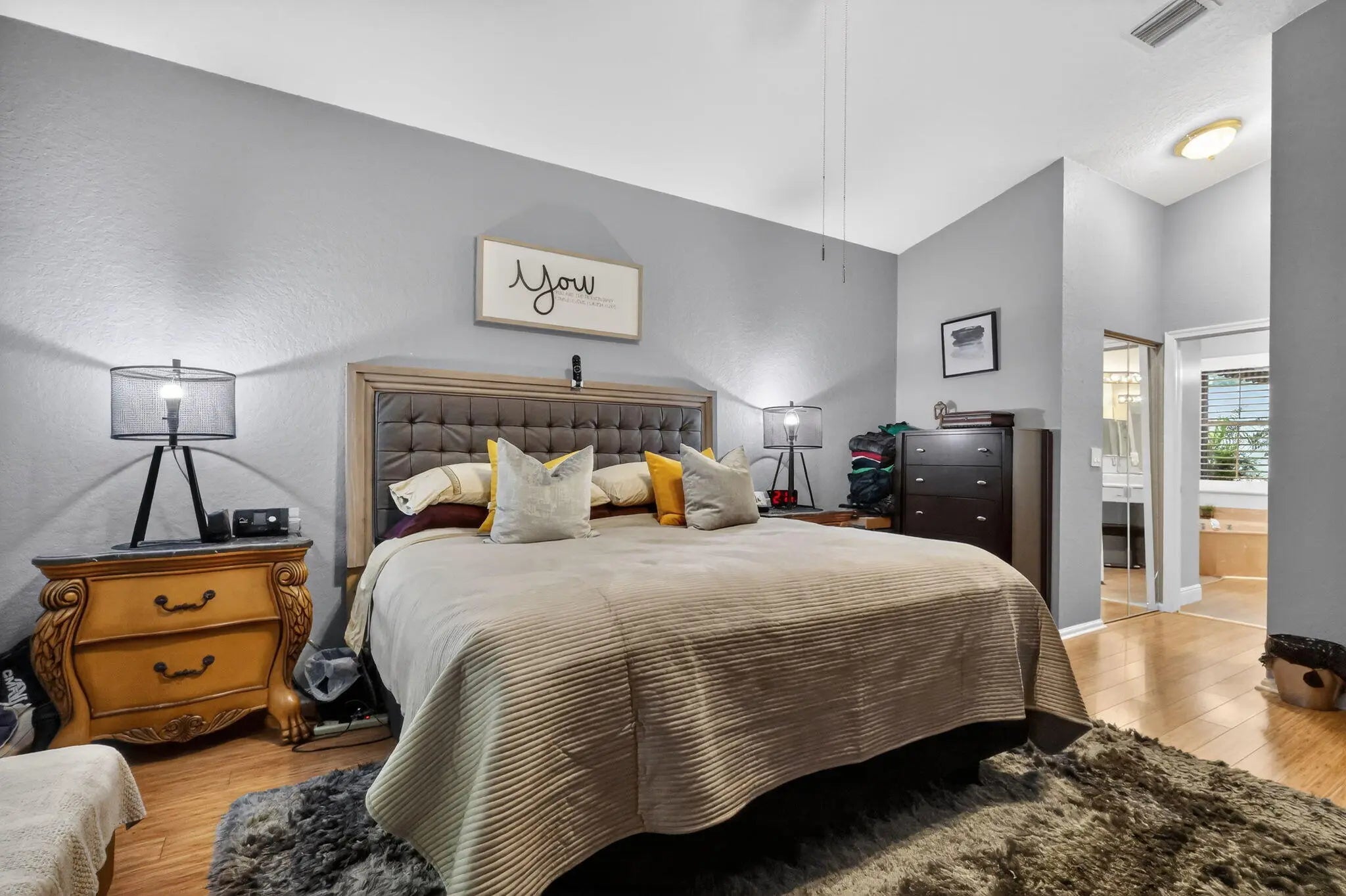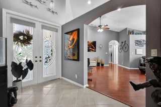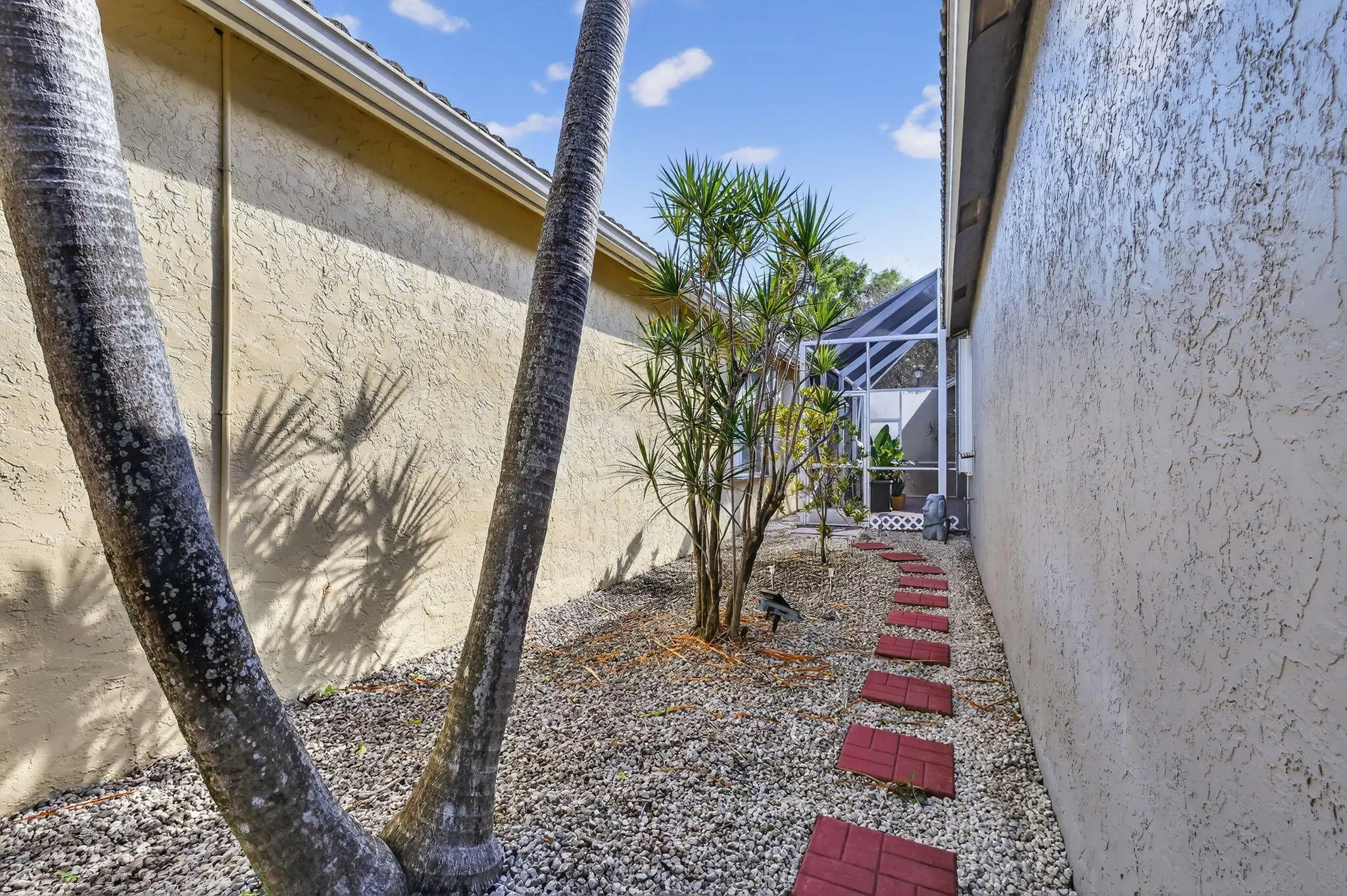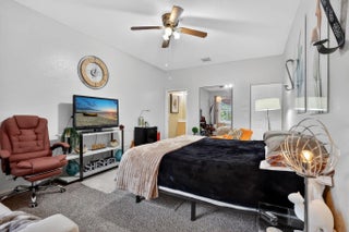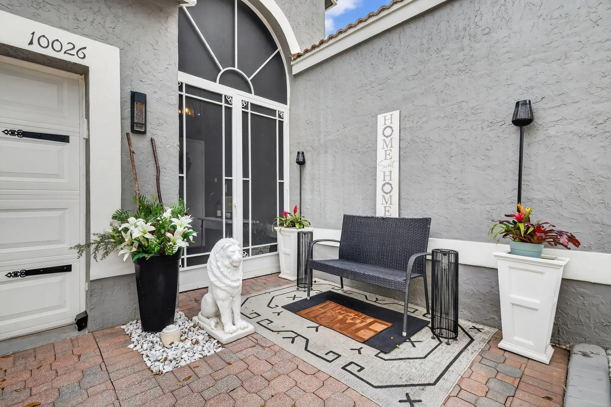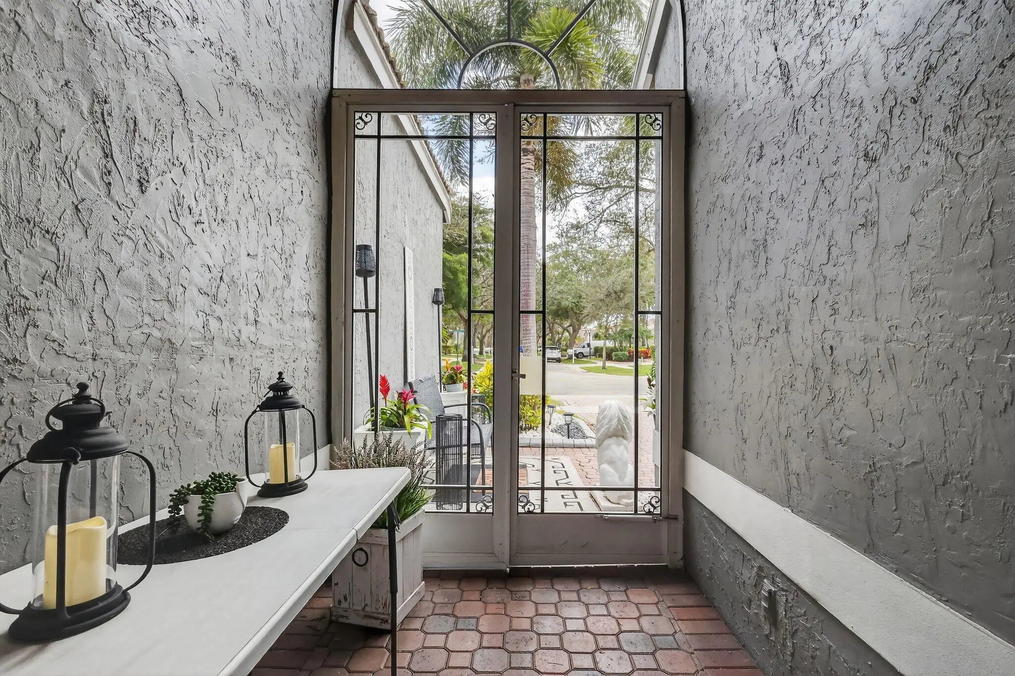 Welcome to this exceptional private courtyard home located in the highly sought-after 55+ gated community of The Club at Indian Lakes. This beautifully maintained residence offers a rare and versatile layout featuring a 2-bedroom, 2-bath main home plus a separate 1-bedroom, 1-bath guest house/studio, ideal for visiting guests or use as a private home office or den. Majestic double doors open to an oversized screened courtyard, creating a serene and private outdoor retreat perfect for relaxing or entertaining. The courtyard is enhanced by a retractable awning and secluded garden views that provide exceptional privacy. Inside the main home, you'll find a wide-open floor plan with vaulted ceilings, filling the space with natural light and creating an airy, spacious feel. Custom window