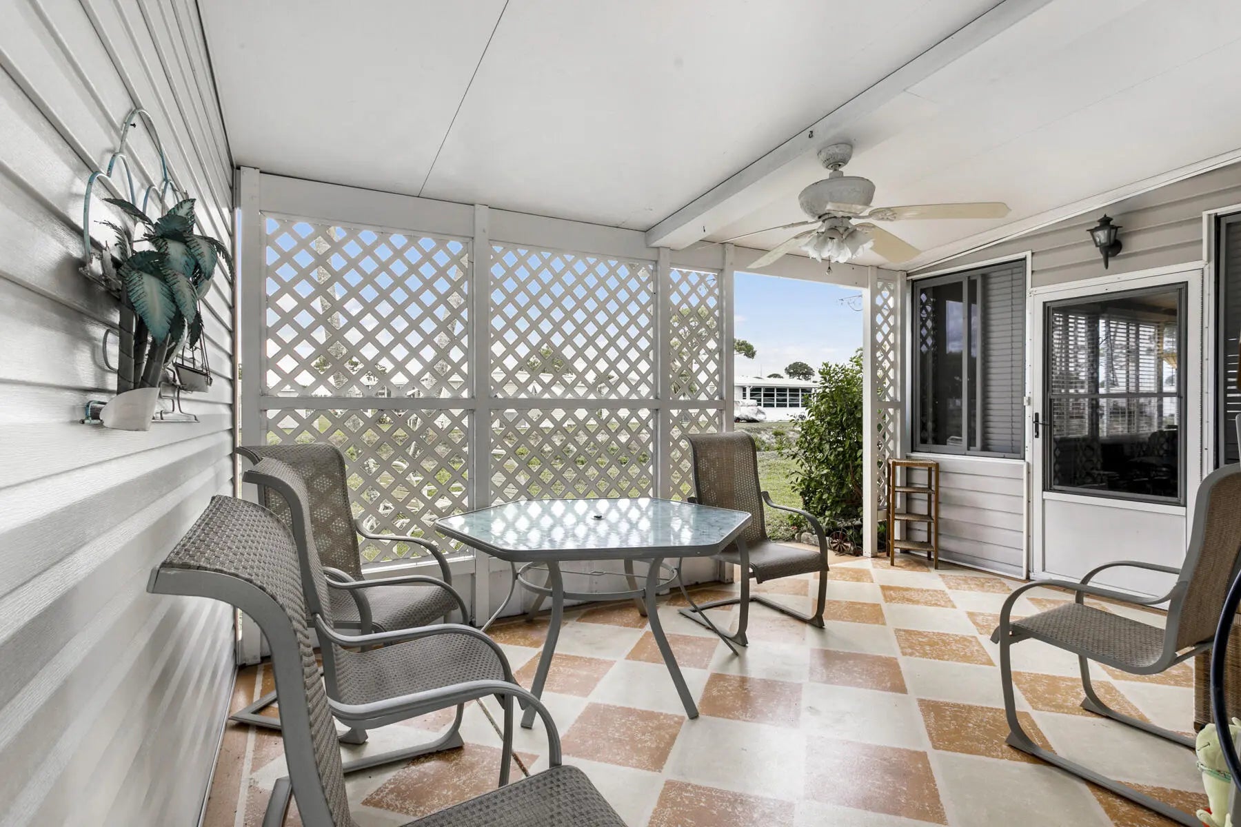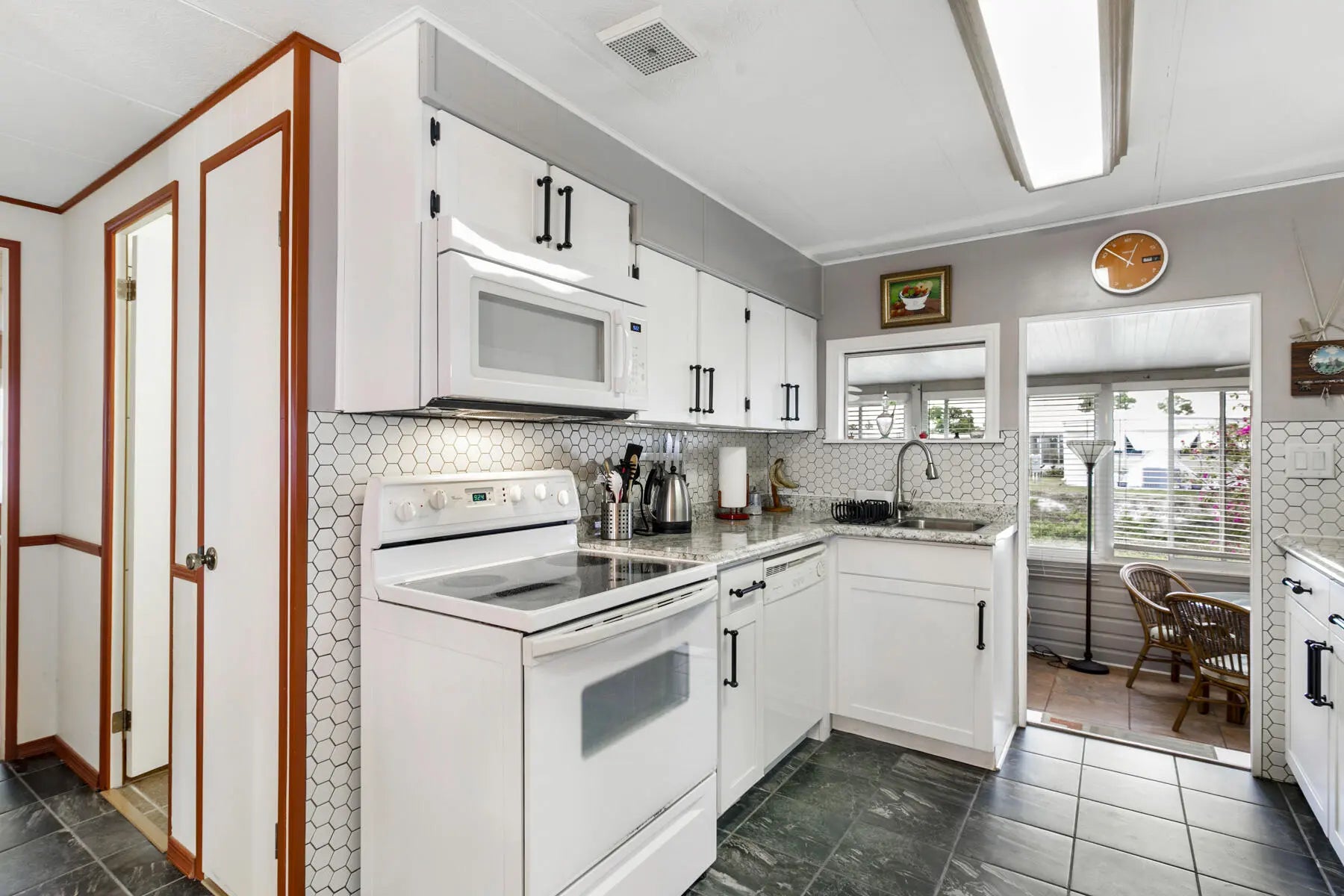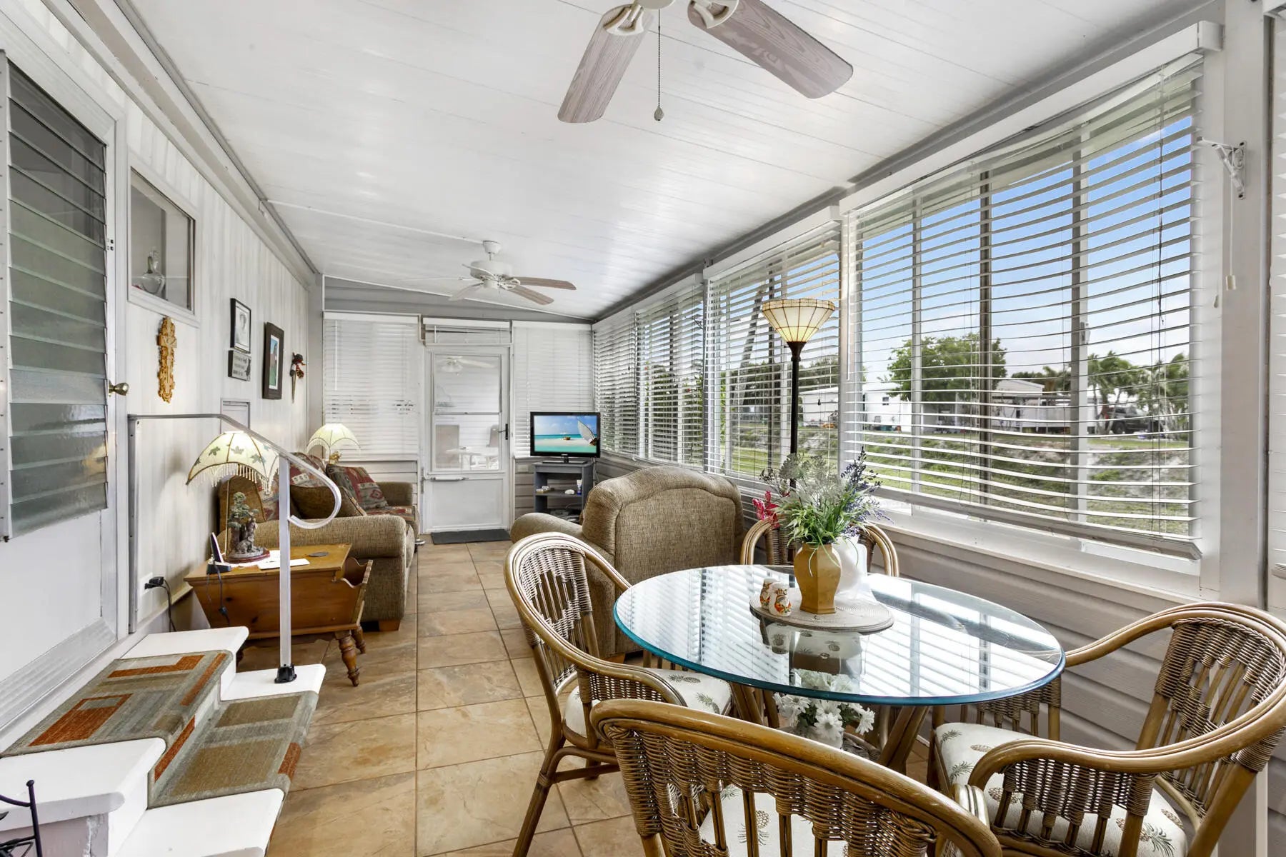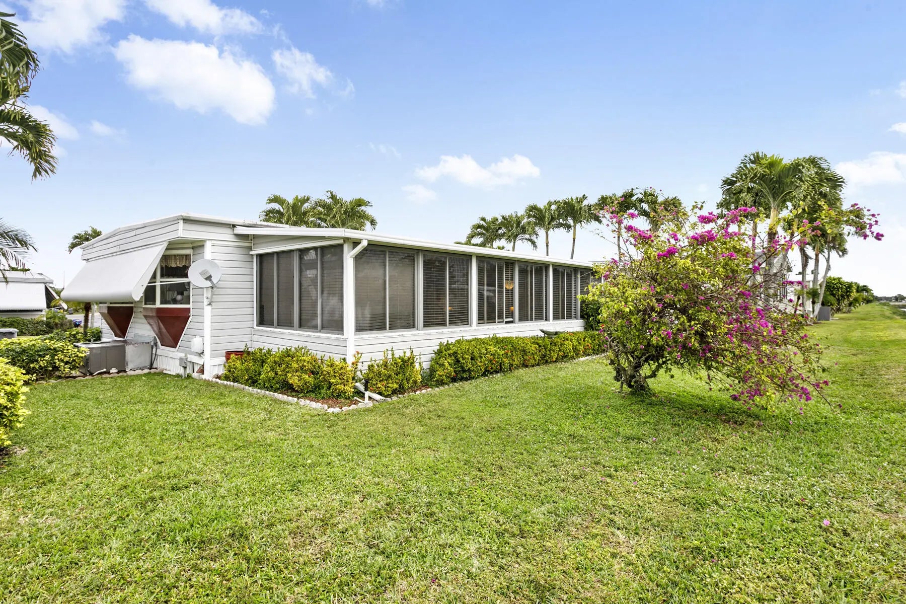 Tucked away at the end of a quiet cul-de-sac, this charming two-bedroom, two-bath home offers a warm sense of privacy, with a peaceful backyard overlooking a scenic canal where wildlife often wanders. Inside, the home is tastefully furnished and well maintained, featuring laminate flooring throughout and a bright, spacious living room accented by sunny bay windows. The updated kitchen feels fresh and inviting with white shaker-style cabinets and new countertops, while both bedrooms provide generous closet space, including the main bedroom with a walk-in closet. Updated bathrooms with step-in showers add a modern touch. The cozy Florida Room, with wall-to-wall windows, invites you to relax and enjoy tranquil green views, while the covered patio offers the perfect spot for fresh air and