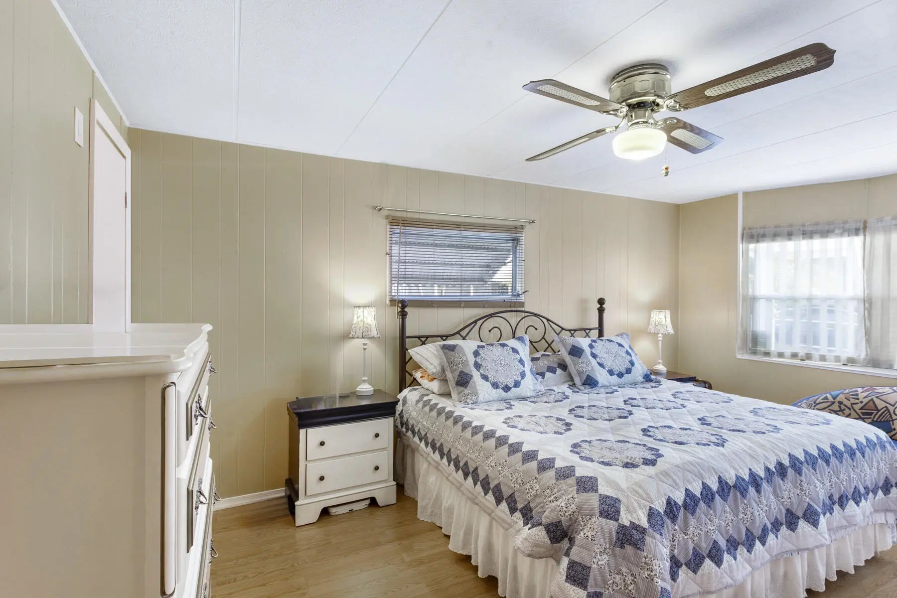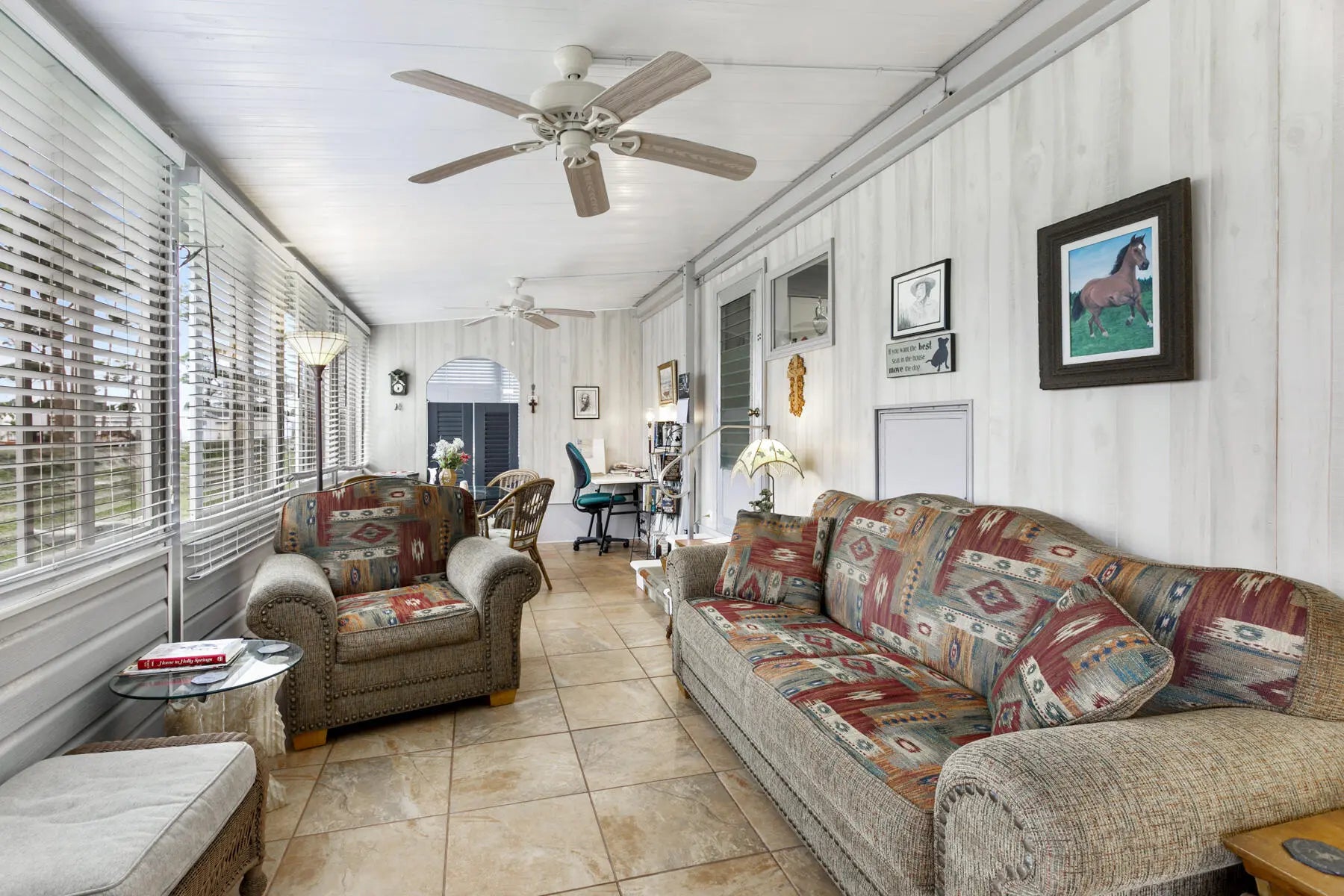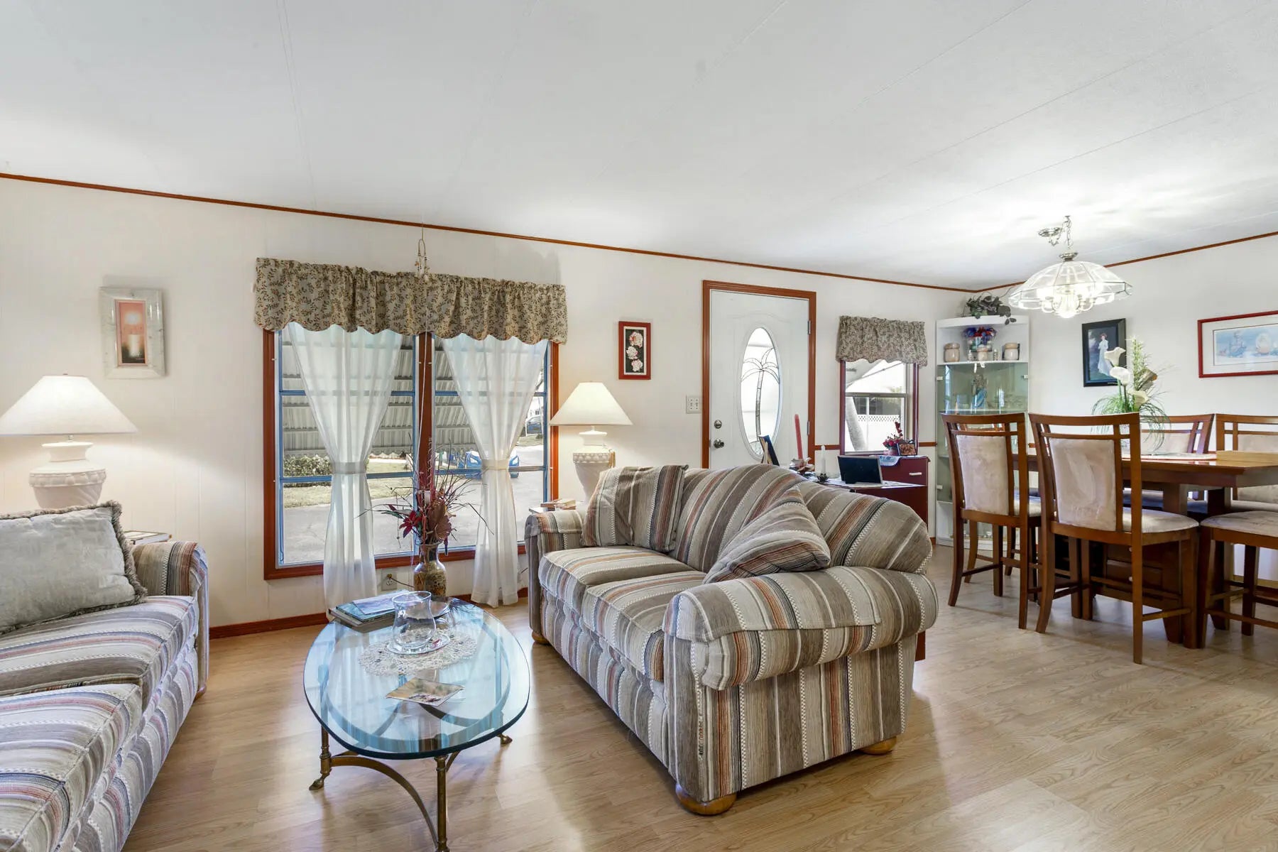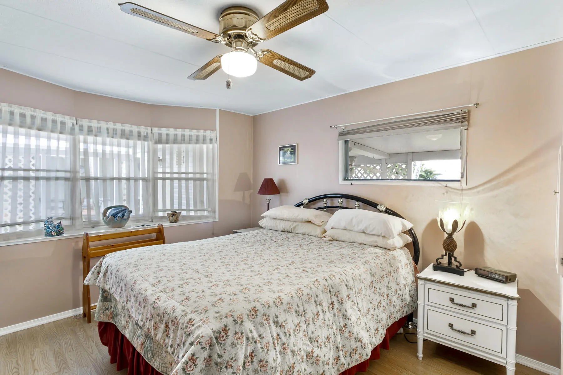 Tucked away at the end of a quiet cul-de-sac, this charming two-bedroom, two-bath home offers a warm sense of privacy, with a peaceful backyard overlooking a scenic canal where wildlife often wanders. Inside, the home is tastefully furnished and well maintained, featuring laminate flooring throughout and a bright, spacious living room accented by sunny bay windows. The updated kitchen feels fresh and inviting with white shaker-style cabinets and new countertops, while both bedrooms provide generous closet space, including the main bedroom with a walk-in closet. Updated bathrooms with step-in showers add a modern touch. The cozy Florida Room, with wall-to-wall windows, invites you to relax and enjoy tranquil green views, while the covered patio offers the perfect spot for fresh air and