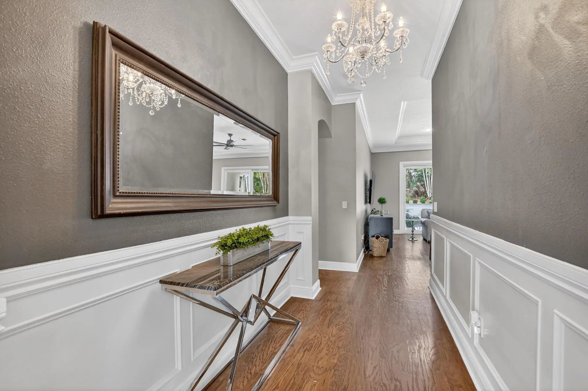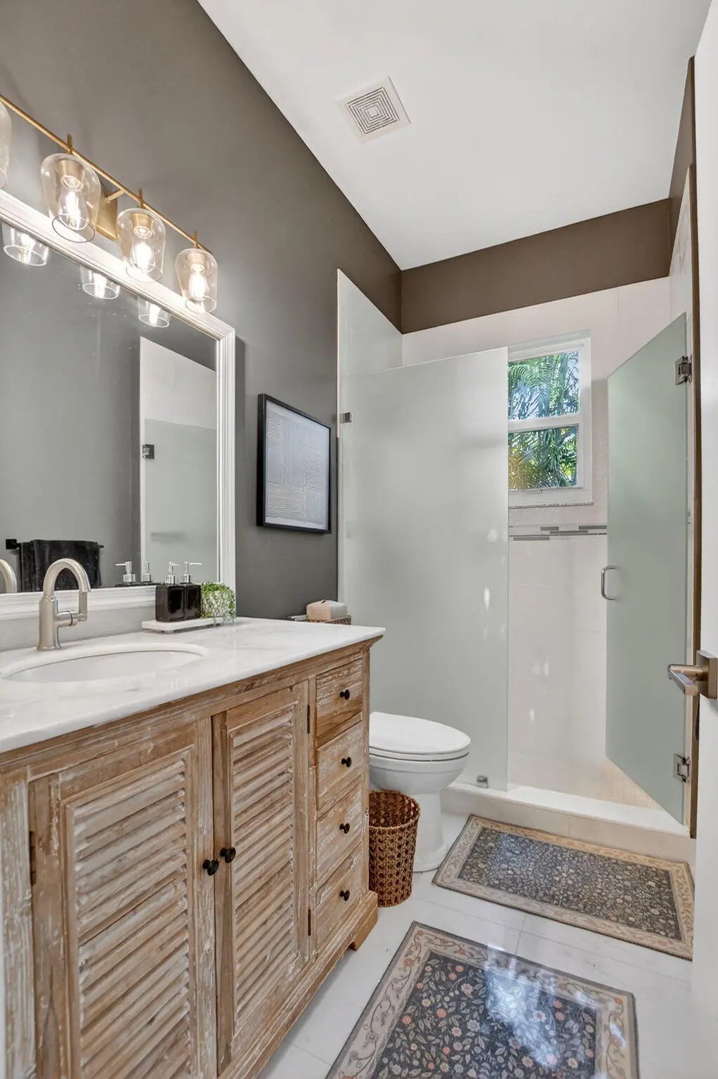 Nestled in the quaint gated community of The Hills at Lake Eden, this beautifully updated 4-bedroom pool home offers the perfect blend of comfort and coastal convenience. Located just 2 miles from the beach and moments from the shops and restaurants of famed Atlantic Avenue, the location is hard to beat. A gracious formal entry welcomes you into the living room, while the home opens up to a spacious family room, dining area, and open-concept kitchen ideal for everyday living and entertaining. The split-bedroom floor plan provides excellent privacy. The primary suite features tray ceilings, sliders to the backyard, and a stunning spa-like bath with dual vanities, a freestanding soaking tub, and a glass-enclosed shower.