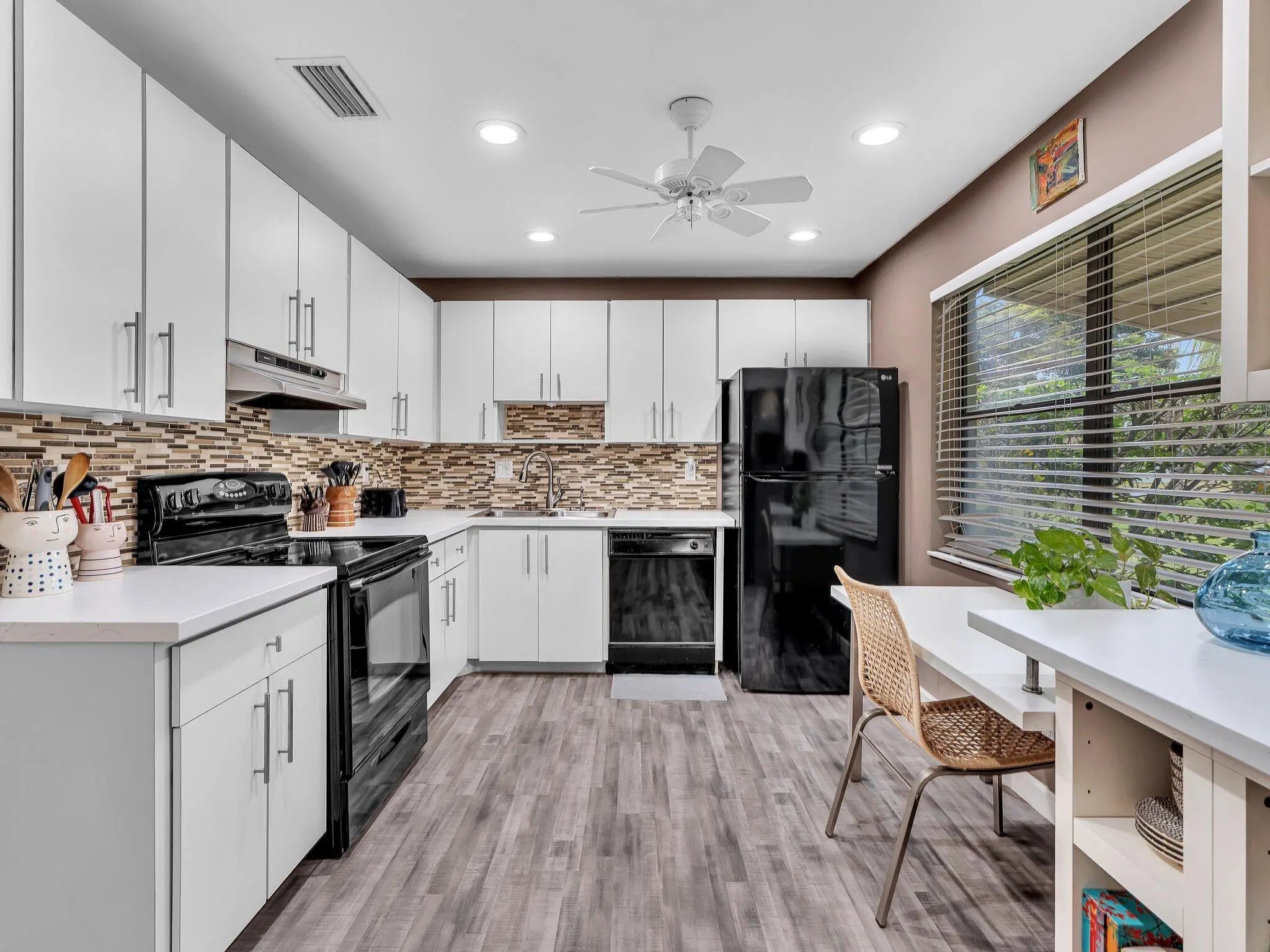 Charming light and bright 2 bed, 2 bath villa in the heart of Boynton Beach. Open floor plan with updated eat in kitchen, new 2024 Roof, modern flooring in living areas, new electric panel and enclosed patio which makes for a perfect home office! Spacious primary suite with picture perfect renovated bath are sure to delight. The back patio overlooks a lovely green space - ideal for get togethers, barbecues, or your own quiet getaway. Low association fee covers cable and internet, lawncare, community pool, and tennis. Minutes from dining and shopping!