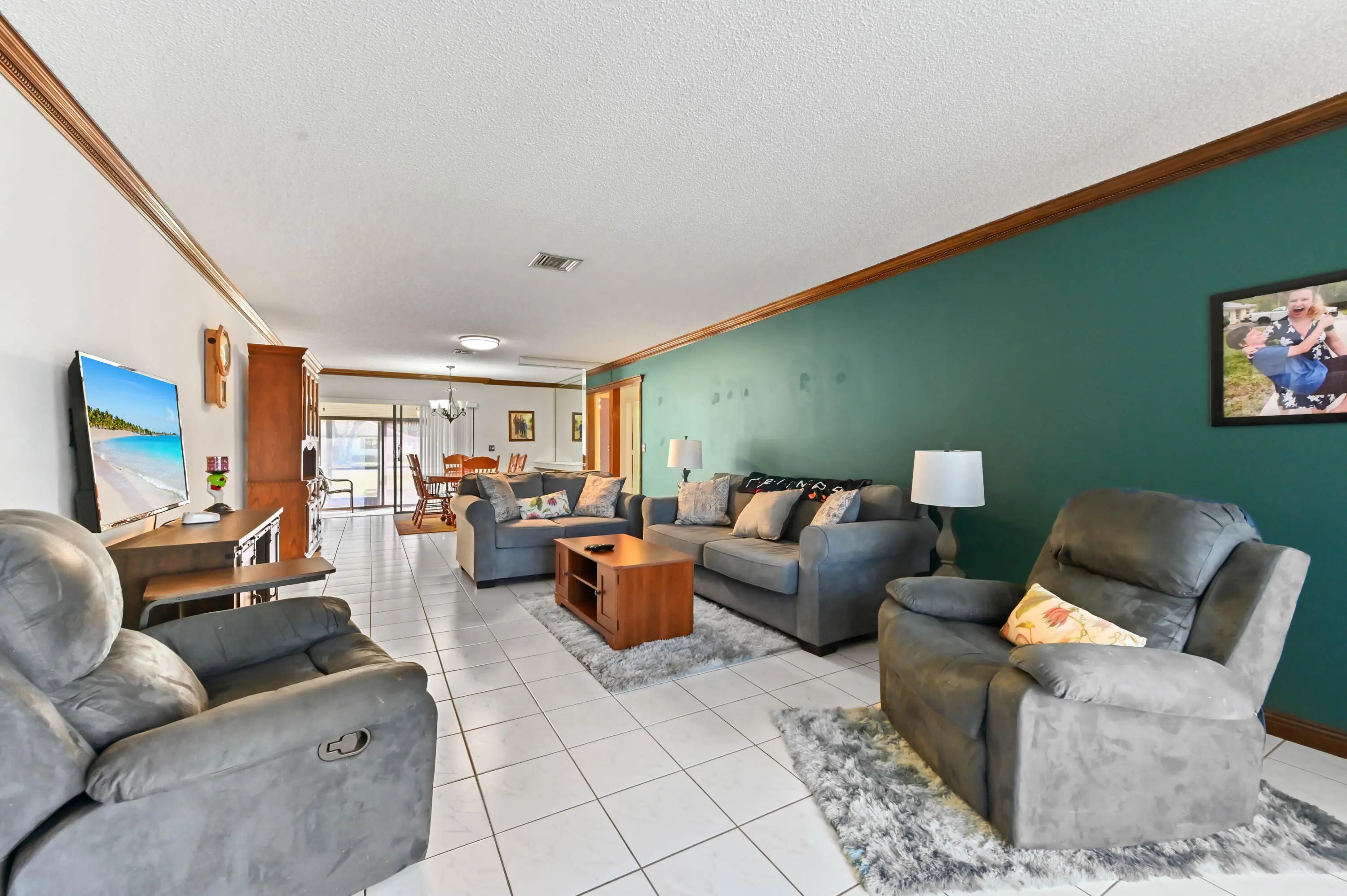 This delightful villa that perfectly blends comfort with functional living in a serene waterfront setting is PRICED TO SELL!. A paved driveway leads to the attached single-car garage and a private side entrance, welcoming you into a spacious interior defined by cool tile flooring in the main living areas. The heart of the home is the bright and airy kitchen, featuring crisp white cabinetry, a stainless steel refrigerator, and a convenient pass-through window to the formal dining room--ideal for entertaining and keeping the chef connected to the conversation. The open-concept living space flows effortlessly into a versatile enclosed Florida room.
