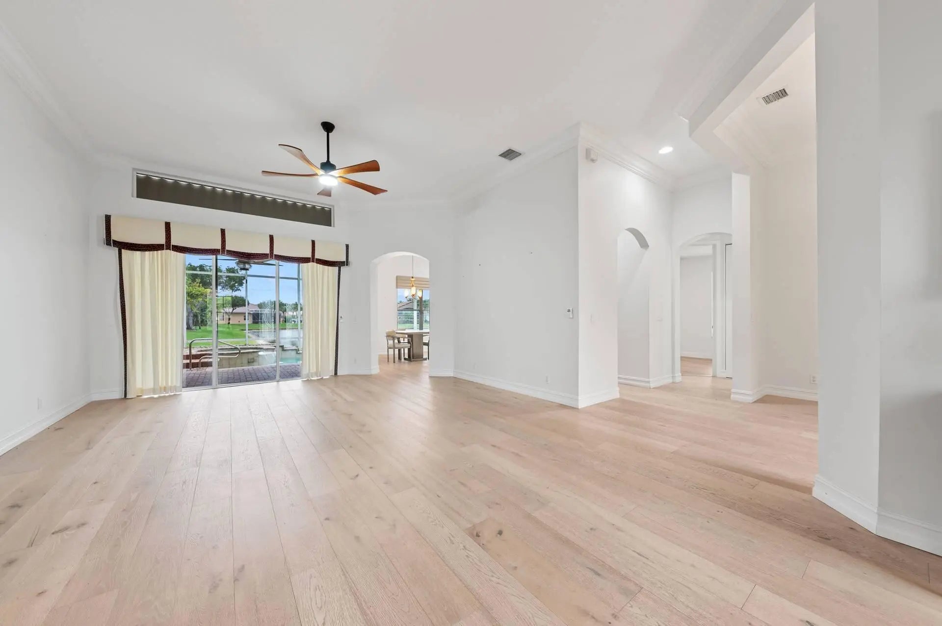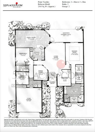 Welcome to this beautifully renovated Rubicon model in the guard-gated 55+ community of Ponte Vecchio. This single-story home offers approximately 2,308 square feet under air with 2 bedrooms, 2 dens (ideal for additional bedrooms or office space), and 2 full bathrooms in an open, airy floor plan.Recent updates include a brand-new roof (2024), a new washer and dryer tower, new bedroom flooring, updated bathrooms, fresh interior paint, new lighting and fans, new kitchen countertops, and an epoxy-finished garage floor. The spacious primary suite features two walk-in closets, dual vanities, a separate shower, and a Roman tub. Enjoy outdoor living with a beautiful screened-in private pool overlooking the lake, providing a peaceful and private setting.