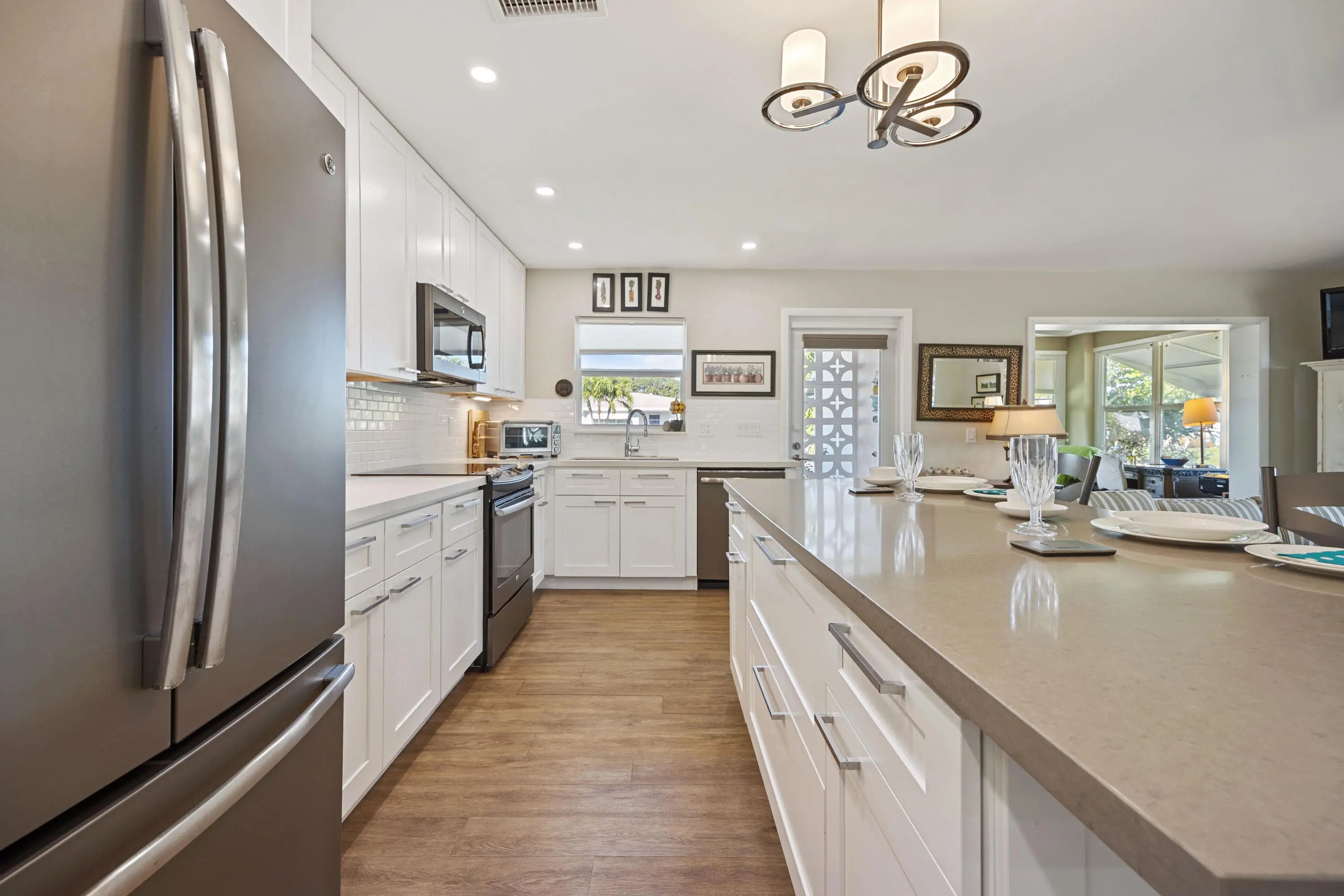 Stunning reminaged villa style condo in High Point West Section 2! Enjoy this fully remodeled residence w/ a beautifully updated kitchen that offers maple wood cabinets w/white shaker style finish, quartz countertops, subway tile backsplash, slate GE Profile appliances plus an island & pantry with so much storage! Florida room has been leveled w/ main living area & vented for AC. Both bathrooms have been completely remodeled w/ spa-like showers, sleek vanities & updated toilets. All lighting throughout the unit is on dimmers. Closet doors in guest bedroom have been updated/replaced. Smooth ceiling finish throughout. Newer light fixtures & fans. HVAC 2020, HWH 2016 and Updated Electrical panel! This villa is ready for the new owners to enjoy this turnkey unit!