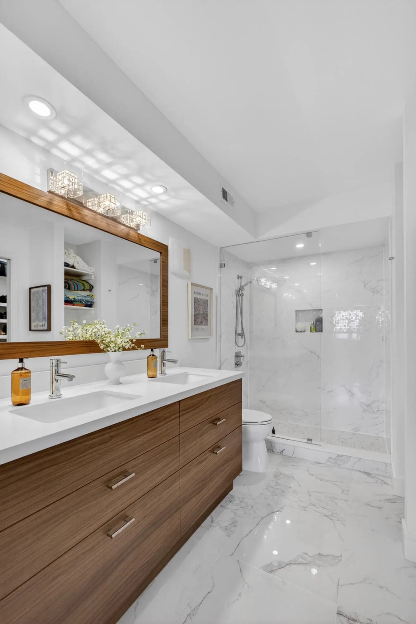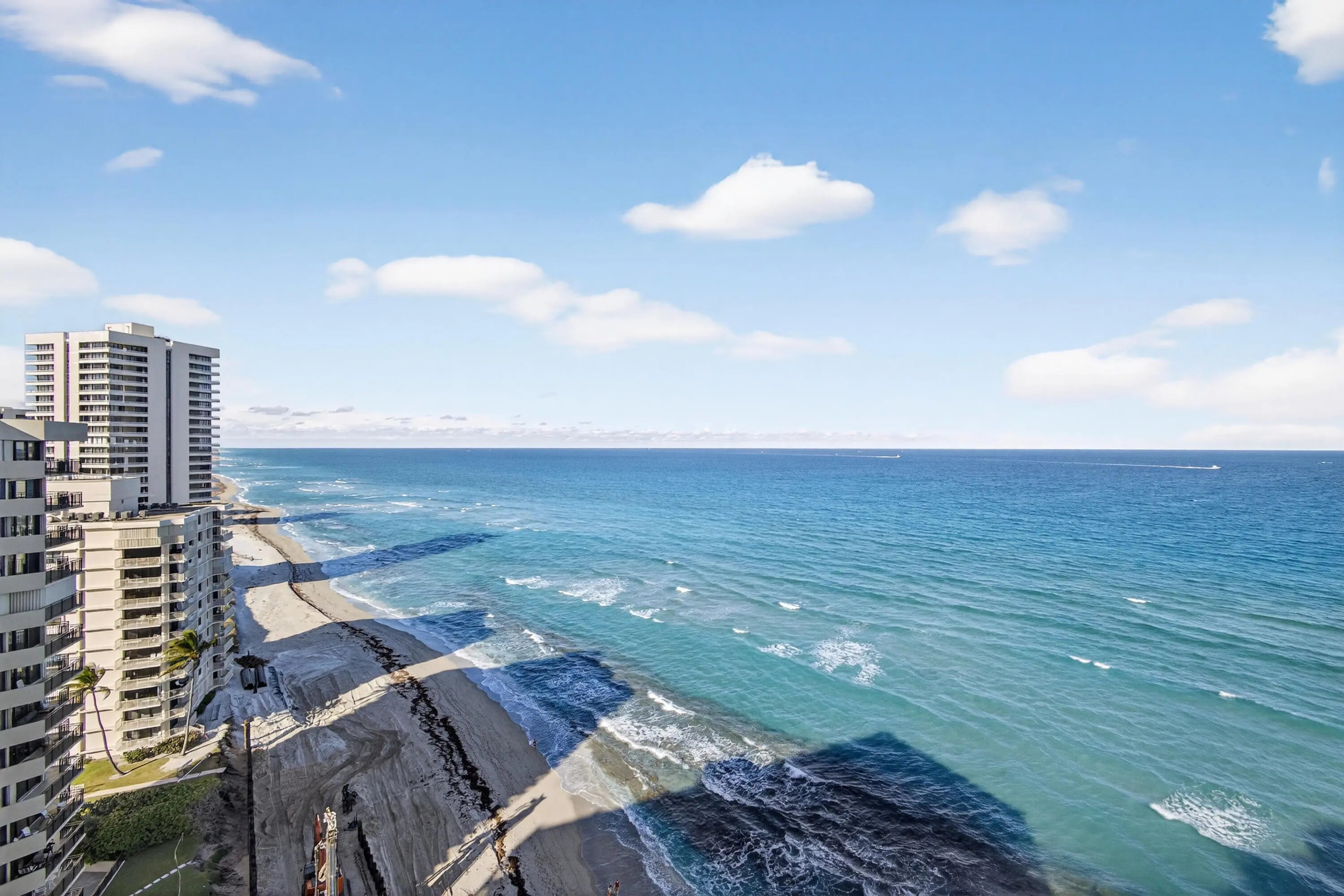 Spectacular Penthouse Living on Singer Island.Enjoy breathtaking panoramic views from this exceptional penthouse featuring a 37-foot wraparound balcony overlooking the turquoise Atlantic Ocean by day and the glittering night lights of the Intracoastal Waterway by night.This residence has been fully upgraded and showcases impact windows and sliders throughout, smooth ceilings, and elegant porcelain tile flooring. The open-concept kitchen is designed for both beauty and function, offering custom cabinetry, a striking quartz center island with seating for four, and seamless flow for entertaining. A washer and dryer are conveniently located in-unit, and spacious walk-in closets provide excellent storage.And most important miles of sandy beach at your footsteps.