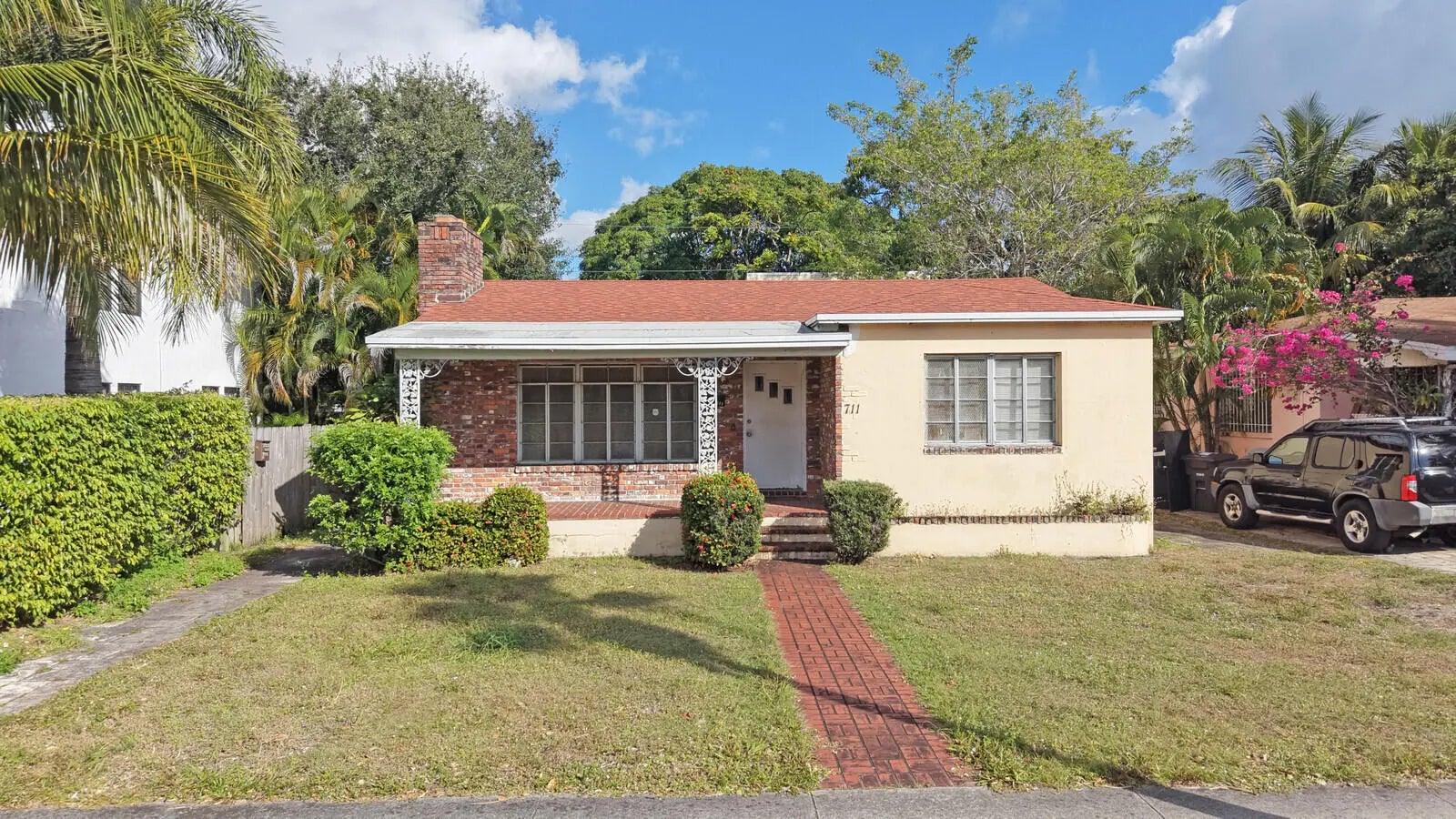This 1949 concrete block property offers 2,470 sq. ft. total with three units. The main 2-bed/1-bath house (1,117 sq. ft.) has central air, original wood floors, and a 3-year-old roof. The rear building includes a 1-bed/1-bath unit with a kitchen upstairs and a downstairs efficiency, each 600 sq. ft. There's also a garage and alley parking. Surrounded by historic homes, this property needs TLC but is perfect for an investor's vision!