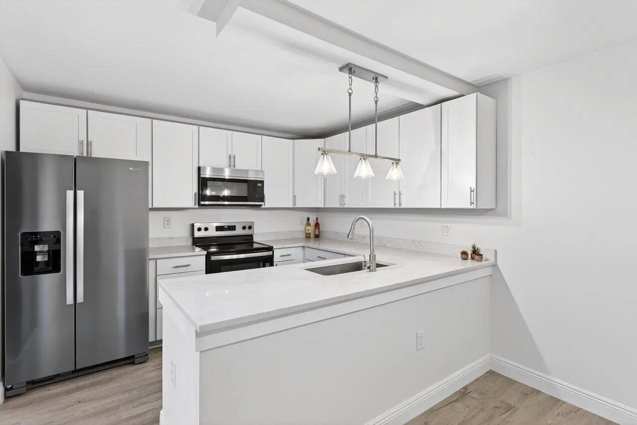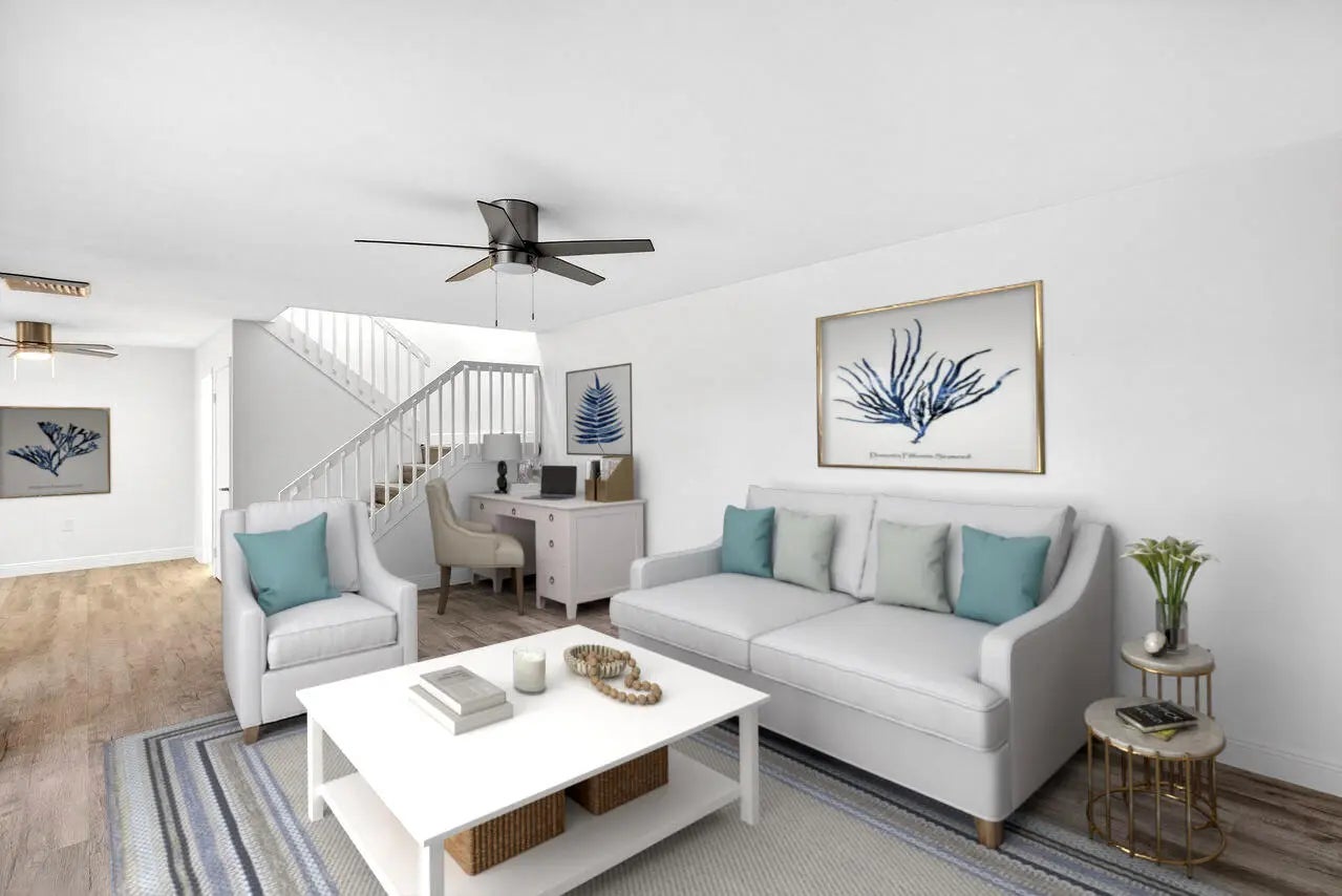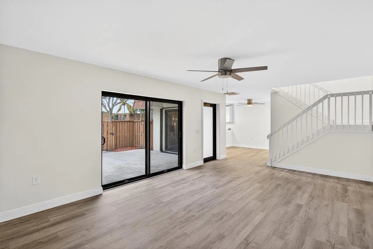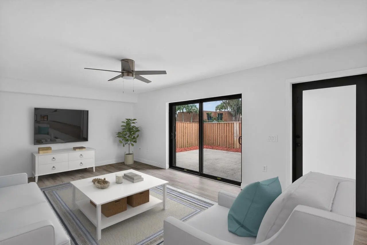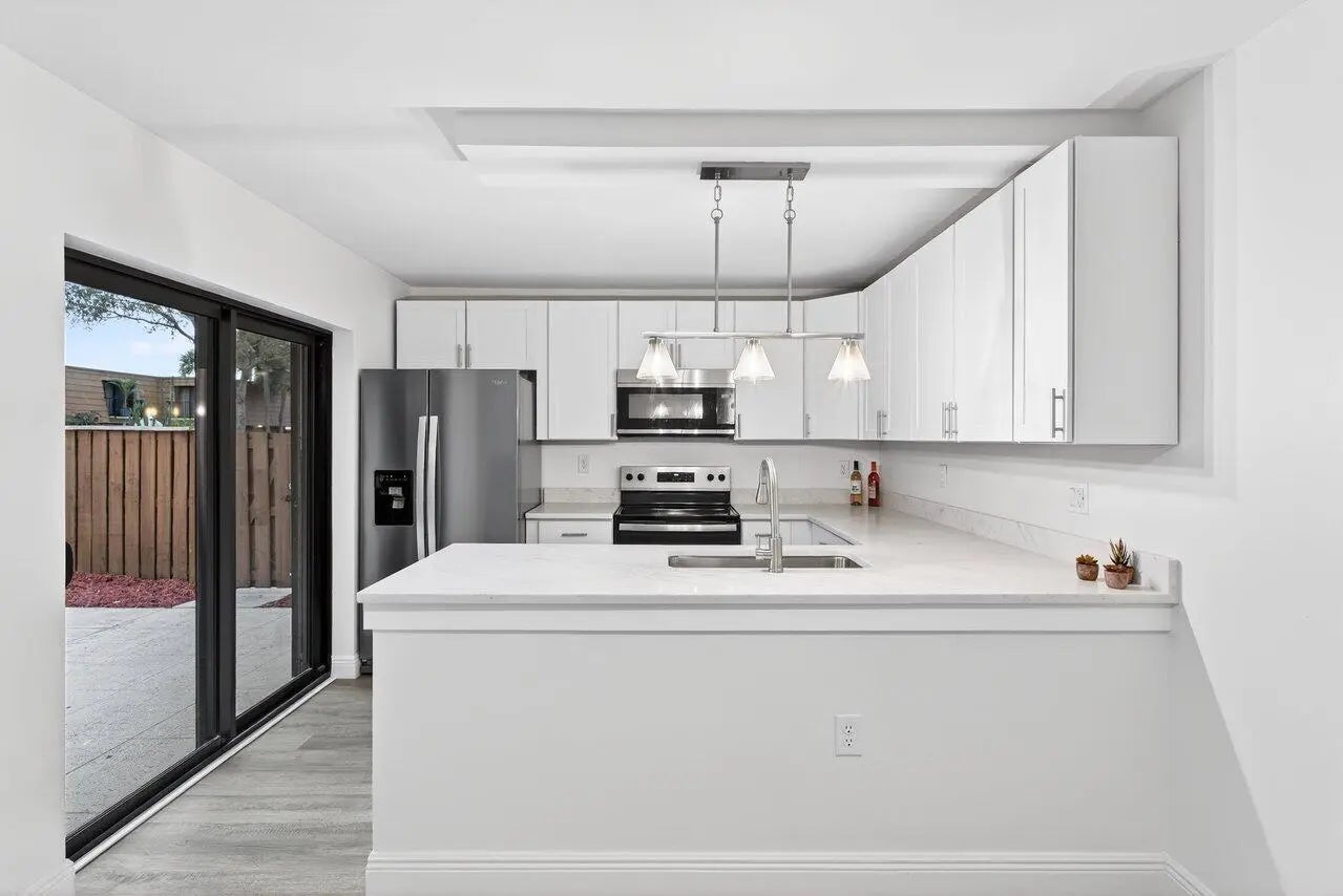 Highly sought-after Sandalwood at Boynton Beach! This all-ages, pet-friendly neighborhood offers an unbeatable convenience to shopping, dining, beaches, and PBI.This renovated 2-bedroom, 2.5-bath townhome is truly move-in ready. Both spacious bedrooms feature private en-suite baths and overlook a large, private, fenced courtyard through screened sliding impact doors--perfect for relaxing or entertaining.The open-concept layout showcases luxury vinyl plank flooring throughout, white shaker cabinets, quartz countertops, and an undermount farmhouse sink, complemented by brushed nickel accents. A complete 4-piece appliance package, updated vanities, lighting, ceiling fans, faucets, mirrors, exhaust fans, and new plumbing valves complete the fresh, modern look.