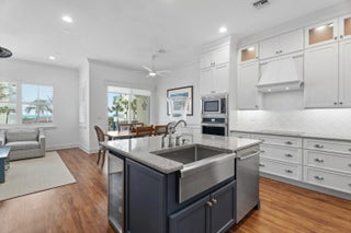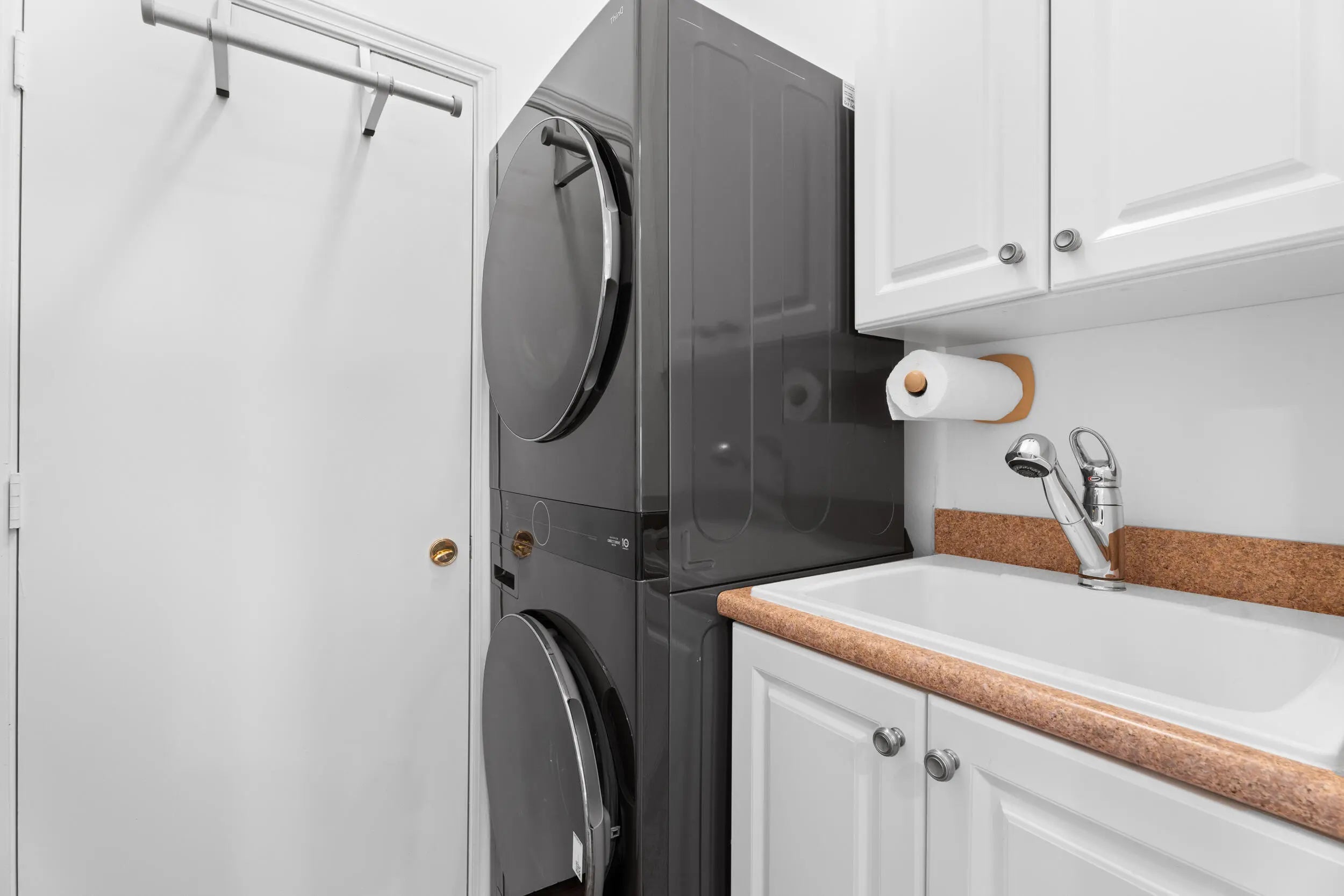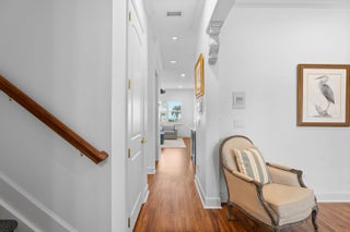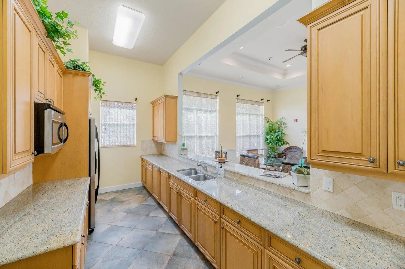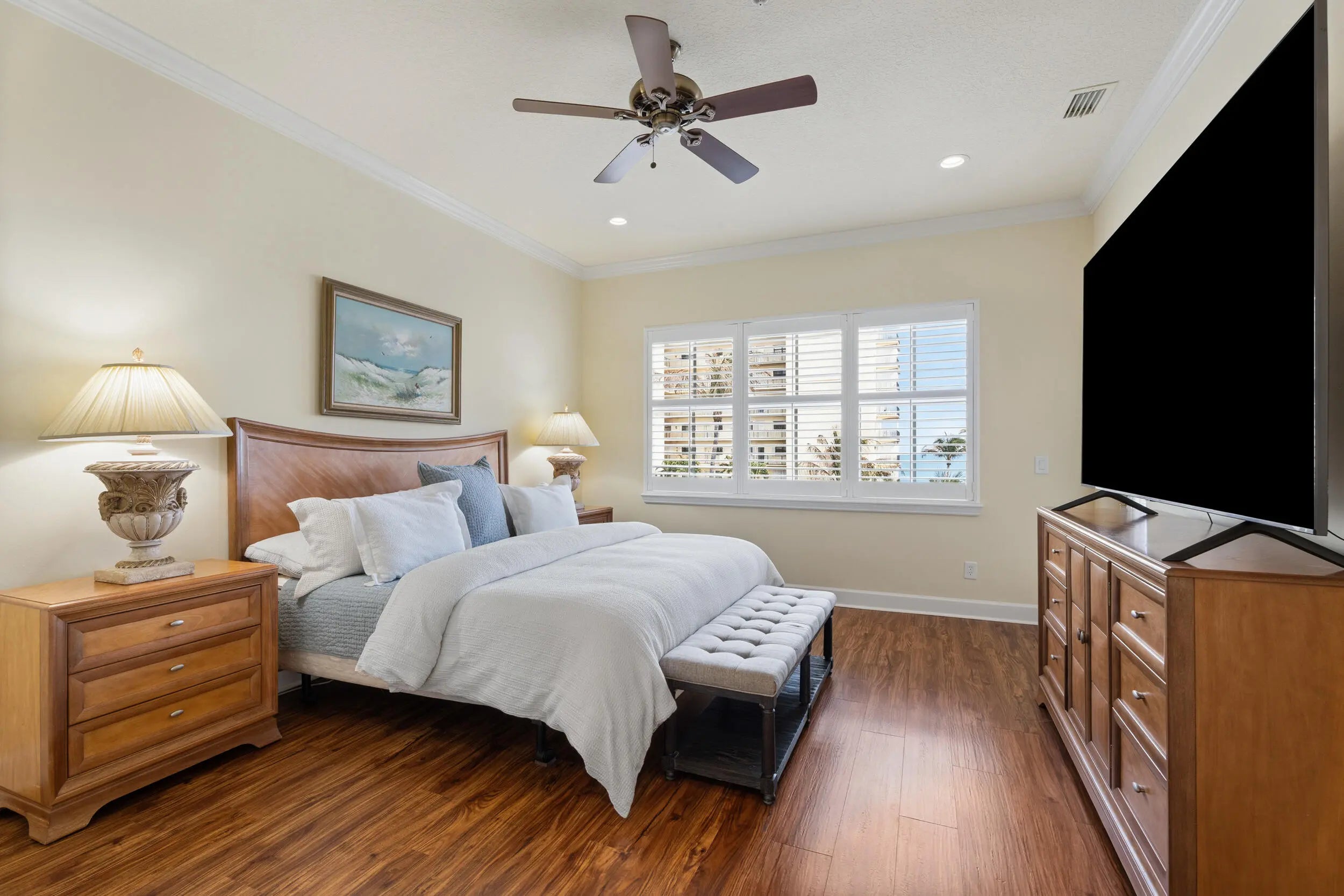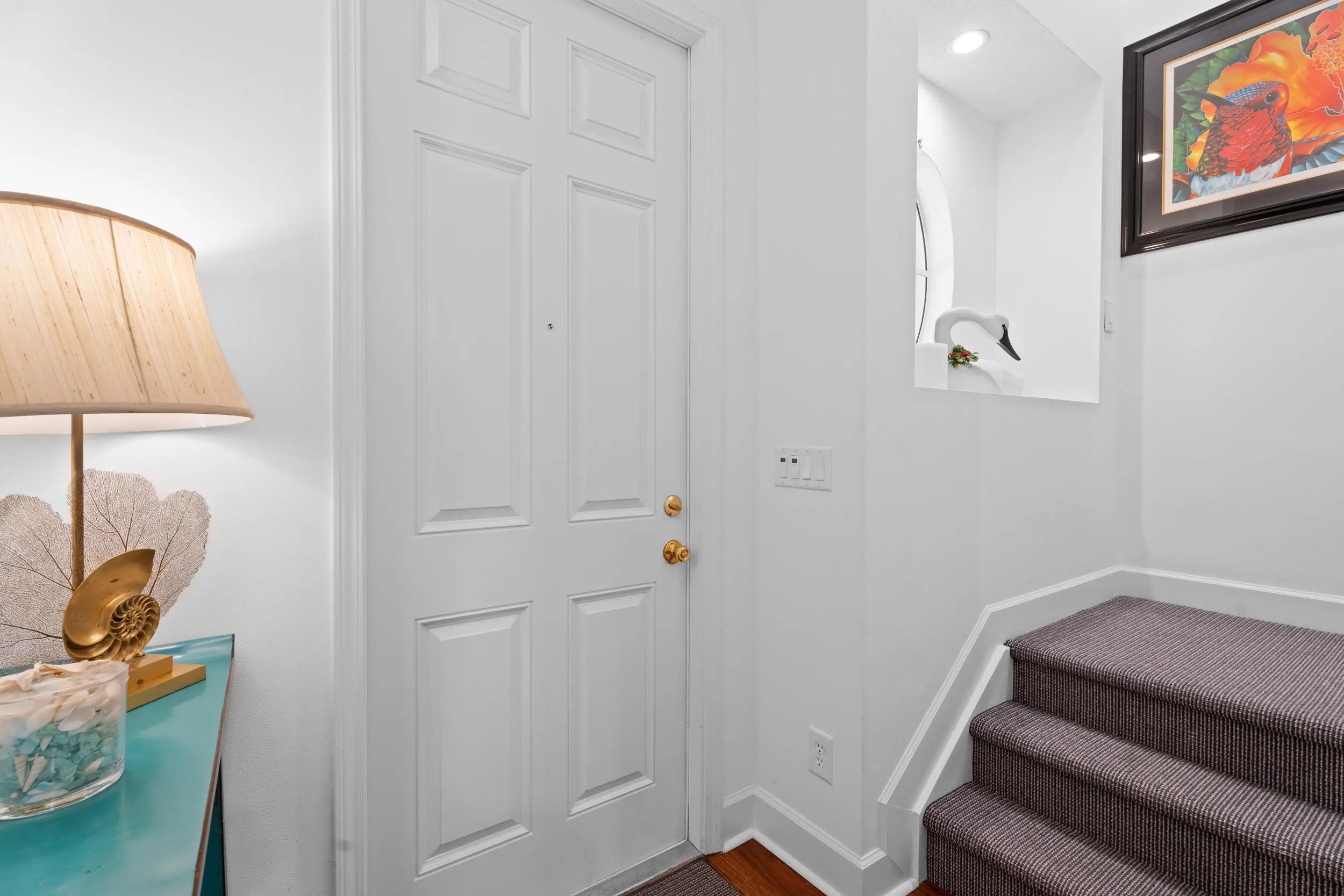 Experience coastal living at its best in this beautifully updated three-story townhouse, offering luxury vinyl wood flooring, plantation shutters, crown molding, a brand new AC, 10-foot ceilings throughout, and the convenience of a private elevator. The first floor offers a private guest suite with a full bathroom, ideal for visitors. Take the elevator or stairs to the second level, where a spacious open-concept living and dining area, along with a den and laundry room with a brand new full-size stacked washer/dryer, create an ideal space for everyday living and entertaining..The updated kitchen is a showstopper, showcasing ceiling-height white cabinetry, granite countertops, and stainless-steel appliances.The third floor offers a spacious primary suite with two walk-in closets with