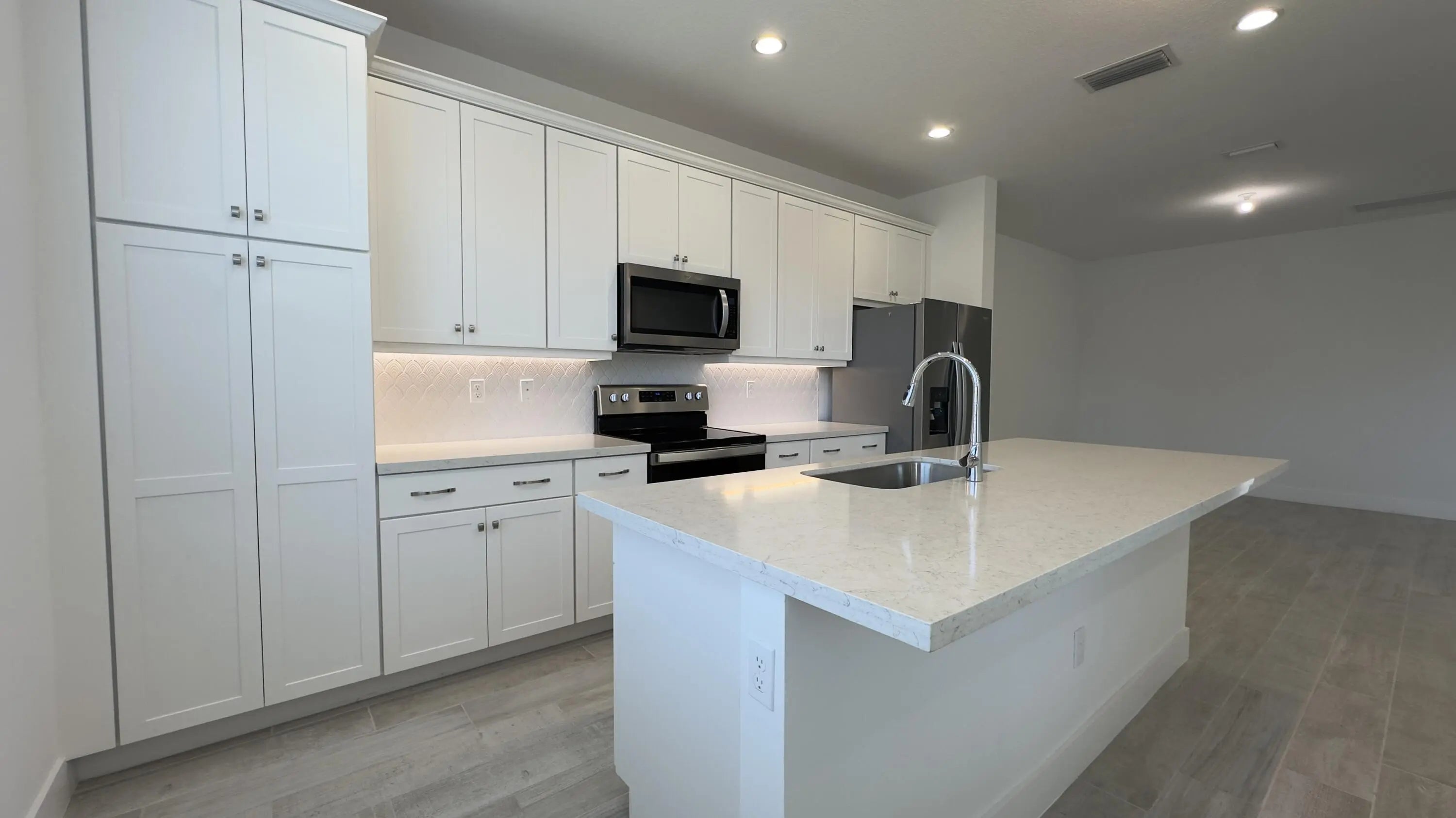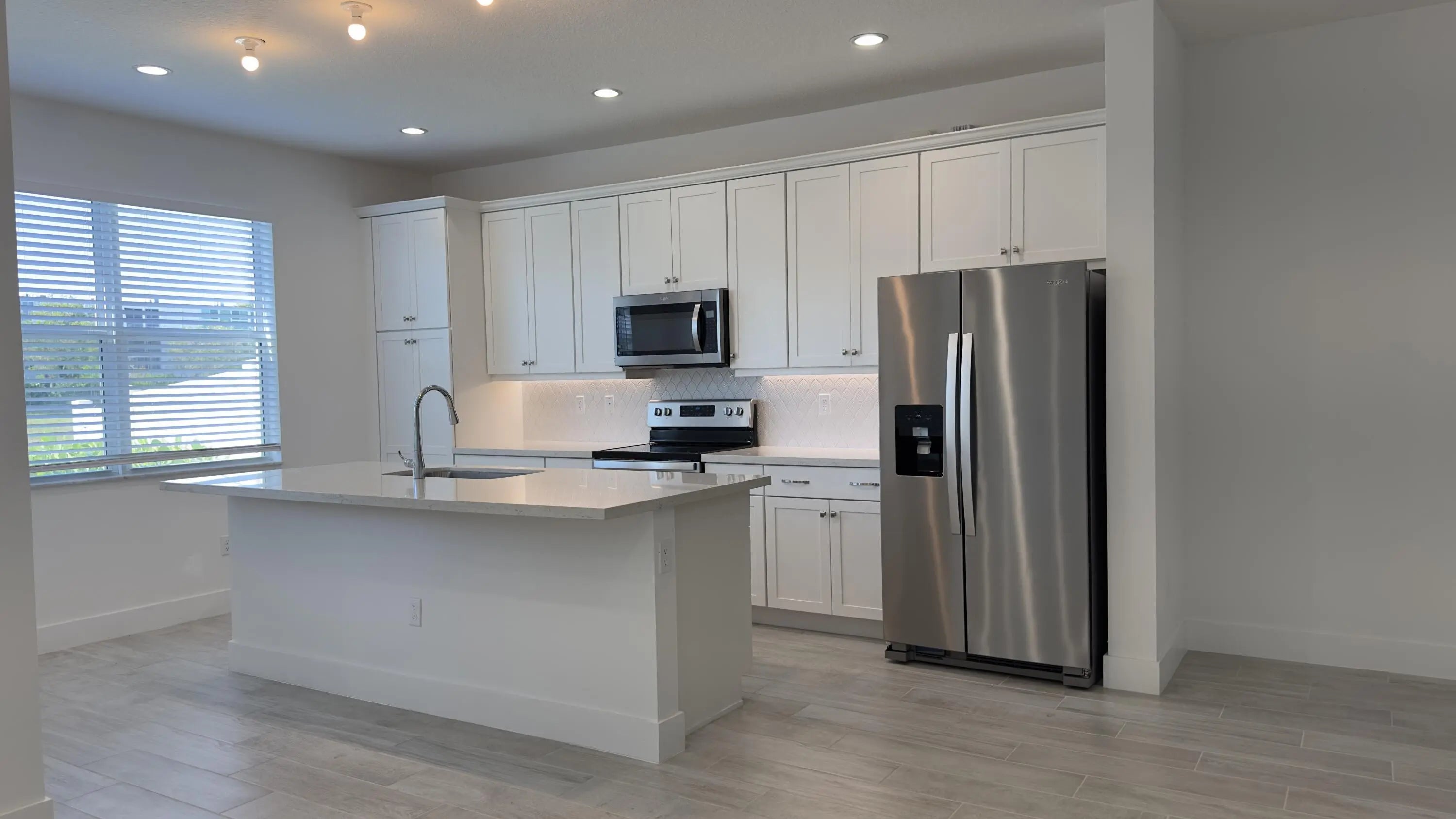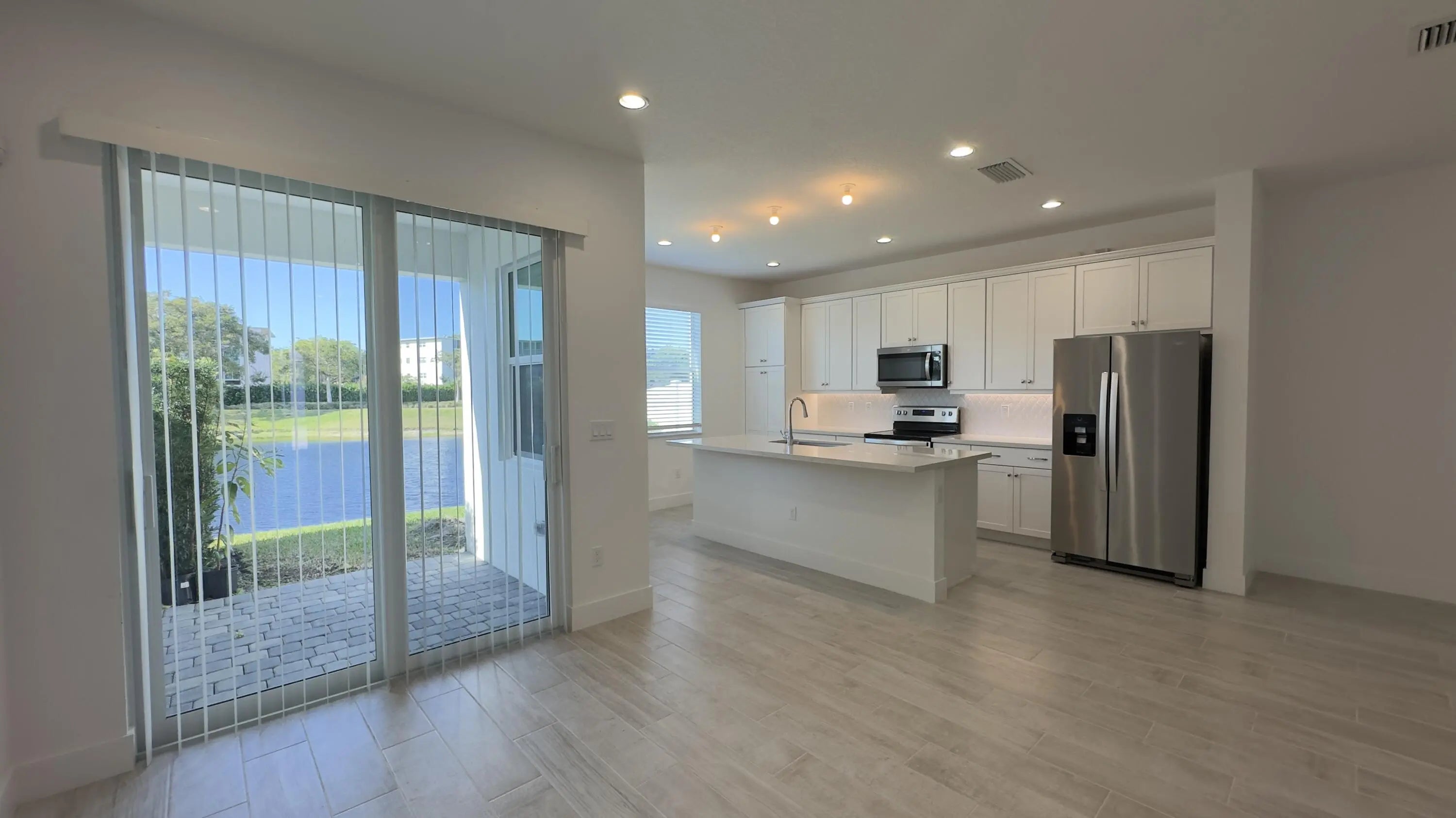 Stunning 2023 Toll Brothers townhouse in the gated community of Sandpiper Pointe, set on a premium lakefront lot. This barely lived-in 3-bedroom, 2.5-bath home with loft offers an open-concept layout, soaring 9.5' ceilings, impact windows and doors, and a covered patio with serene pond views. The modern kitchen features quartz countertops, white cabinetry, stainless steel appliances, and a large island. Upstairs includes a spacious loft, split-bedroom plan, and separate laundry room. Carpet upstairs, attached 1-car garage, and fenceable backyard. Low HOA ($247/month) includes cable & internet. Rental-friendly, pet-friendly, and ideally located near I-95, shopping, dining, places of worship, and just minutes from Deerfield Beach.