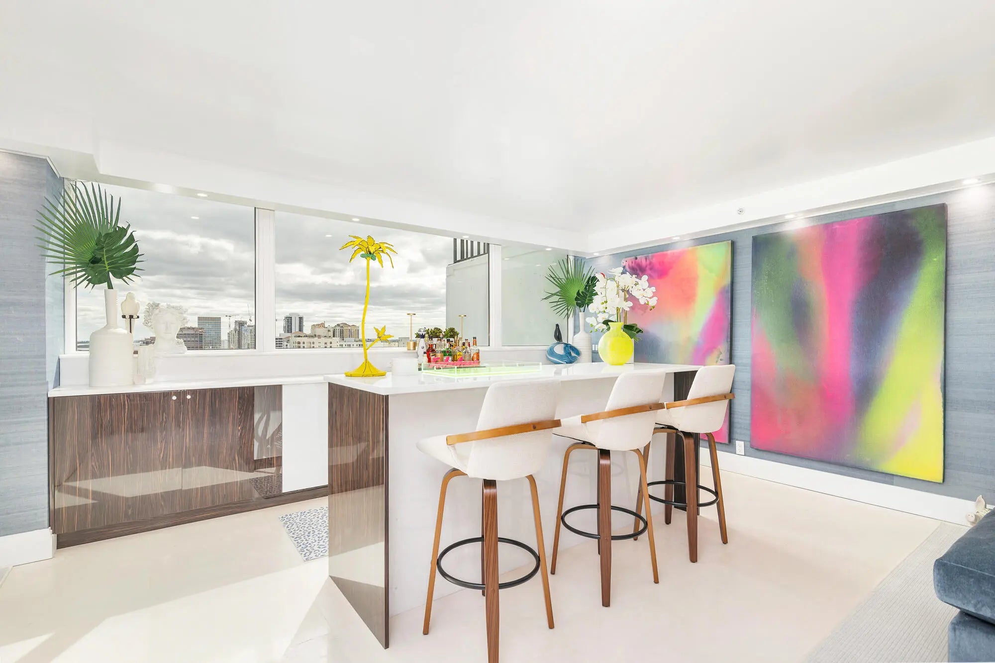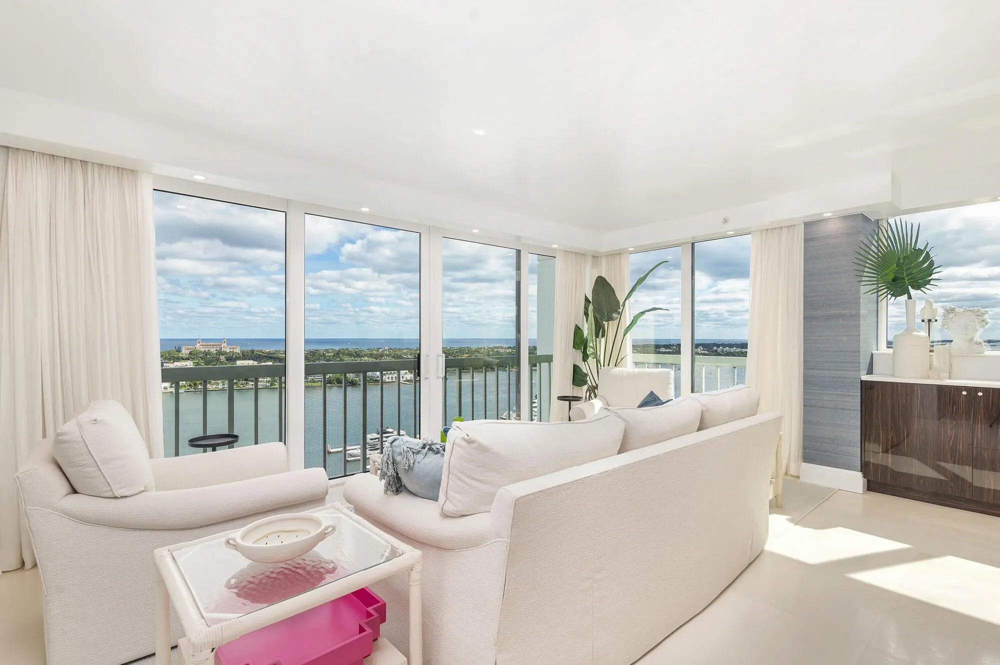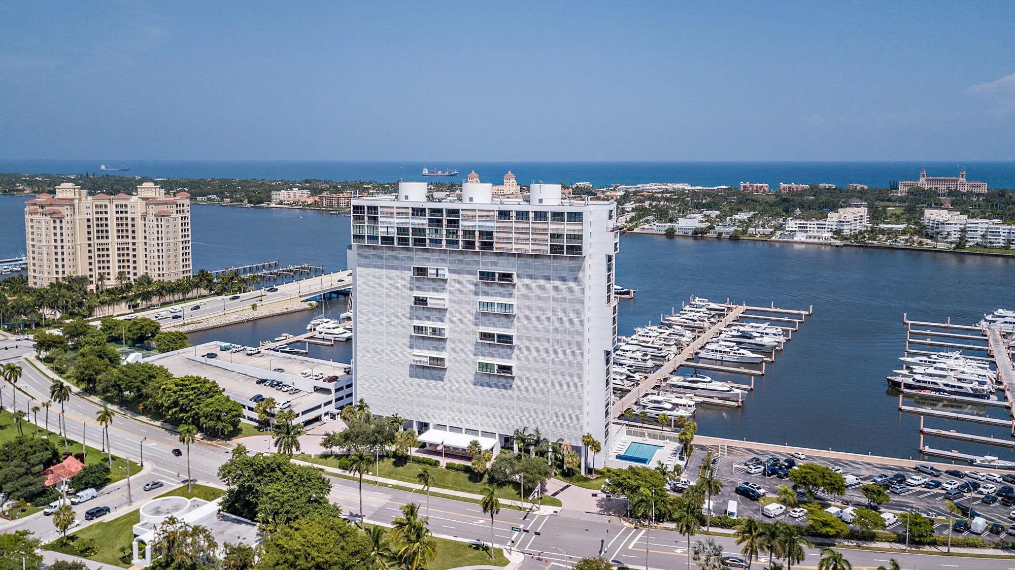 Located in one of only four direct waterfront buildings in downtown West Palm Beach, this penthouse offers sweeping, mesmerizing water views from every room, including the Intracoastal, ocean, marina and city vistas. The residence has undergone a complete high-end renovation, featuring a quartz entertaining bar with under-mount LED lighting, a modern kitchen, Thermador wine refrigerator, multiple living and entertaining areas, spacious bedrooms, and a large walk-in closet in the primary suite. Ideally located near the North Bridge, Royal Poinciana Plaza, Palm Harbor Marina, shopping, and dining. Includes two garage parking spaces. Full-service, pet-friendly building with 24/7 doorman and security, valet parking, swimming pool, fitness center, tennis, and pickle-ball courts.