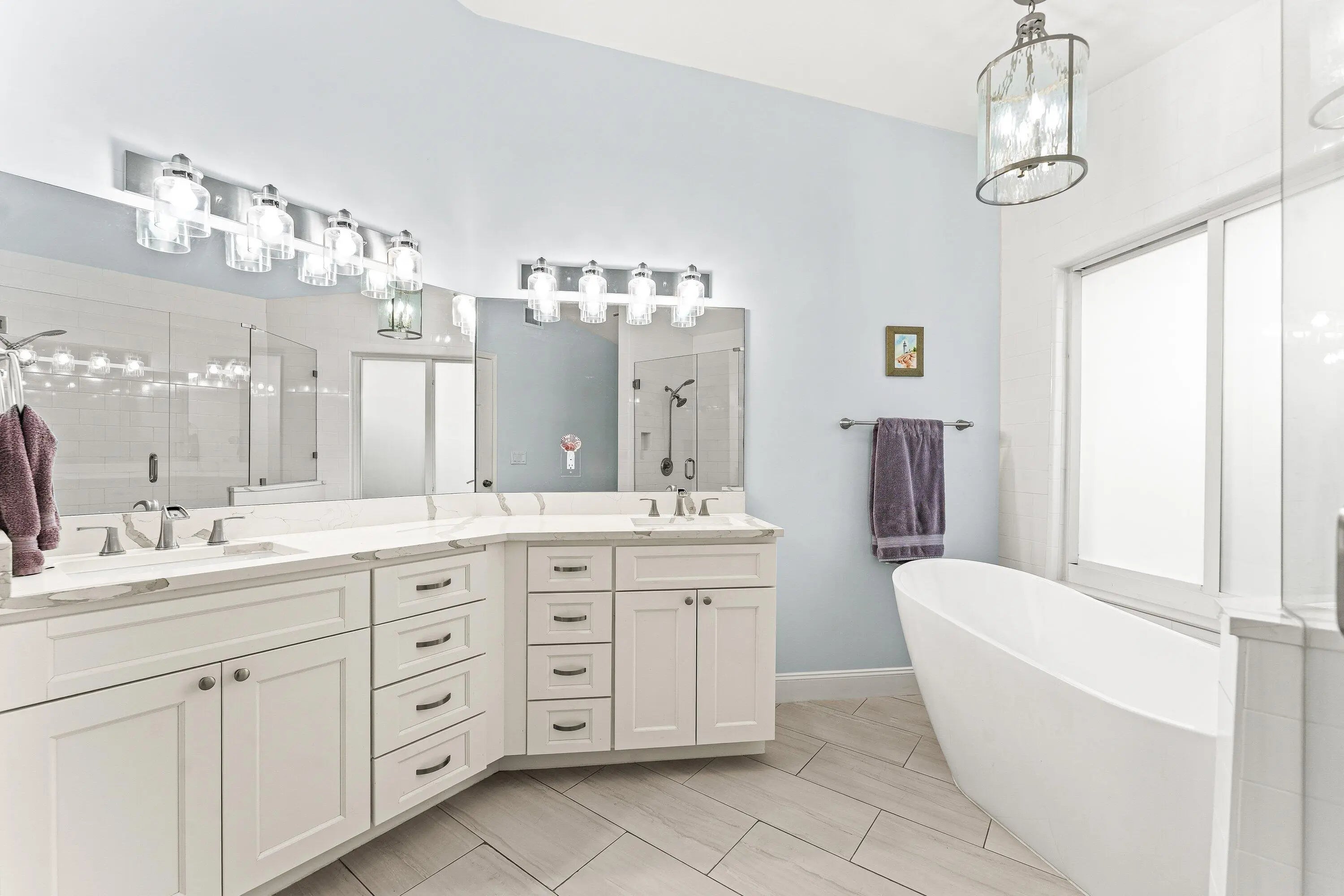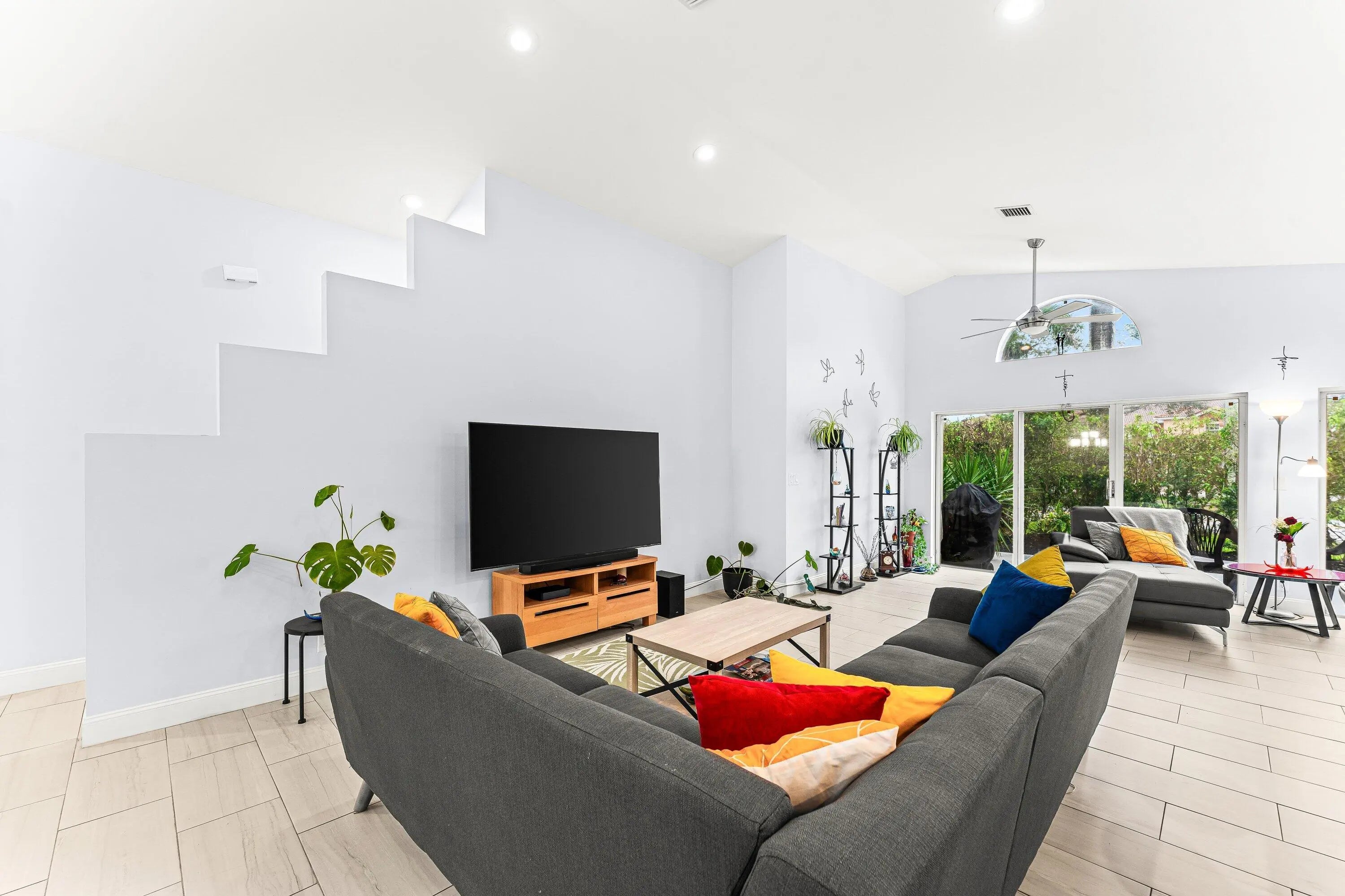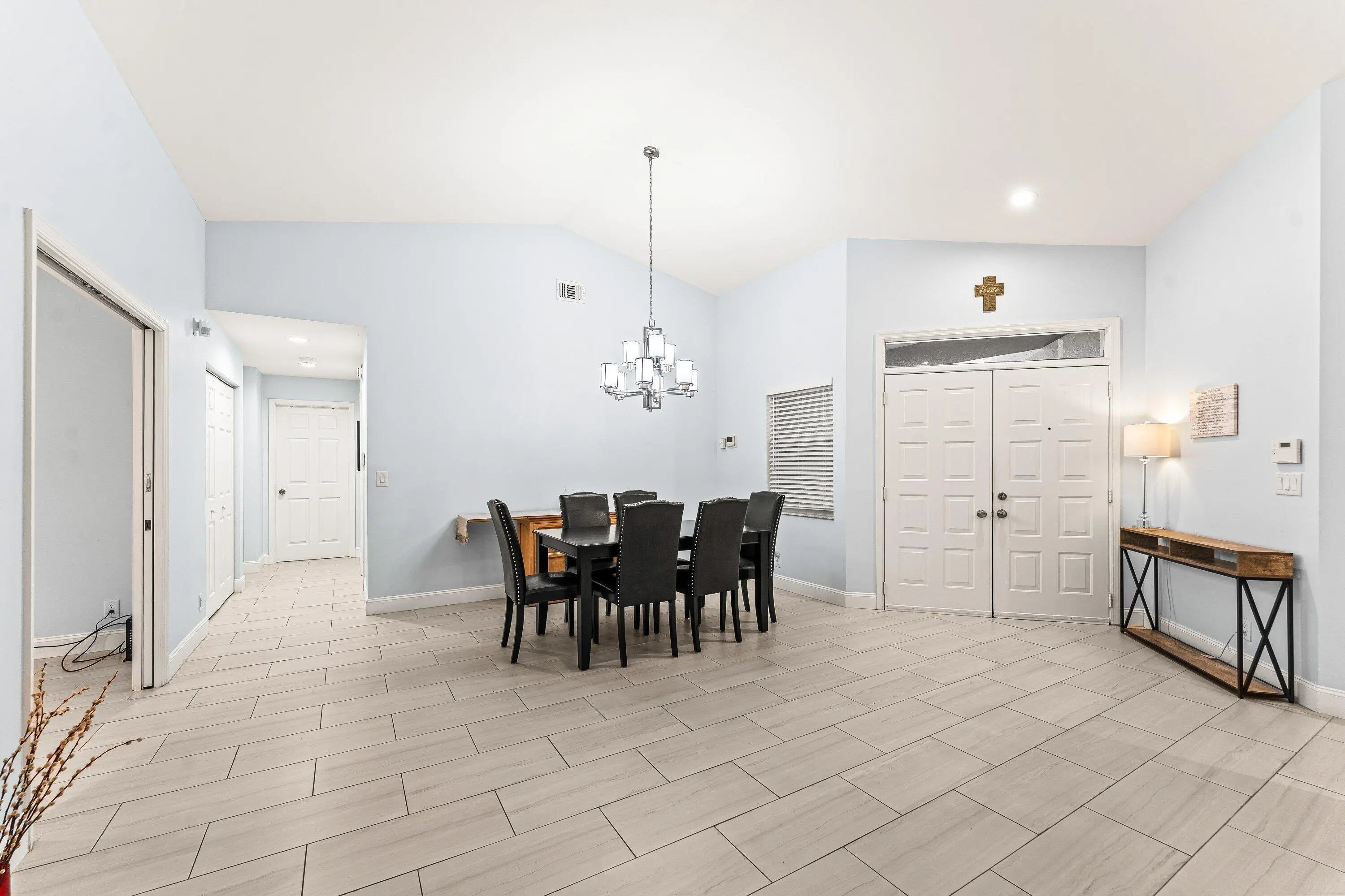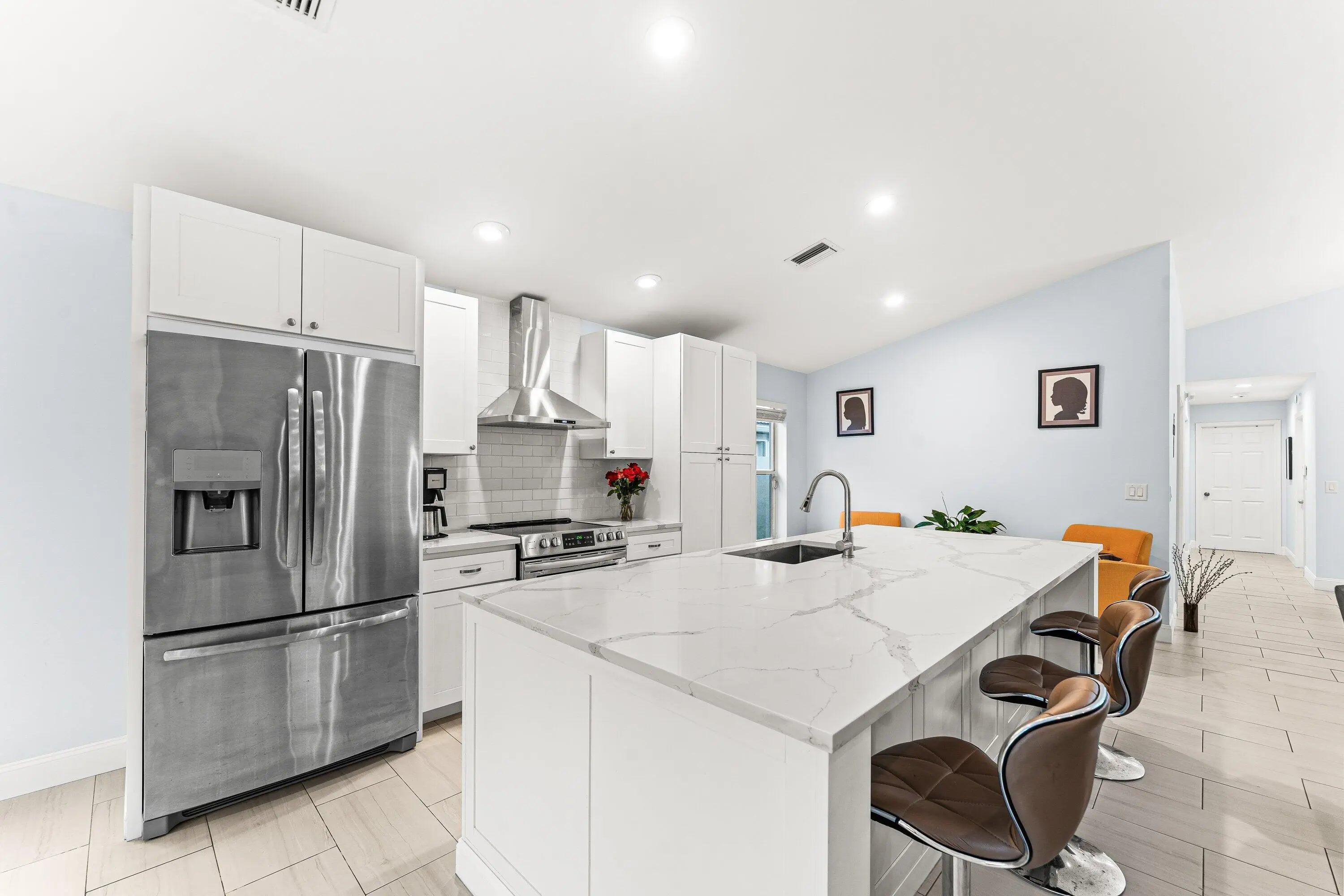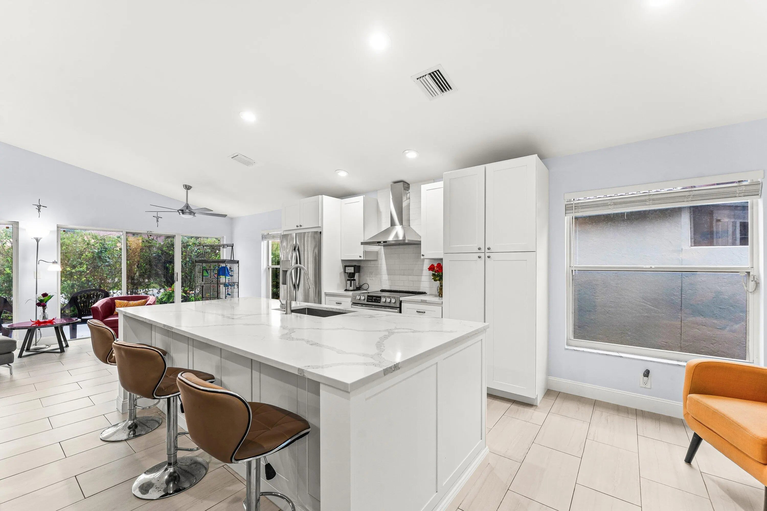 Updated single-family home with a 2020 barrel tile roof and transferable warranty. Open great room with oversized kitchen island, solid wood soft-close cabinetry, stone countertops, stainless steel appliances, and drawer microwave. Porcelain tile throughout with 51/2'' baseboards. Spacious primary bath features floor-to-ceiling tile, dual sinks, stone counters, glass shower, soaking tub with ambient lighting, and a new impact window. Impact-rated hurricane 2-car garage door.Located in the gated 55+ community of Southwind Estates at Palm Isles. Enjoy an active lifestyle with a newly renovated 50,000-sq-ft clubhouse nearing completion, offering a 600-seat theater, indoor & outdoor pools, cafe, fitness center, tennis, pickleball, shuffleboard, billiards, card & game rooms, sauna, and socia