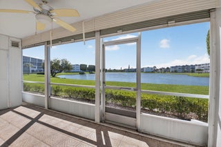Lovely 2 bedroom 1.5 bathroom first floor unit. Bright and cheerful and freshly painted, it has an updated kitchen with wood cabinets and granite counters. Ample storage makes cooking a breeze. Living/dining area is nicely sized. Primary bedroom overlooks the lake and has generous closet space. Second bedroom has sliding doors to lakeside lanai for tranquil views. Both bathrooms have been updated. This highly desirable first floor unit is close to the assigned parking space. Century Village is a complete lifestyle community. State of the art clubhouse with theater, library. fitness, meeting rooms and so much more. Multiple clubs and activities to keep you busy day and night. Courtesy bus runs through the community as well as off site for dining and shopping. Come live the Florida Life.Monthly $460.82 PLUS Rec Lease $307.54 TOTAL $768.36 monthly
