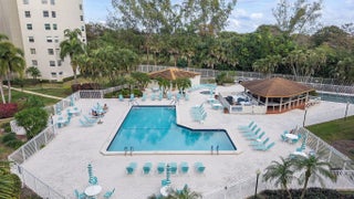 Welcome to this beautifully updated condo offering a perfect blend of style and comfort. The heart of the home is the stunning kitchen, featuring rich wood cabinetry, granite countertops, stainless steel appliances, and a convenient breakfast bar. The open-concept living area is bright and spacious, highlighted by sleek tile flooring and large sliding glass doors that fill the space with natural light.Relax in the generous primary suite, featuring wood-look flooring, a ceiling fan, and a private en-suite bathroom with a modern vanity and a glass-enclosed shower. A second bedroom offers flexibility for guests or a home office, complete with ample closet space. Step out onto the screened-in balcony to enjoy peaceful views of the sparkling community pool and lush greenery--the perfect