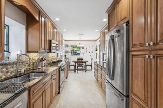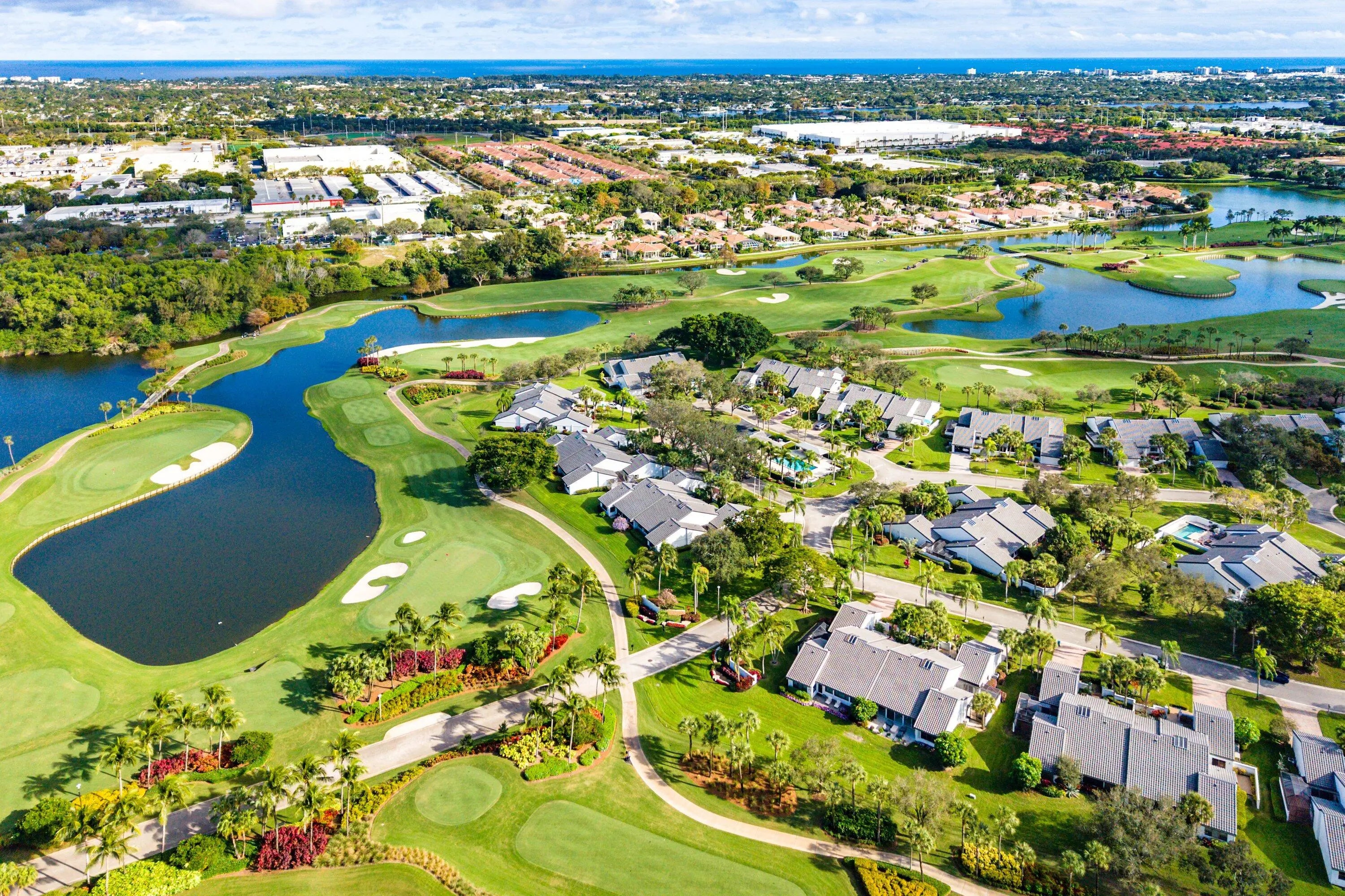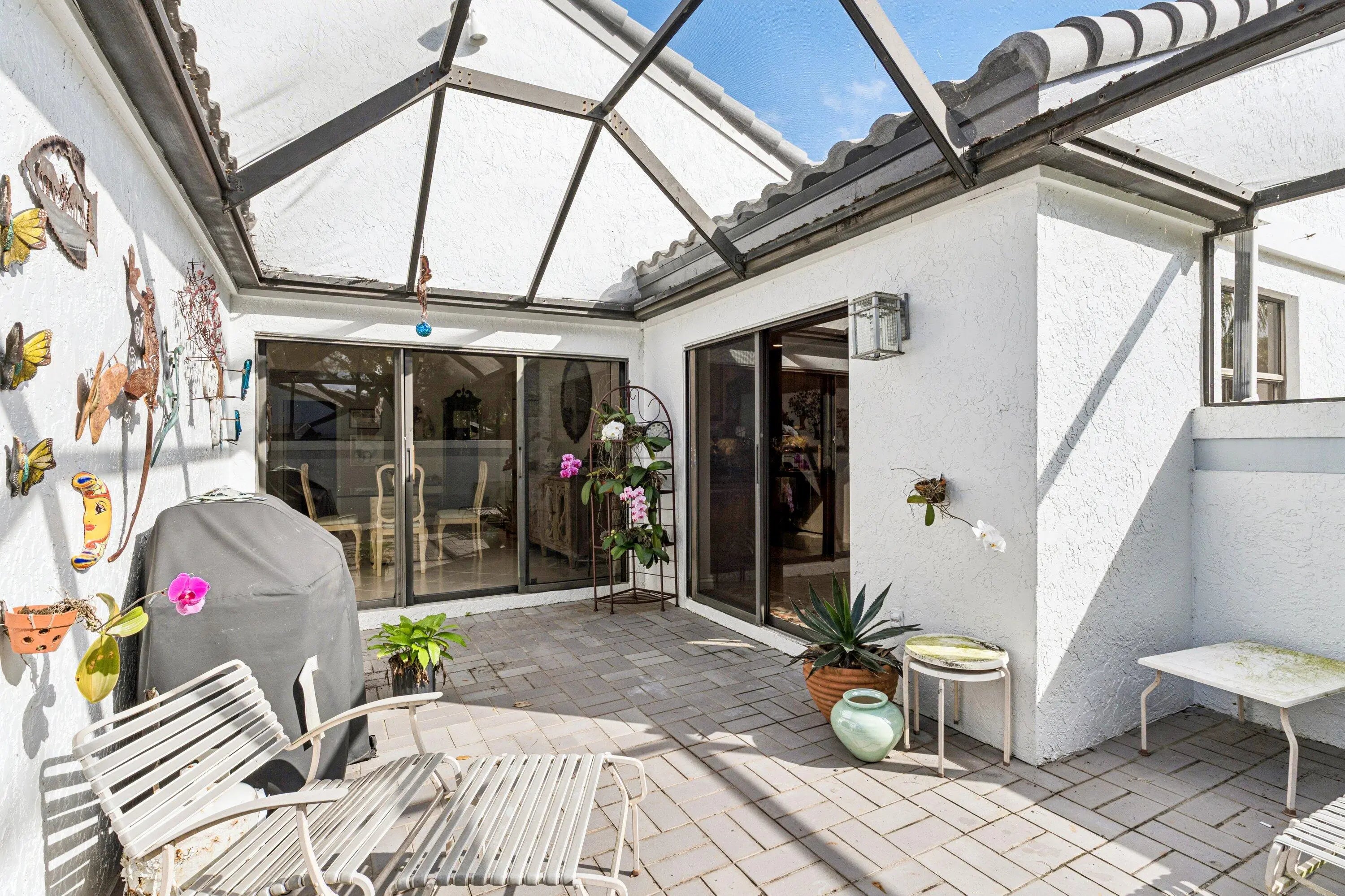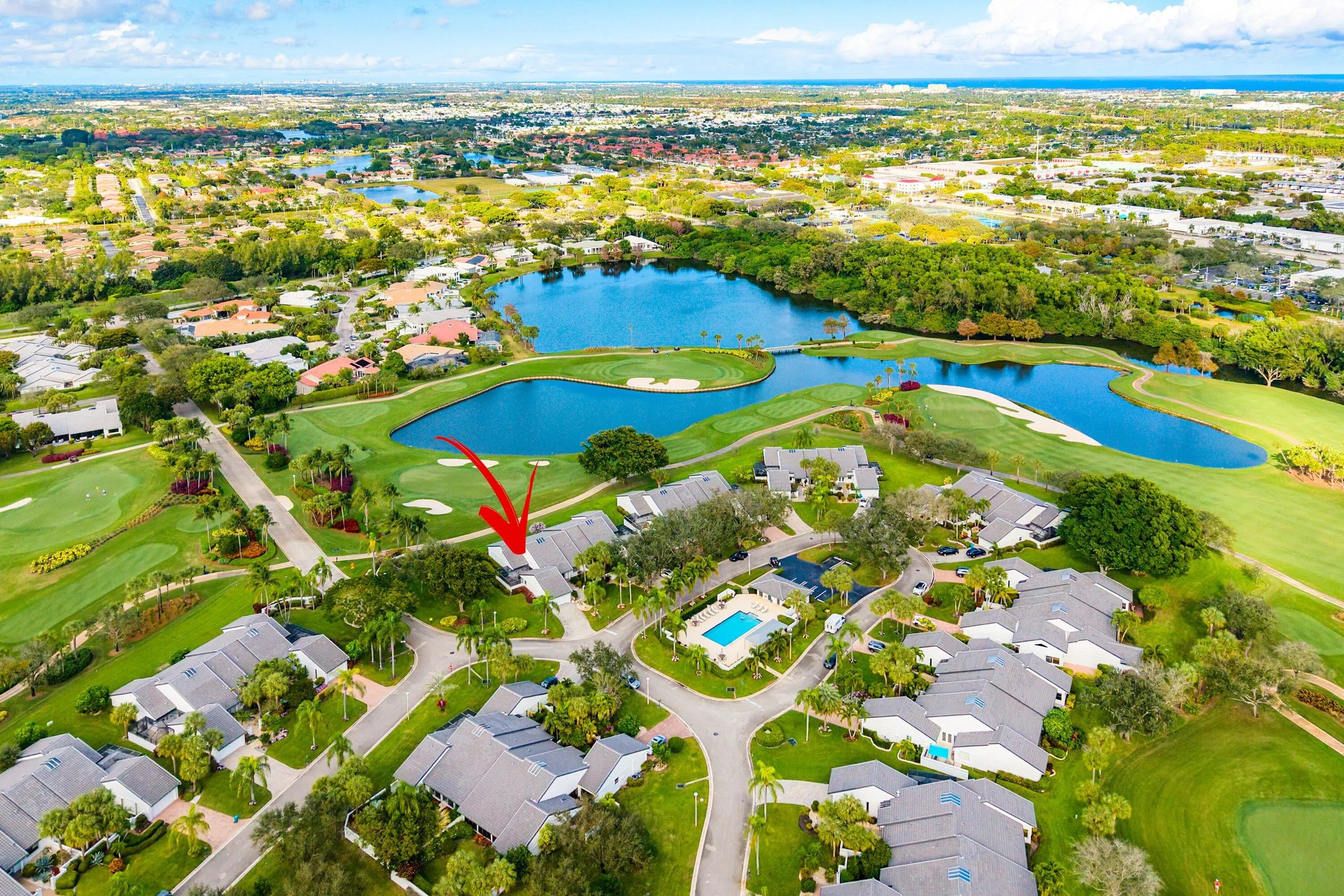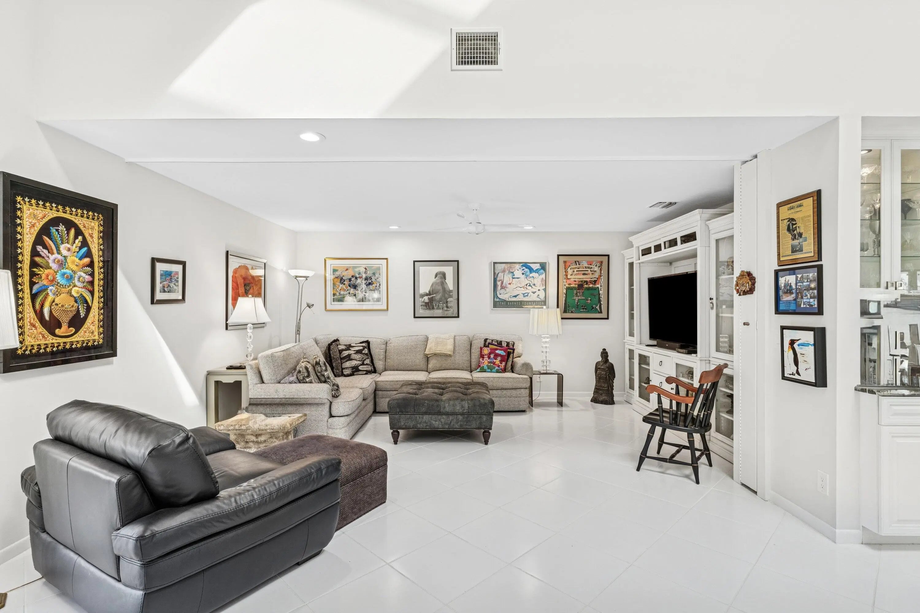 Villas of Windsor is among Hunters Run's most exclusive enclaves, prized for the most spacious villa floor plans and panoramic golf-and-water views. At 71 Windsor Circle, dramatic vistas of the East Course and shimmering lakes pair with 22' cathedral ceilings and a skylight that fills the home with natural light. Offering 2,600+ SF, the spacious layout includes an enclosed Florida room under A/C and a screened atrium for effortless indoor-outdoor living. The primary suite features an updated bath with high-end fixtures in transitional style. The split-bedroom layout provides a guest bedroom, convertible den, full bath, and powder room. The eat-in kitchen has been updated with solid wood cabinetry, granite counters and stainless appliances. Relax at the Windsor Pool, steps from your door.