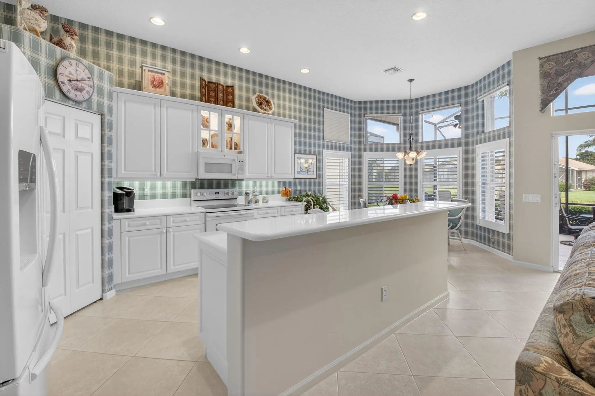 COME SEE THIS IMMACULATELY MAINTAINED CARIBBEAN MODEL ON THE WATER! NEWER ROOF (2022), A/C 2018, ACCORDION SHUTTERS, CENTRAL VACUUM, CROWN MOLDING IN THE FOYER, LIVING ROOM & DINING ROOM FOR A TOUCH OF ELEGANCE. NEUTRAL TILE ON THE DIAGONAL THROUGHOUT THE HOUSE EXCEPT THE PRIMARY BEDROOM. THE KITCHEN IS BATHED IN WHITE CABINETS, WHITE COUNTERTOPS & PLANTATION SHUTTERS W/ A WALK-IN PANTRY & A WARM, INVITING BREAKFAST NOOK. THE FAMILY ROOM HAS RECESSED LIGHTS, BUILT-INS AND SLIDER DOORS LEADING TO THE COVERED, EXTENDED & SCREENED-IN LANAI OVERLOOKING THE LAKE. PRIMARY BEDROOM IS ITS OWN LITTLE OASIS W/ A TRAY CEILING, DUAL FITTED CLOSETS & AN ENSUITE WITH DUAL SINKS, SOAKING TUB, WALK-IN SHOWER & A SEPARATE WATER CLOSET. THE GUEST BEDROOM HAS A BAY WINDOW & FITTED CLOSET (SEE MORE)->>