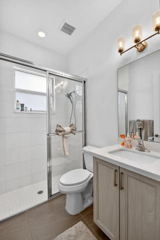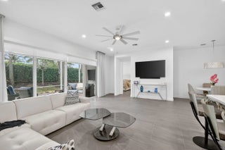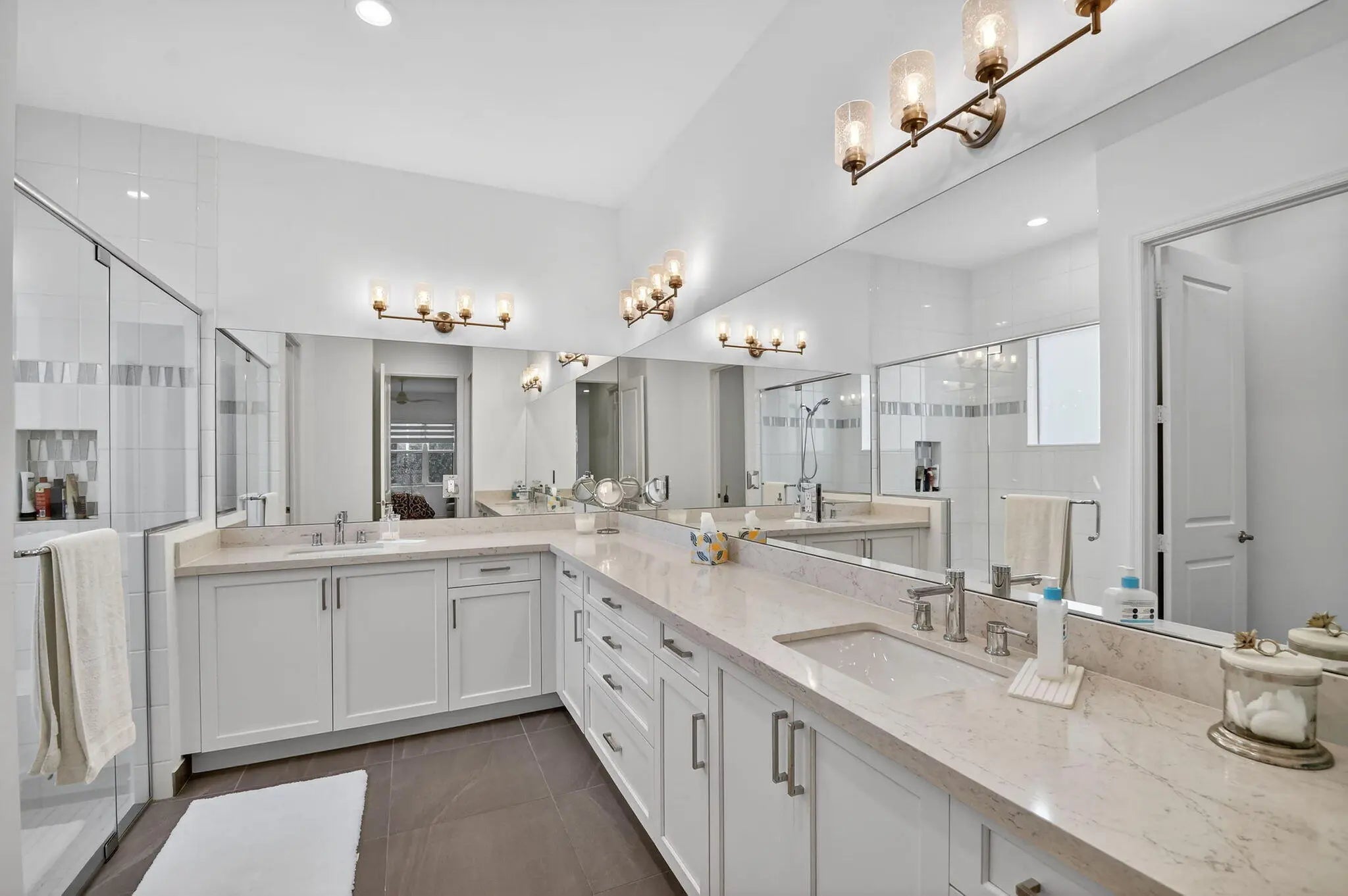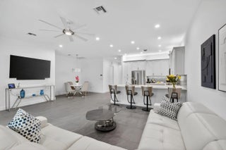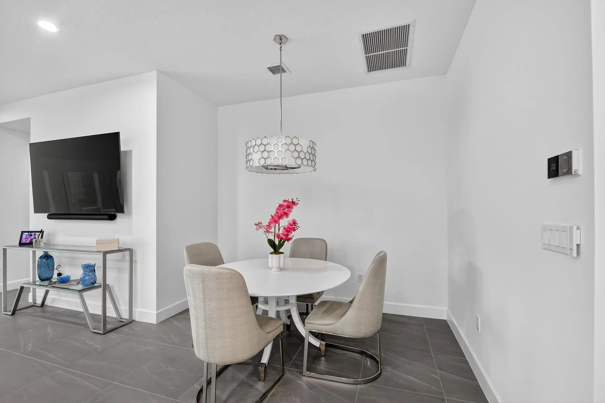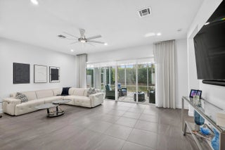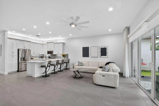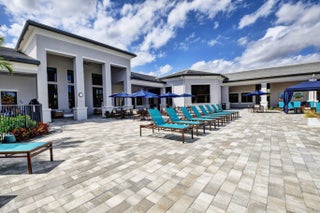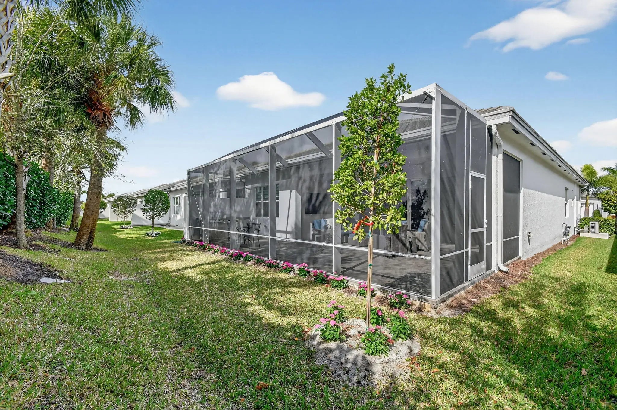 BETTER THAN NEW!!! Experience luxury living in Valencia Sound, one of Boynton Beach's premier 55+ community. This barely lived-in Sapphire model home offers 3 bedrooms and 2 bathrooms with extensive upgrades throughout.Striking contemporary stacked-stone exterior, upgraded landscaping, and a wide walkway welcome you inside to a bright, open floor plan with elegant 24'' x 24'' smoke-gray tile and a gallery-like feel. The upgraded kitchen features quartz countertops, gas cooking, upgraded appliances, and a glass-tile backsplash.The spacious primary suite includes two custom walk-in closets and a beautifully upgraded bath with extra cabinetry and quartz counters.