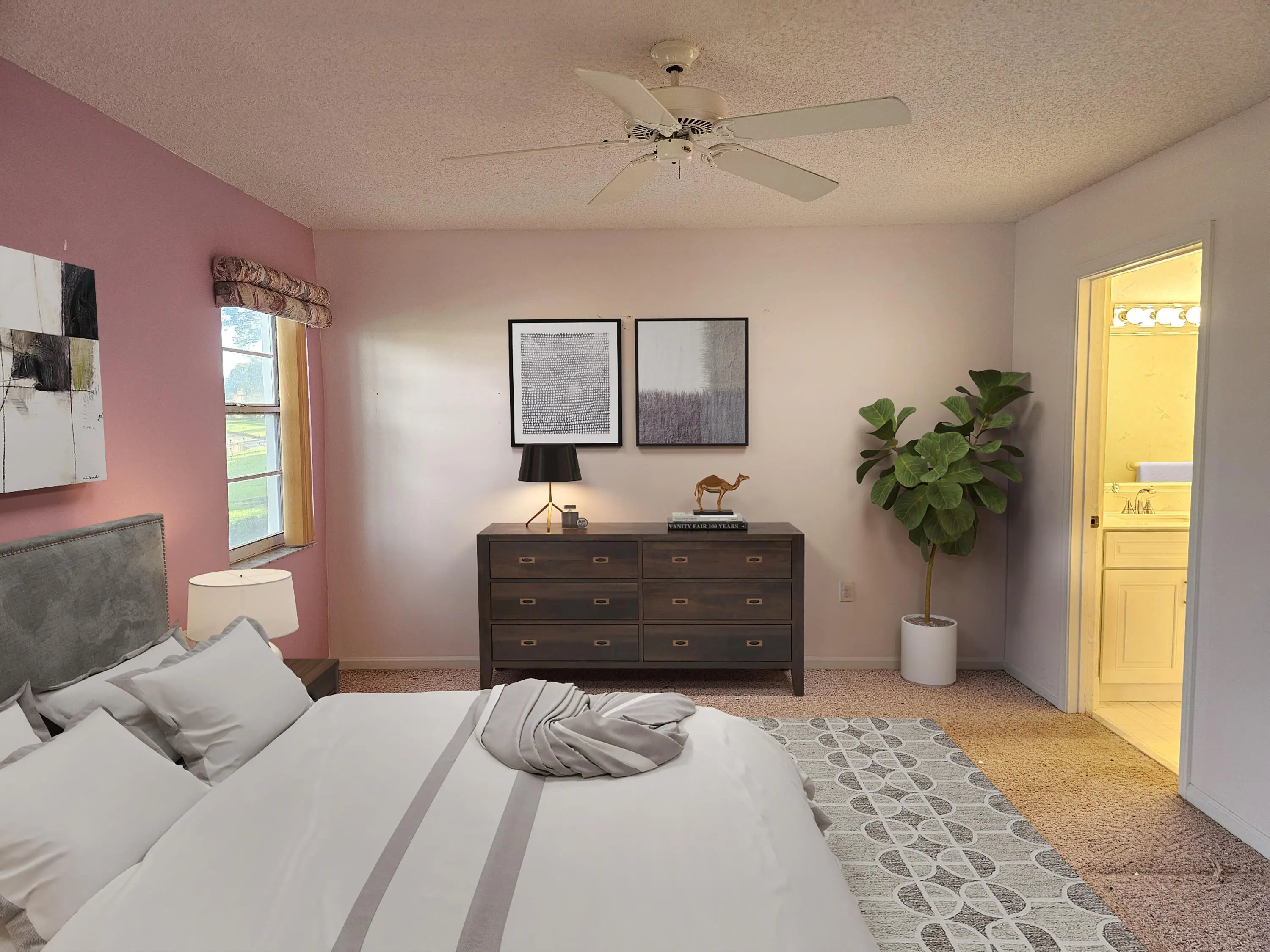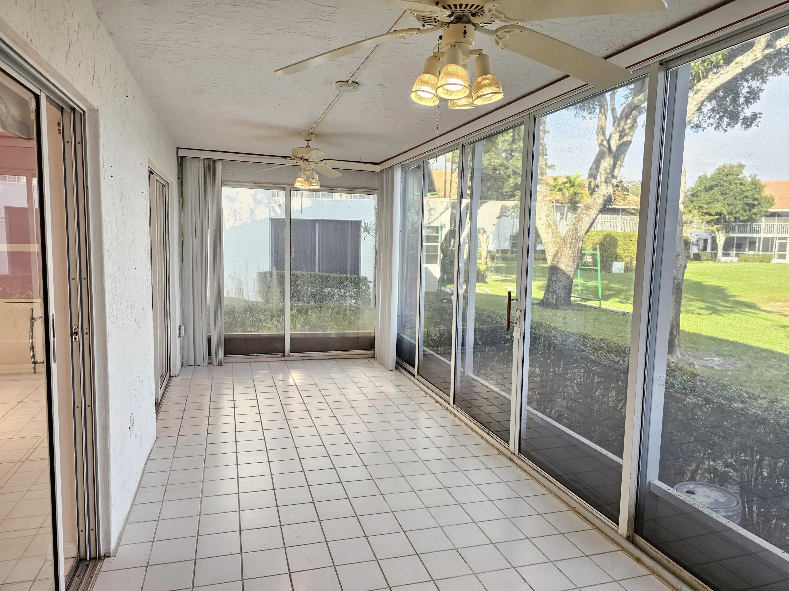 Come see this open and spacious 2 bedroom plus a den / 2 bathroom ground floor unit with a fantastic lake view in the HOPA Community of Palm Isles. As you enter, you will notice the large living / dining room combo that is perfect for entertaining. Both bedrooms are spacious and the primary bedroom has a walk-in closet and an updated bathroom vanity with a stone counter. The Florida Room is perfect for sipping your morning coffee or reading a book, while taking in that wonderful view. This unit has a covered parking spot and a storage area! Palm Isles is a gated community that features a tremendous amount of amenities and activities such as a multi-million dollar clubhouse, grand party rooms, a 600 seat performance theatre, indoor and outdoor pools, fitness, tennis courts and much more!