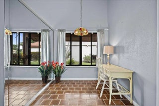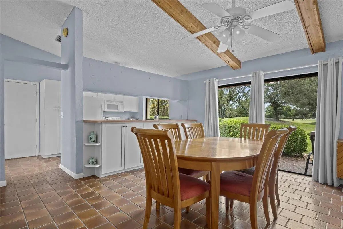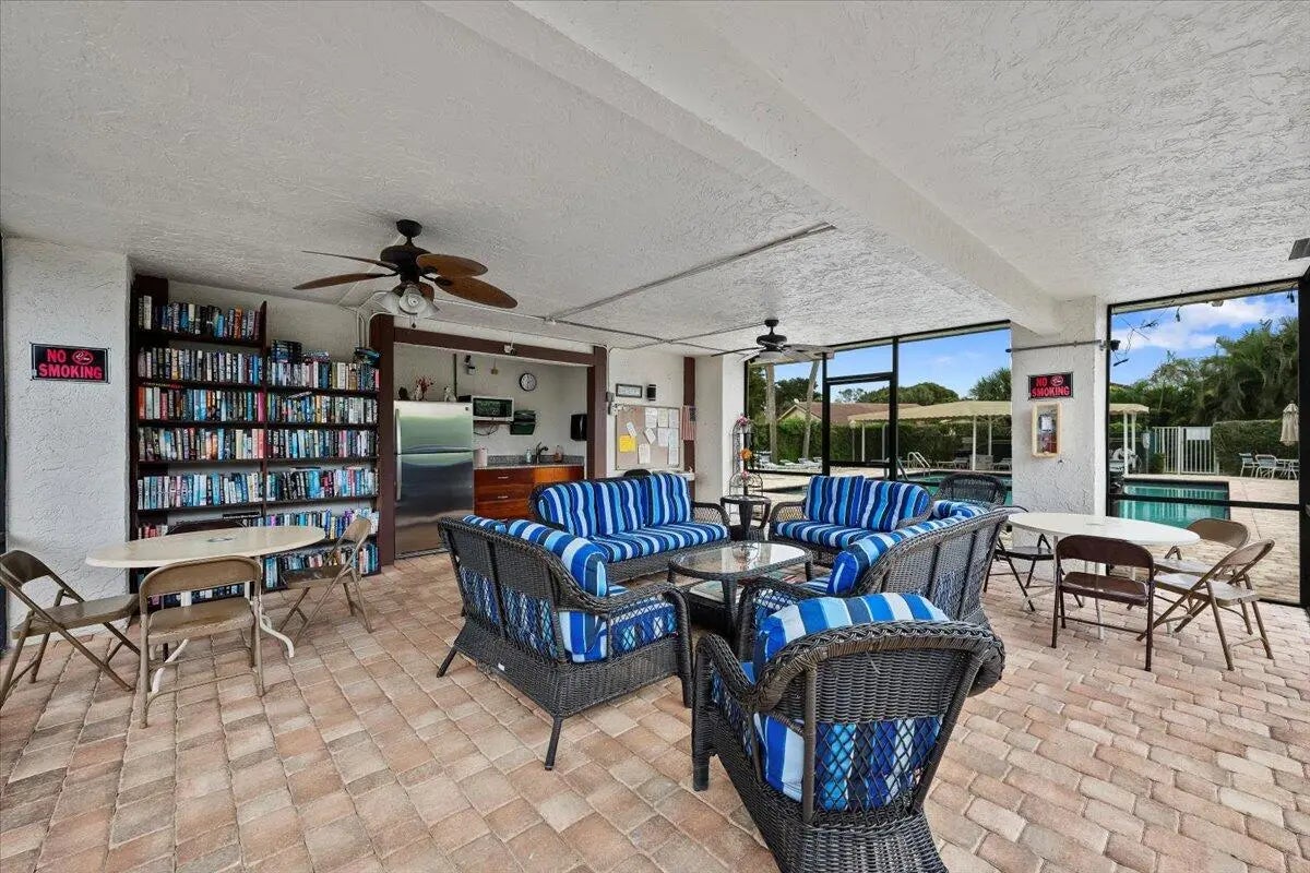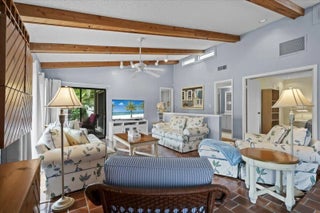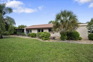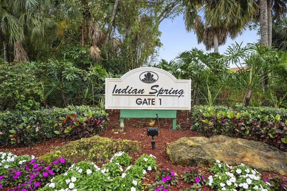 Turnkey home with unobstructed views of 3rd green, East Course of prestigious Indian Springs. Enjoy the golf course views in this 55+ community - No Club Membership required - Fully furnished and ideal for seasonal residents or those looking for a seamless transition. This 2bed/2bath home features elegant Italian tile throughout the main living area. Dramatic vaulted ceiling is punctuated with warm wood beams. The view is the star of the show. Enjoy sunrise coffee in the screened lanai with classic brick flooring. Professional lawn care insures the exterior is always pristine. Full accordian shutters for quick and east storm preparation. 24 hour manned security with roving patrols allow for peace of mind.