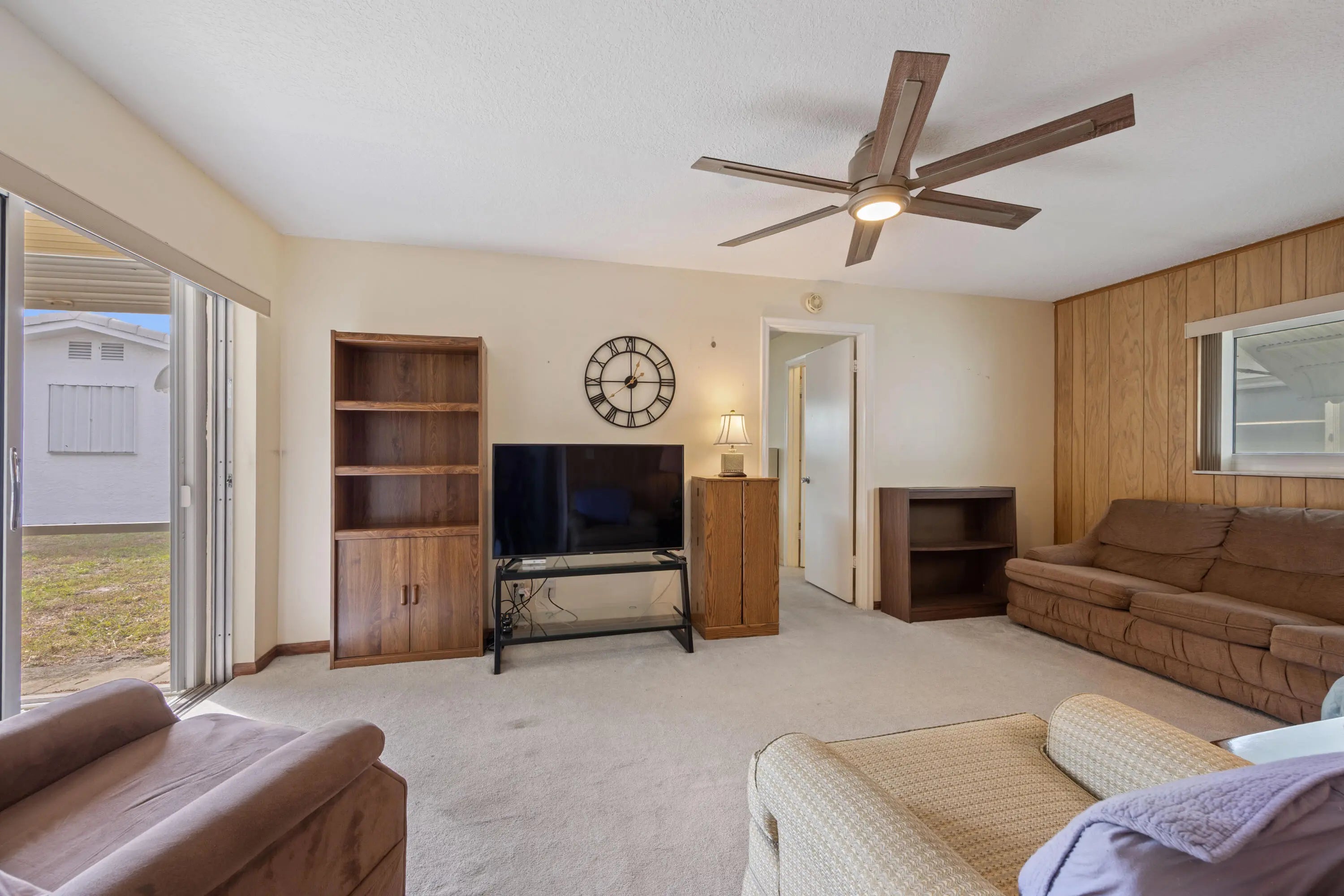 Challenger Model ready for new owners to make it their own! Carpet & tile flooring throughout. Great split floor plan w/primary bedroom separate from guest room. Hurricane Impact Windows plus accordion shutters on the sliders. Large screened in covered patio perfect for enjoying the Florida breeze. Tile roof replaced in 2006, flat deck replaced in 2018, HVAC 2020, GE panel. Property has easy access to clubhouse, just a short stroll. Boynton Beach Leisureville offers a low HOA of $245/mo which covers the grass cutting, outside pest control, Hotwire Cable & Internet and recreational facilities.
