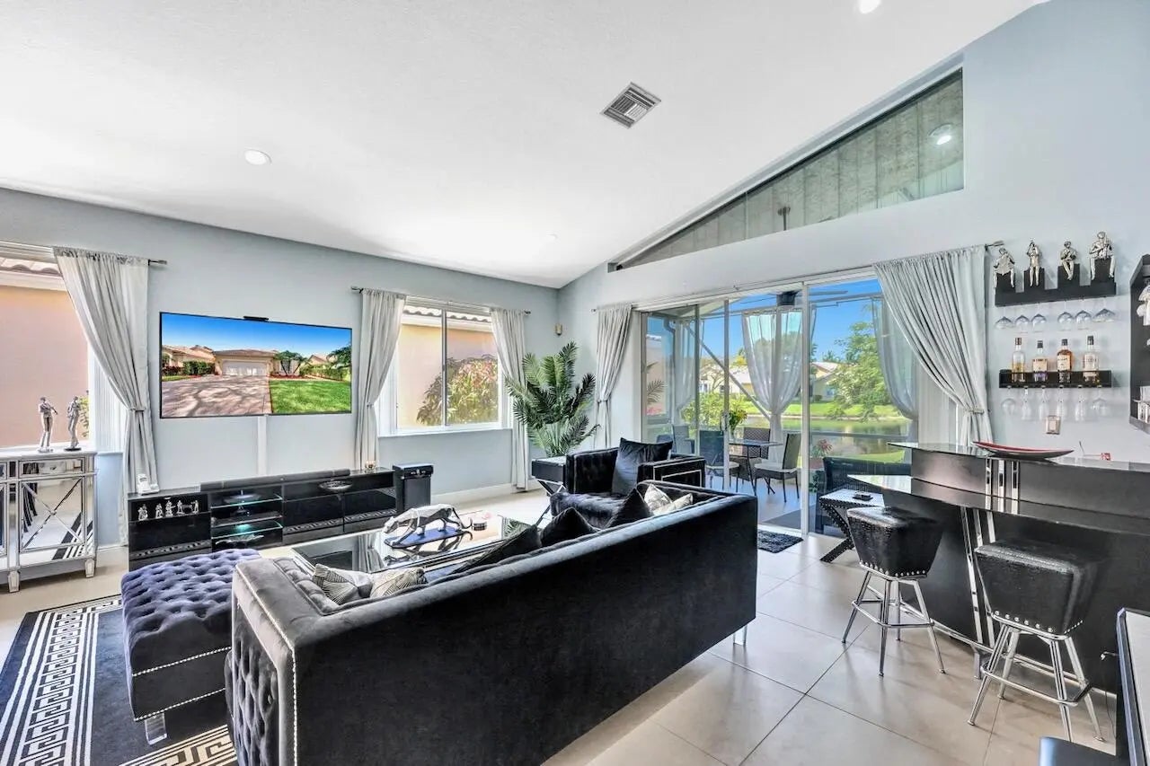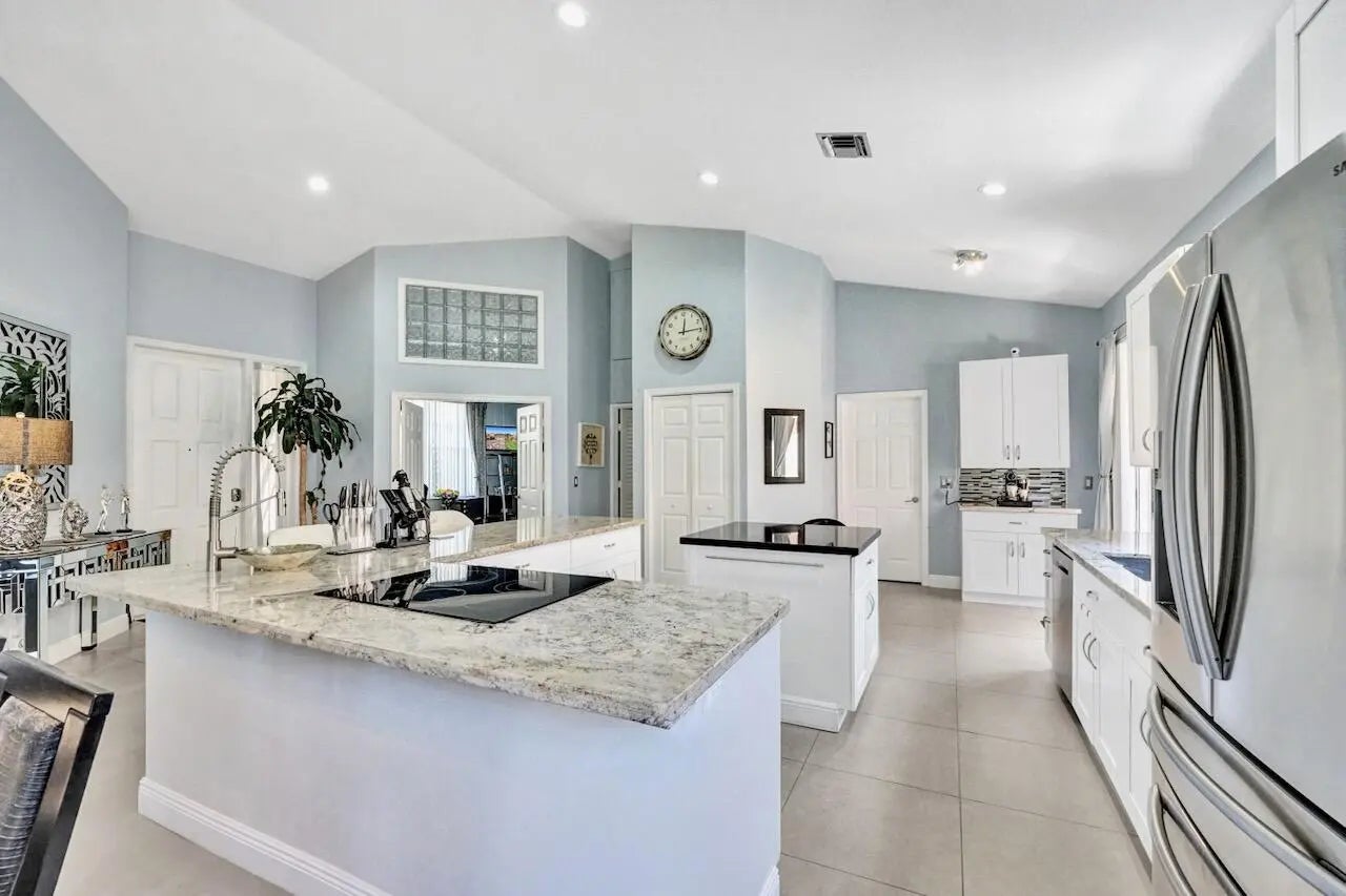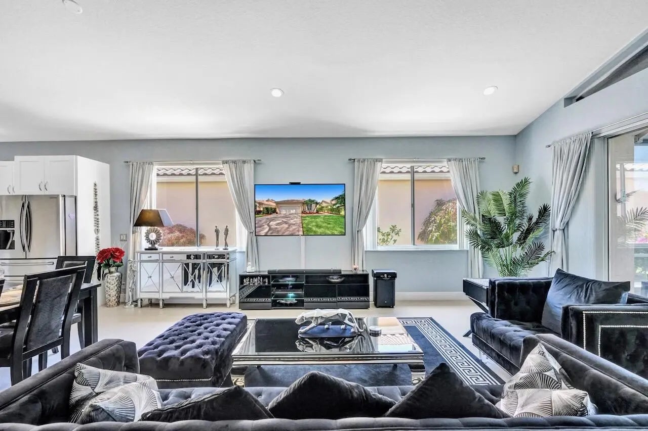 This stunning 3-bedroom, 2-bath home in Indian Spring is truly a showstopper! Completely renovated from top to bottom, this bright and spacious residence features a beautiful open floor plan with 24'' tile flooring, elegant lighting, and thoughtful upgrades throughout. Enjoy serene lake and garden views from your private outdoor living spaces.The spacious kitchen showcases white wood cabinetry, newer stainless steel appliances, granite countertops, and a movable island with ample storage. Both bathrooms have been fully updated (primary bathroom has been updated since these photos), and the enclosed third bedroom offers added privacy and extra storage, with additional hallway storage as well. New carpet has been installed in all bedrooms, and window treatments adorn every room.