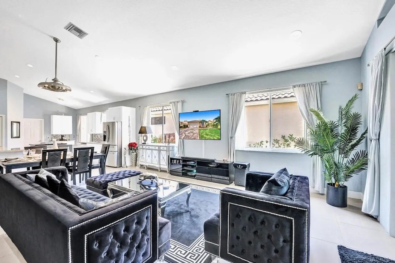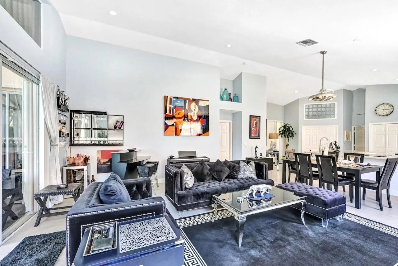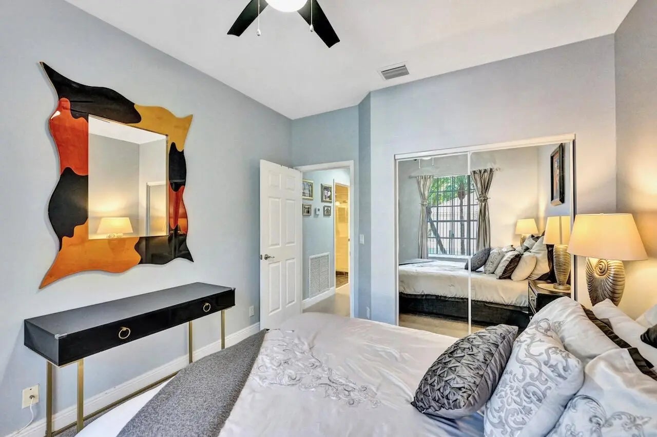 This stunning 3-bedroom, 2-bath home in Indian Spring is truly a showstopper! Completely renovated from top to bottom, this bright and spacious residence features a beautiful open floor plan with 24'' tile flooring, elegant lighting, and thoughtful upgrades throughout. Enjoy serene lake and garden views from your private outdoor living spaces.The spacious kitchen showcases white wood cabinetry, newer stainless steel appliances, granite countertops, and a movable island with ample storage. Both bathrooms have been fully updated (primary bathroom has been updated since these photos), and the enclosed third bedroom offers added privacy and extra storage, with additional hallway storage as well. New carpet has been installed in all bedrooms, and window treatments adorn every room.
