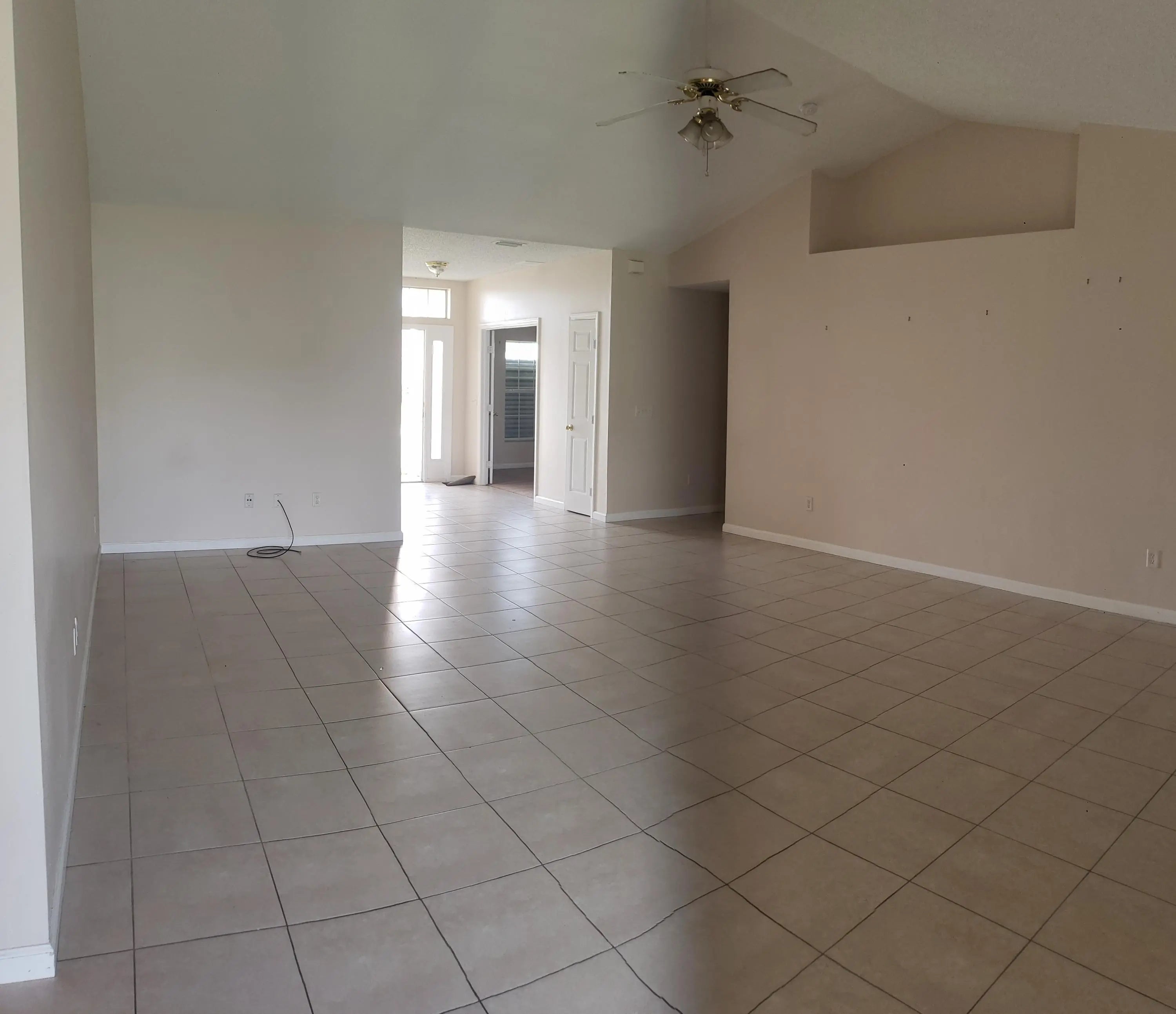 Move-In RequirementsFirst month's rent, last month's rent & security depositBackground and credit check (minimum 600 credit score)$150 non-refundable application fee per adultNon-refundable pet fee (if applicable)Property DescriptionExcellent location near I-95 and the Florida Turnpike! This fabulous 4-bedroom, 2-bathroom home features a 2-car garage and a fully fenced yard.The home offers a spacious great room with a dining area and an eat-at bar in the kitchen. Kitchen includes a newer stove. Tile flooring throughout main living areas, with carpet in bedrooms only. Inside laundry room with washer/dryer hookups.Additional DetailsTenant responsible for lawn maintenanceTenant responsible for installing and removing hurricane shutters