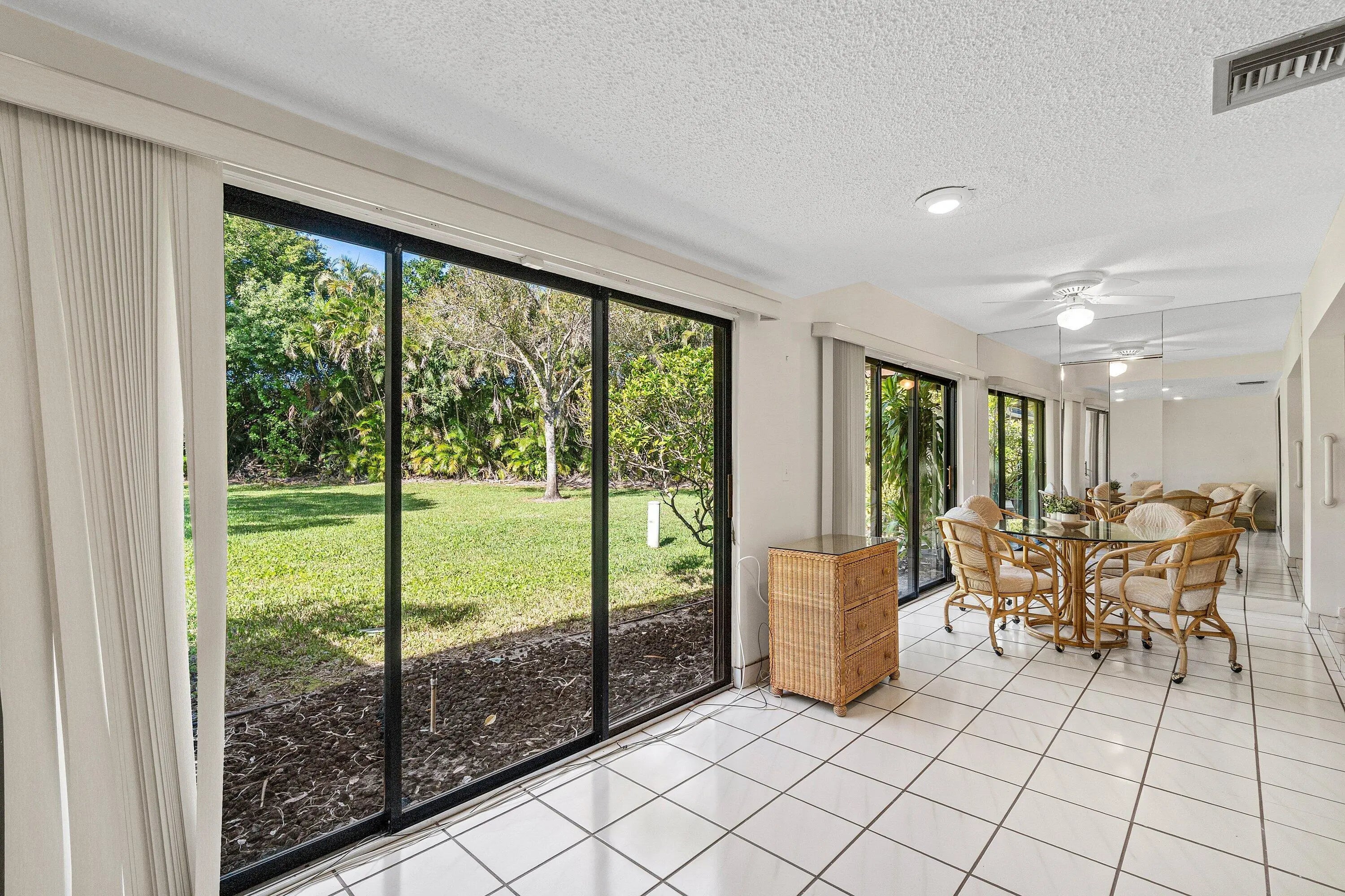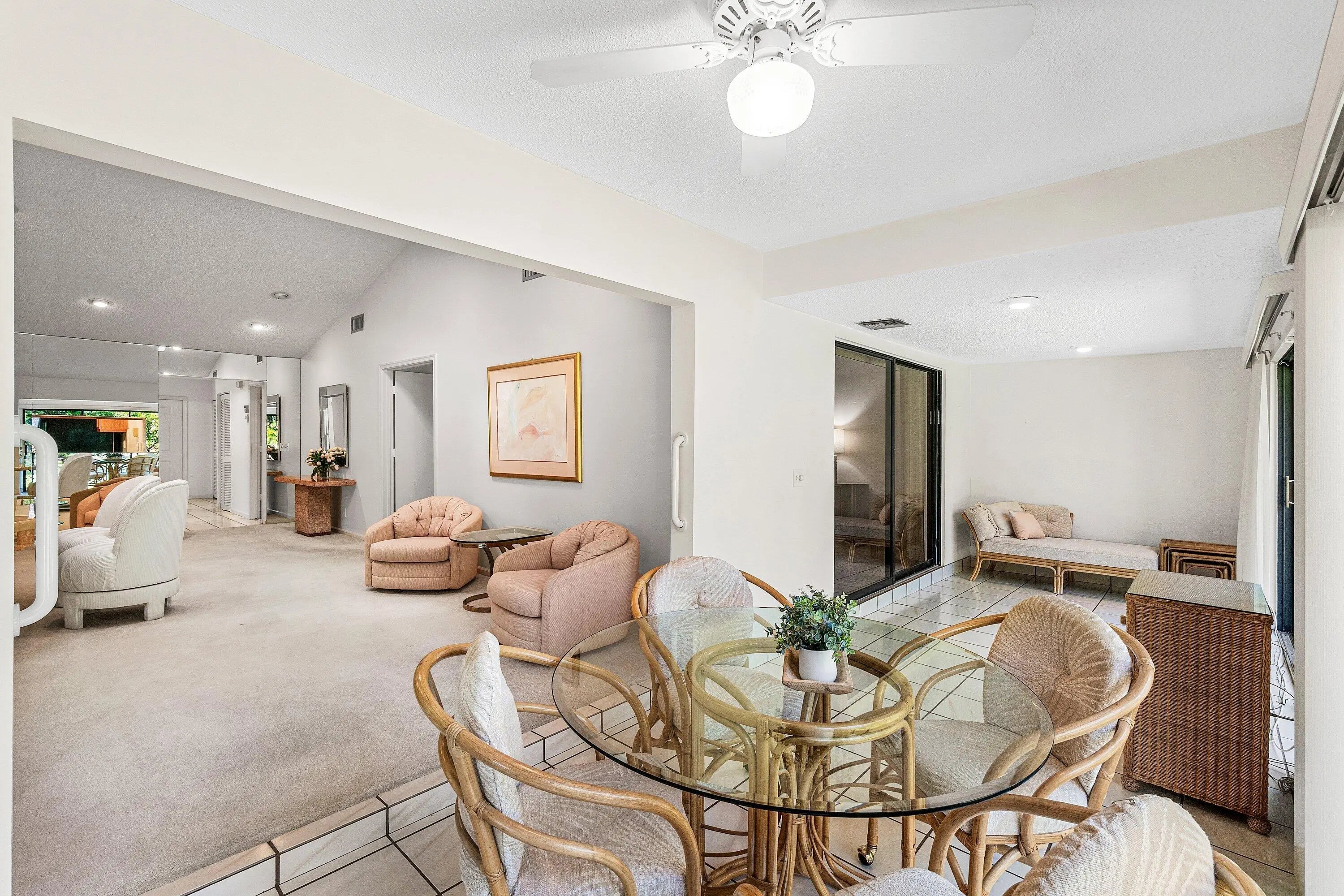 THIS VERY SPACIOUS 2/2 VILLA FEATURES HIGH CATHEDRAL CEILINGS WHICH MAKES THE PROPERTY FEEL LIGHT BRIGHT & AIRY! THE ROOF IS 2021, A/C is 2020 & ELECTRIC PANEL 2026! THE KITCHEN FEATURES REAL WOOD CABINETS. BOTH BATHROOMS HAVE BEEN NICELY UPDATED. THERE IS A BEAUTIFUL BAR IN THE LIVING ROOM, GREAT TO ENTERTAIN OR STORAGE THAT CAN STAY OR GO. HUGE DOUBLE SIZE FLORIDA ROOM ACROSS THE WHOLE BACK OF THE HOUSE WITH VIEWS OUT TO THE OPEN GREEN SPACE. QUIET CUL-DU-SAC LOCATION WHERE YOU CAN PARK YOUR CAR IN YOUR OWN COVERED CARPORT. BANYAN SPRINGS IS A GATED COMMUNITY w/ BANYAN TREES & WINDING LAKES. THE CLUBHOUSE HAS A BISTRO FOR BREAKFAST & LUNCH, 2 RESORT POOLS & SPAS, FITNESS CENTER, SHOW HALL FOR PARTIES & ENTERTAINMENT, PICKLEBALL & TENNIS, CARD GAMES & CLUBS, BILLIARDS & BOCCE, ETC.