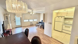 2nd Floor partially furnished 1 BR & 1.5 Bath in Garden Style Building. Walk out your front door and enjoy a serene walk along the canal. Laminate flooring throughout. Enclosed Patio with with garden view. Near Oakridge Community Pool. Living Room AC replaced 2025. Enjoy resort style active 55+ community w/ tons of amenities, 16 satellite pools, clubhouse, Olympic size indoor heated pool, professional exercise center, tennis, volley ball, bocce ball, luxury theater, movies, cafe, billiards, shuffle board, classes, sauna, outdoor pool, free bus transportation, near shopping & approx. 4 miles to beaches.