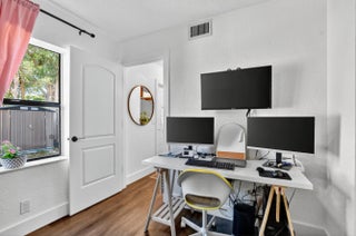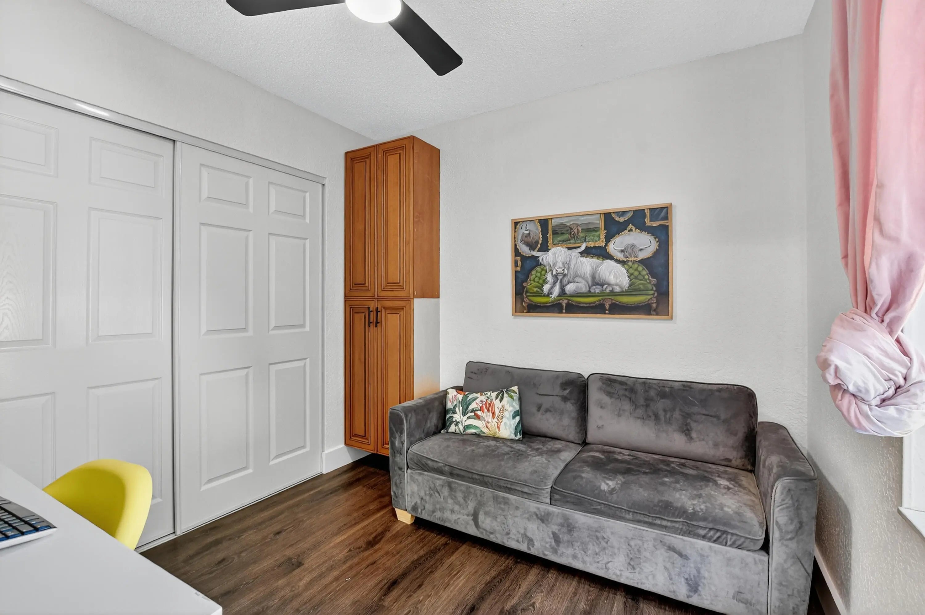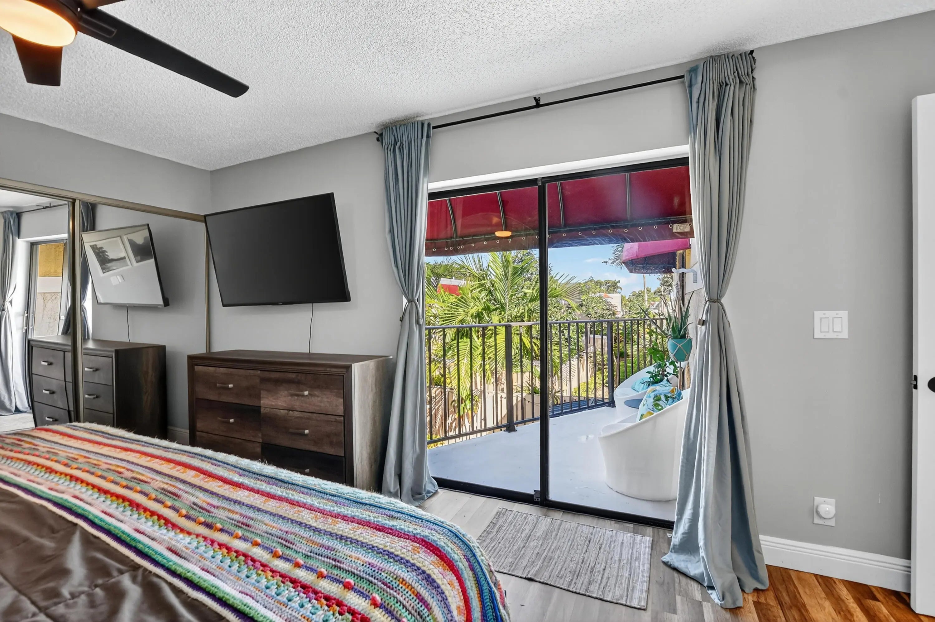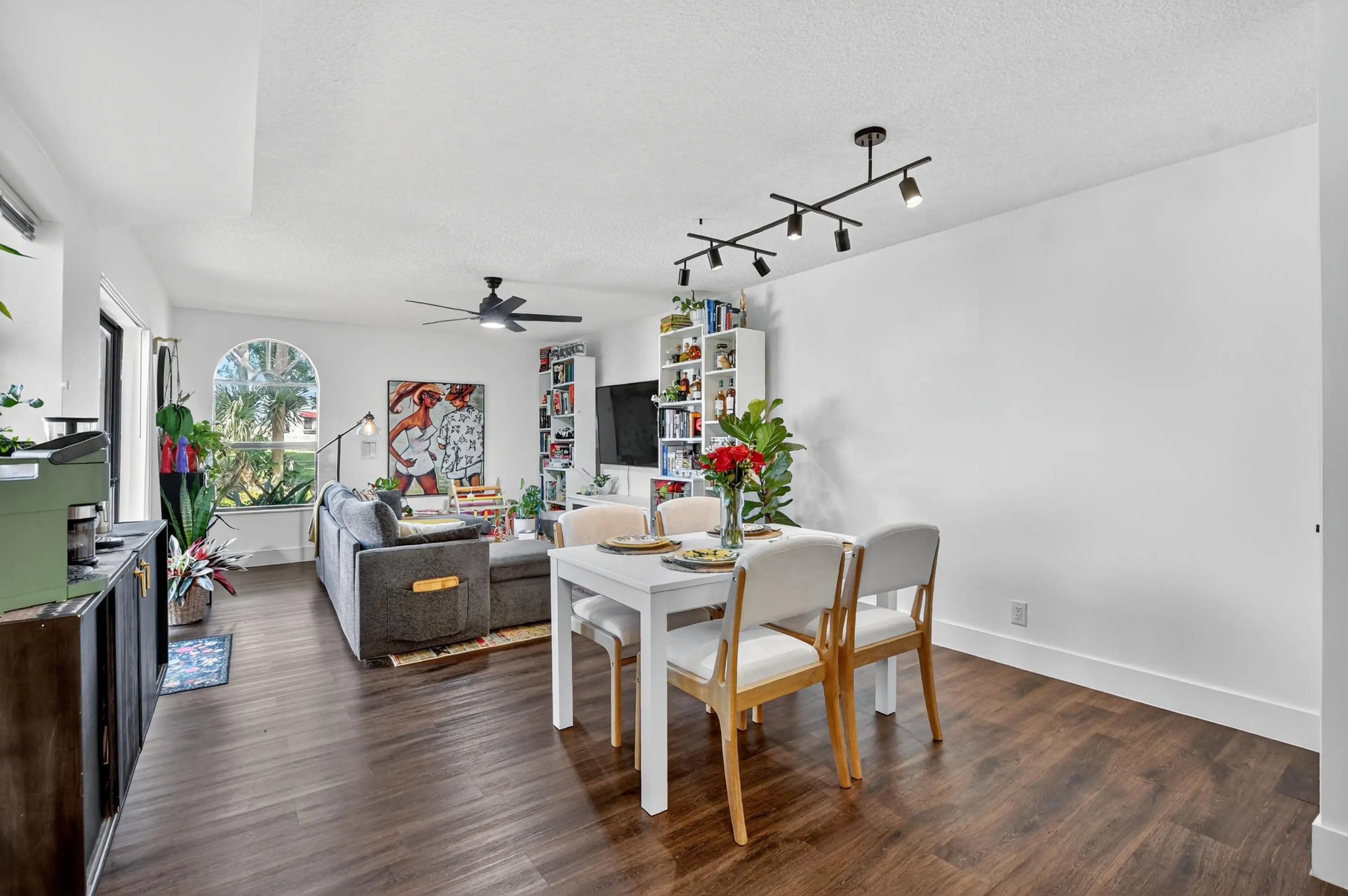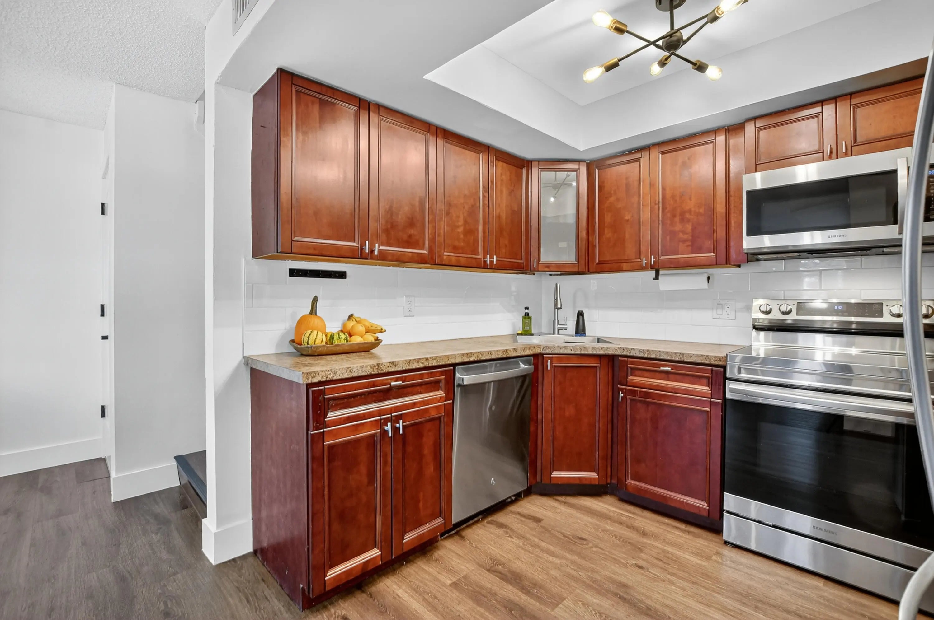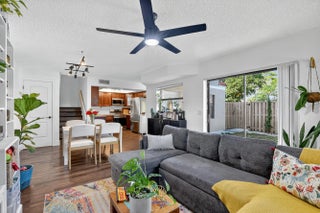 Renovated 3 bedroom, 3 bath townhouse in the heart of Delray. Fenced in private courtyard is perfect for entertaining, gardening, pets/kids to play in your own private area complete w/new storage shed. Modern dark laminate flooring on first floor and stairs, mounted cabinet in dining room for storage/serving, new doors/casing, baseboards, lighting, fans, bathrooms feature new vanities and toilets. All appliances are upgraded-refrigerator, range, dishwasher, microwave, washer, dryer. One bedroom and full bath down, upstairs are two more bedrooms w/en suite bathrooms. Home comes with two reserved parking spots, is pet friendly, no waiting time to rent. HOA maintains exterior and roof. Community has two pools, tennis courts, lots of open space and shady trees to enjoy.